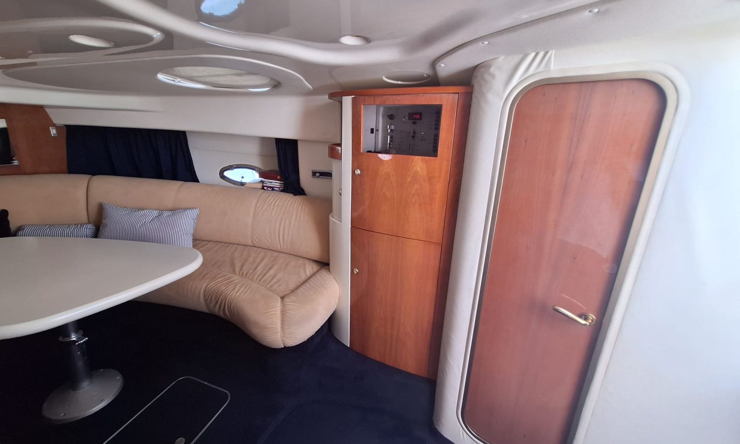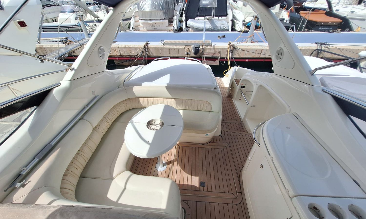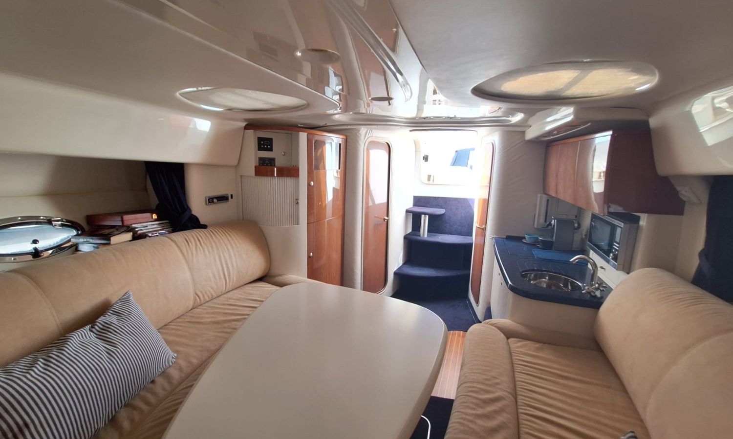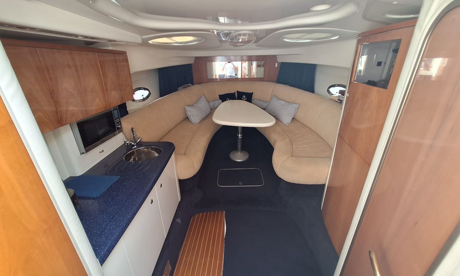 Generador - Aire acondicionado - Equipo audio - Fundas para consola y asientos - Funda camper - Bimini - 2 neveras - Microondas - Calentador de agua - Cargador de baterías - Teca en el suelo - Control de cabrestante de ancla - Escotilla de apertura y cierre electrohidráulico - Ducha - Vhf - Gps/Plotter/Sonda - Piloto automático - Hélice de proa - Bateria sevicios nueva 2025 - Flaps - Antifouling.Descripción embarcación