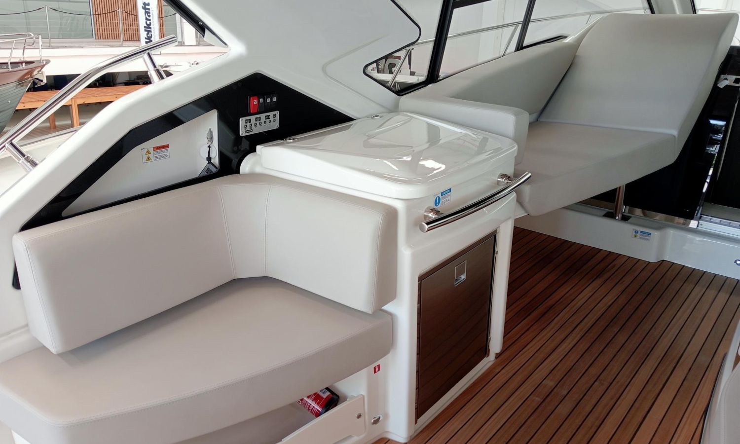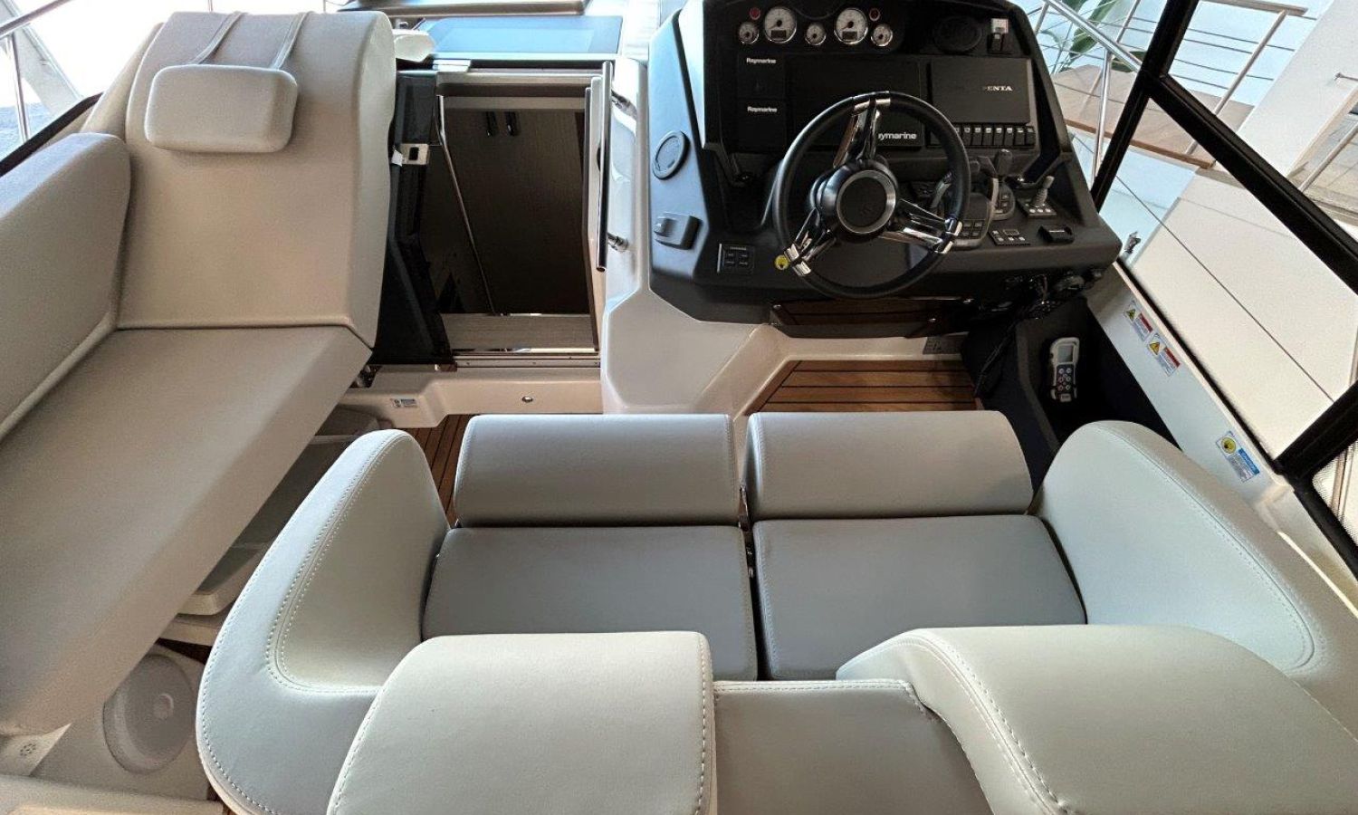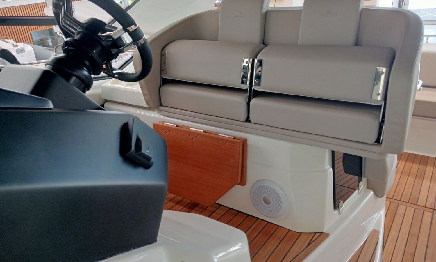 Depósito de aguas negras - Aire acondicionado 16.000 BTU en cabinas con bomba de calor - Aire acondicionado 16.000 BTU refrigeración bañera - Capota completa de popa - Hélice de proa con extintor automático - Frigorífico en bañera - GPS + Chartplotter - Generador 8 kW - Pasarela hidráulica - Plataforma elevadora (reposapiés) plegable en teka para posición de conducción - Piloto automático - Bañera en teka - VHF / DSC - Copia certificado CE y declaración de conformidad - Hard top de color lacado - Preparación, botadura, entrega y prueba de mar - Tranporte astillero a Costa Brava.Descripción embarcación