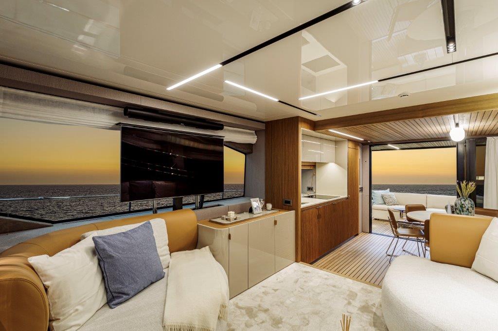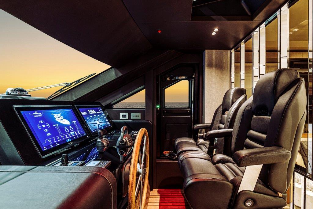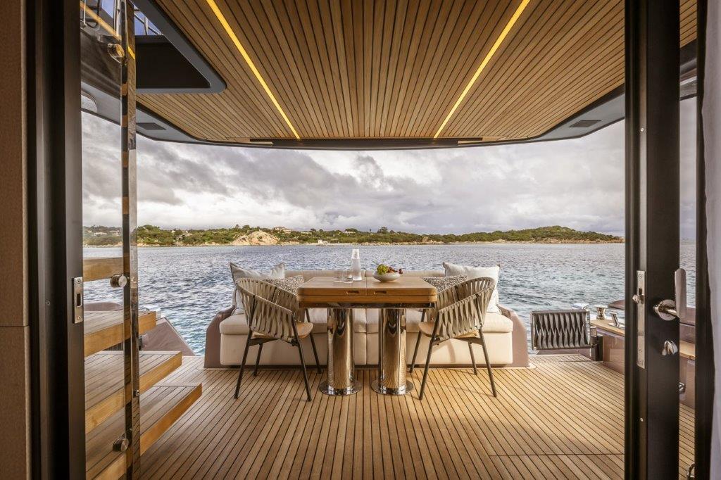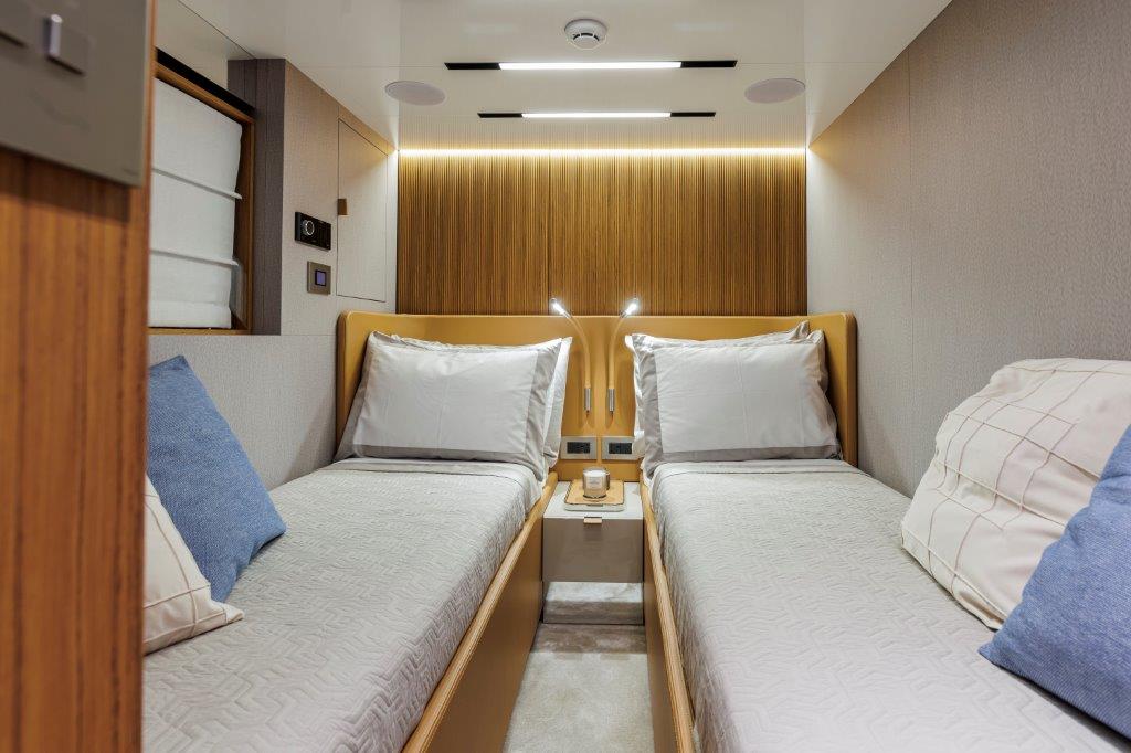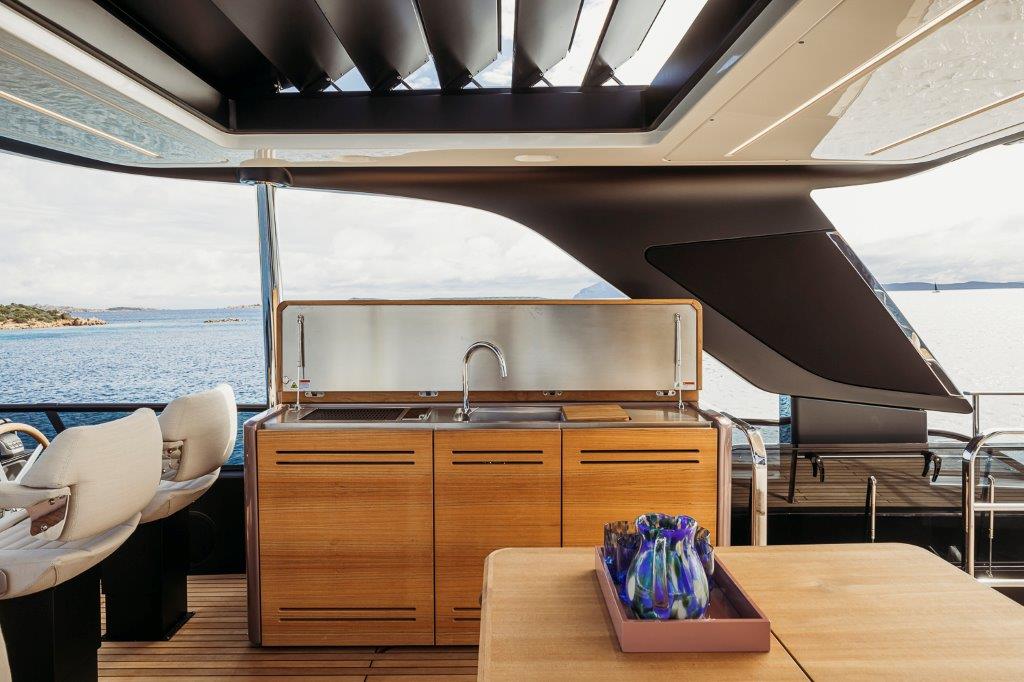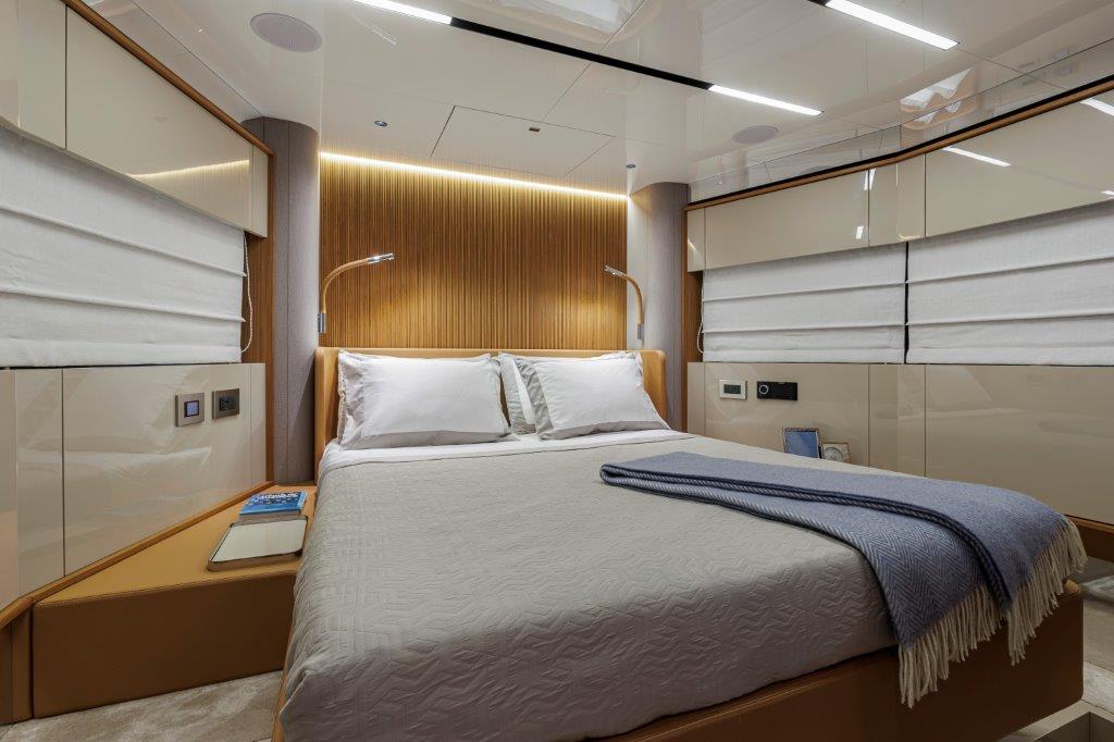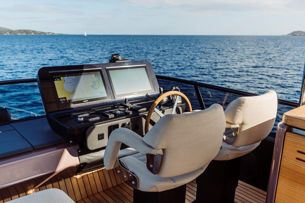 Ancla 60 Kg Ultramarine en acero inoxidable y cadena de acero inoxidable de 100 m - Enrolladores eléctricos cable línea de muelle de 20 m con mando a distancia - Zona de playa a popa: ducha con radio, luces y cargador inalámbrico para smartphone - Lino para 3 camarotes y cabina marinero: set de sábanas, fundas de almohadas, funda de colchón, colcha, toallas, etc. - Bidé en el baño de la cabina del armador - Bimini top de proa con palos de carbono - Cajafuerte electrónica en cabina armador - 6 cabos de amarre - Cobertura para dinette en bañera de popa - Coberturas flybridge - Desalinizadora 160 l/h con mando en cabina y sistema lavado con agua dulce - Hélice de proa proporcional - Faro pirata - Nevera en el sofá de la colchoneta de proa - Suplemento generador de 20,5 kW - Tercer puesto de mando en la bañera - Máquina de hielo con tanque de agua separado - Lavadora y secadora Miele - 7 Luces subacuáticas (3 a popa y 2 a cada lado) - Oscurantes para cristales de proa y laterales - Bimini top de popa vertical - Escotilla eléctrica en la timonería - Pasarela hidráulica telescópica retráctil - Fin Stabilizations System Humphree - Asiento interior copiloto - Puerta de acceso lateral a popa estribor - Puerta de acceso lateral a popa babor - Segunda pantalla plotter 22" en flybridge - Segunda pantalla plotter 22" en cubierta principal - Set de vajilla, vasos y cubiertos para 6 personas - Estabilizador giroscópico Seakeeper 9 - Surround view camera system Garmin - Superficie de teka en los trancaniles laterales proa/popa - Teka en el flybridge - Toldo de popa eléctrico en el flybridge - T-Top flybridge con láminas de apertura eléctrica - TV LED en salón con dispositivo eléctrico retráctil y sistema Home Theatre - TV 55" LED en cabina del armador y radio Bluetooth/USB - TV 43" LED en la cabina VIP y radio Bluetooth/USB - Certificado CE y declaración de conformidad - Transporte, montaje con varada y control general en el Cranchi Marine Test Centre en Venecia - Suplemento transporte T-Top - Decoración interior "Amalfi": combinación de colores de los muebles, suelos de madera, tejidos y mármoles - Pintura de la línea de belleza en el casco de color negro - T-Top lacado negro - 2 Cúpulas vacías para antena satélite TV6/60 cm.Descripción embarcación