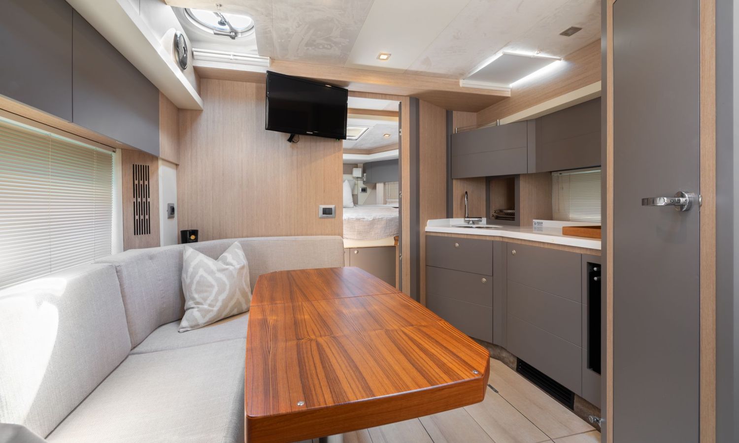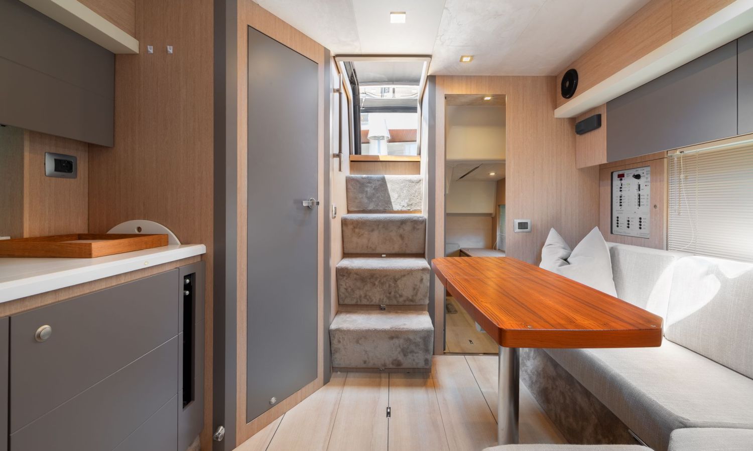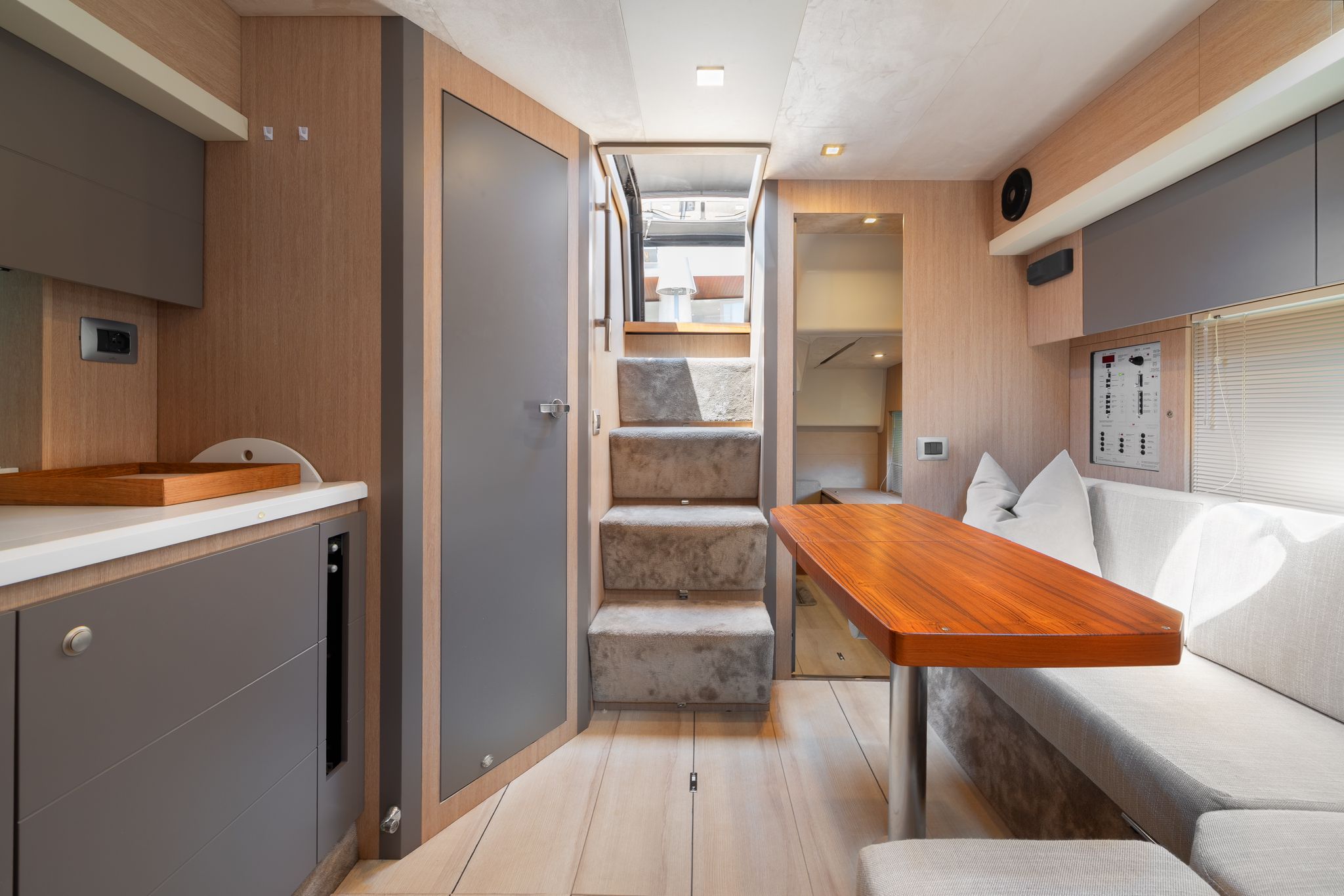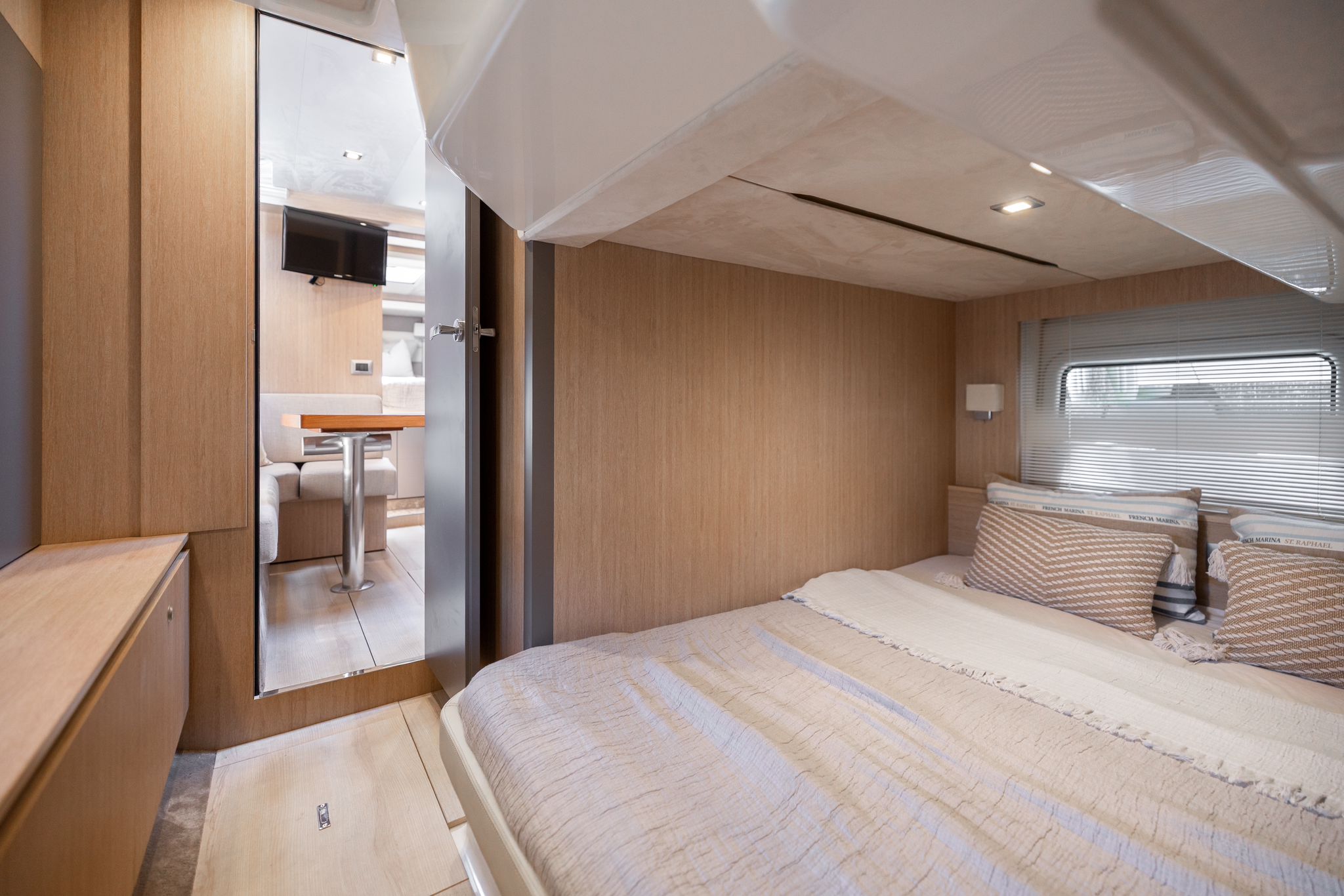 Toldo bimini - Passarela - Ducha de agua caliente - Dos neveras - Picnic de teca - Mesa - Cargador de baterias 220 v. - Tv - Inodoro marino - Ducha con manpara - Suelo de cubierta de teca - Equipo de audio - 2 camarotes - Cubierta para tomar el sol en proa y popa - Joystick - Gps/Plotter/Sonda - Piloto automático - Molinete de ancla eléctrico - Antifouling.Descripción embarcación