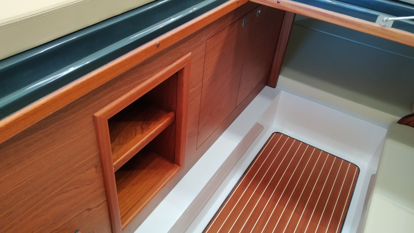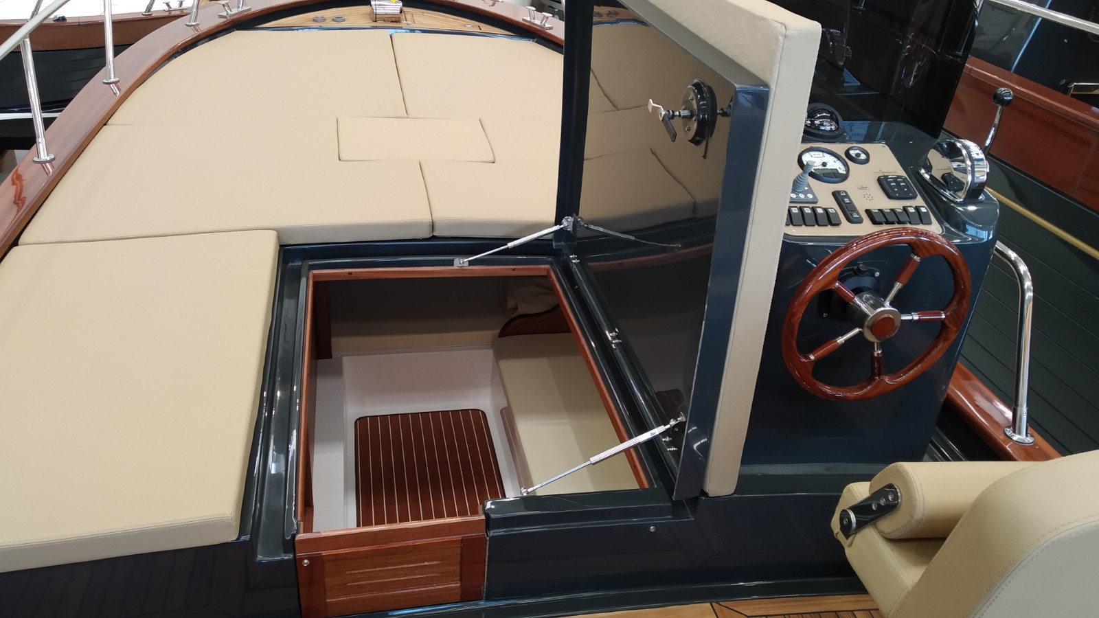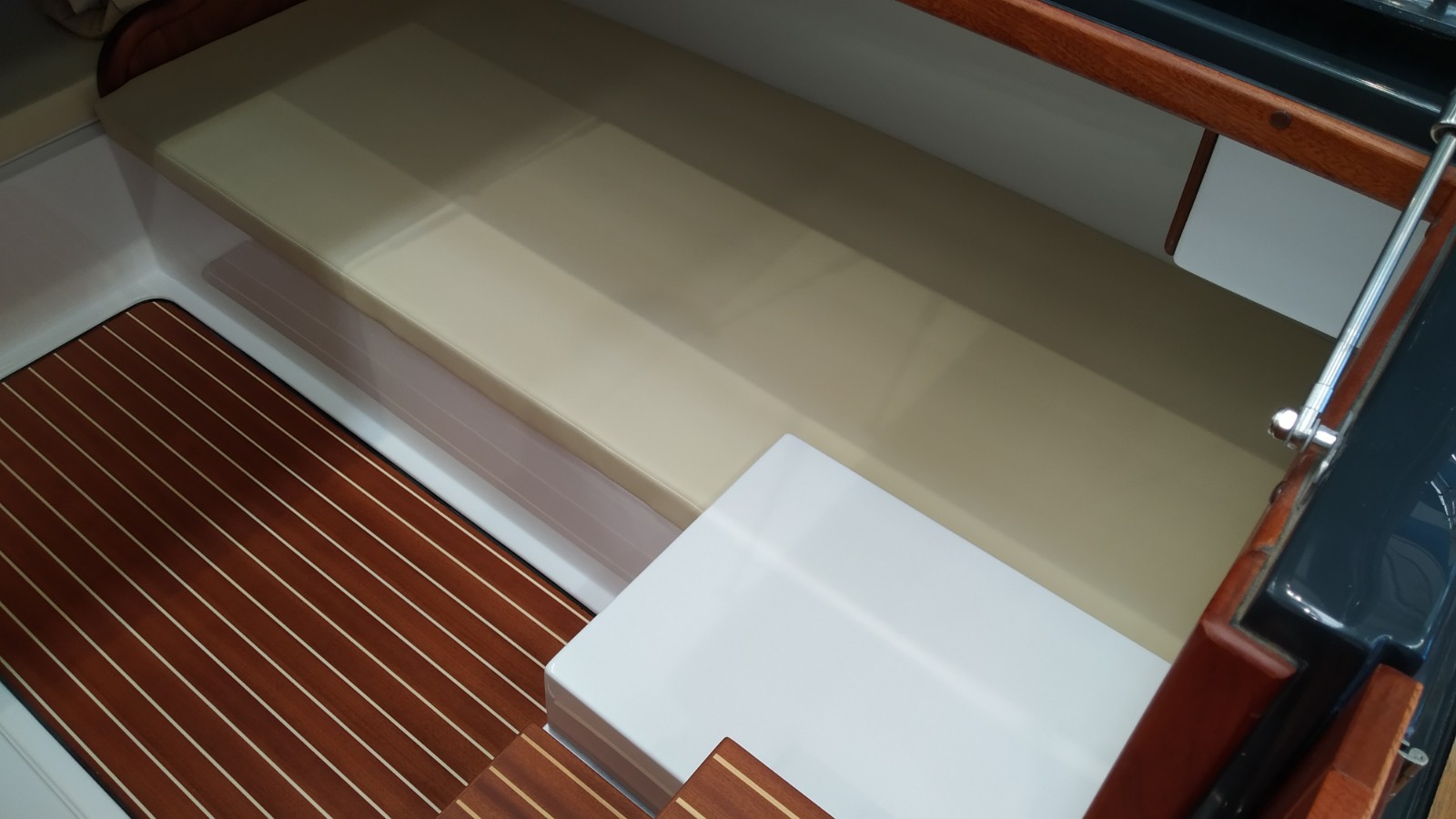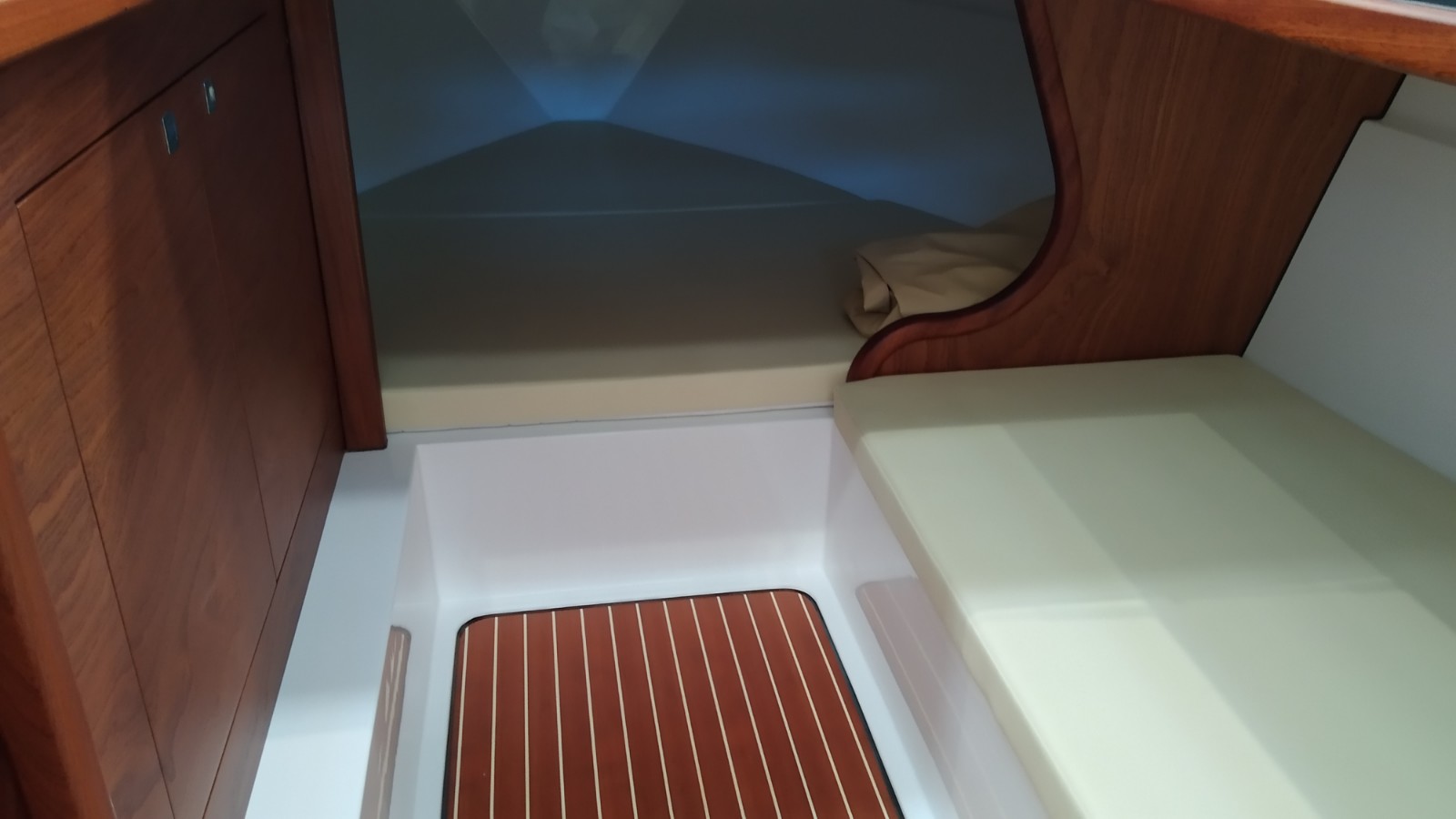 Consola mandos y asiento piloto - Funda consola - Colchonetas exteriores cubierta y asientos bañera - Colchonetas interiores literas - Ducha con depósito de agua - Hélice de proa - Molinete eléctrico con ancla y cadena - Plataforma de popa de fibra y teka con escalera - Revestimiento bañera en teka (sólo popa) - Toldo parasol - Suplemento toldo parasol microperforado (1 posterior y 1 lateral) - Preparación, botadura y entrega con prueba de mar - Transporte astillero a Costa Brava.Descripción embarcación