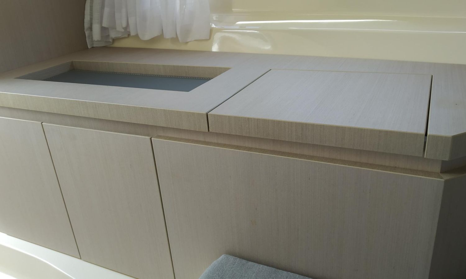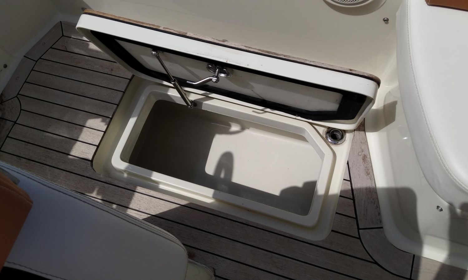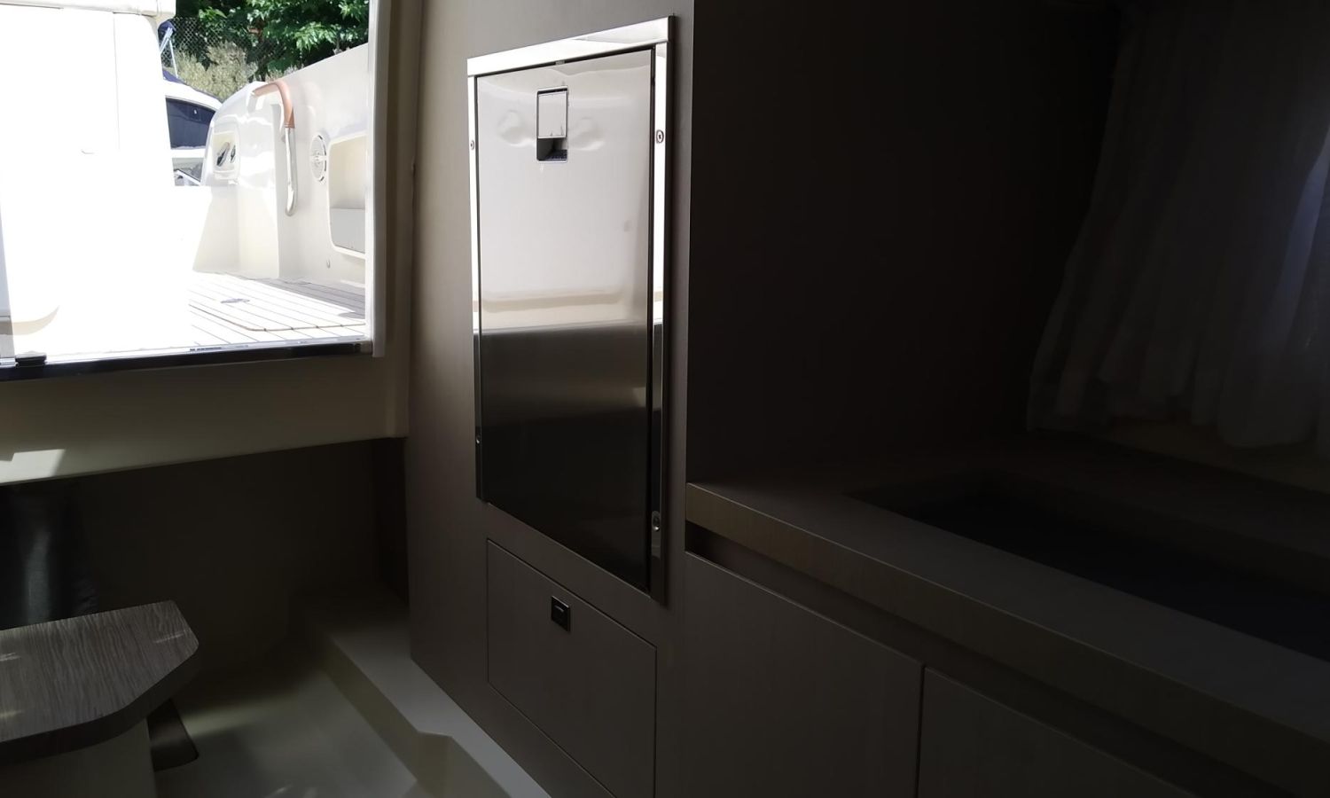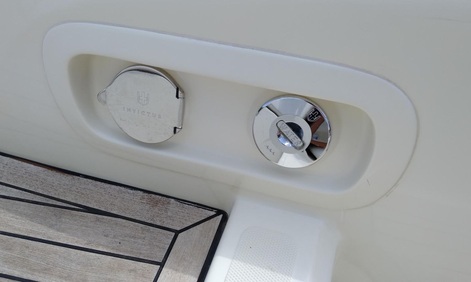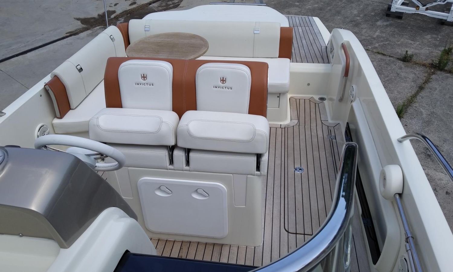 Toldo parasol - Solárium de popa - Colchonetas solárium de proa - Ducha a popa - Mesa de teca en bañera - Plataforma de baño en teca con escalera - Bañera en teca - Molinete eléctrico con ancla y cadena - Hélice de proa - GPS - Brújula - Nevera en la cabina - WC con lavabo y depósito de aguas negras.Descripción embarcación
