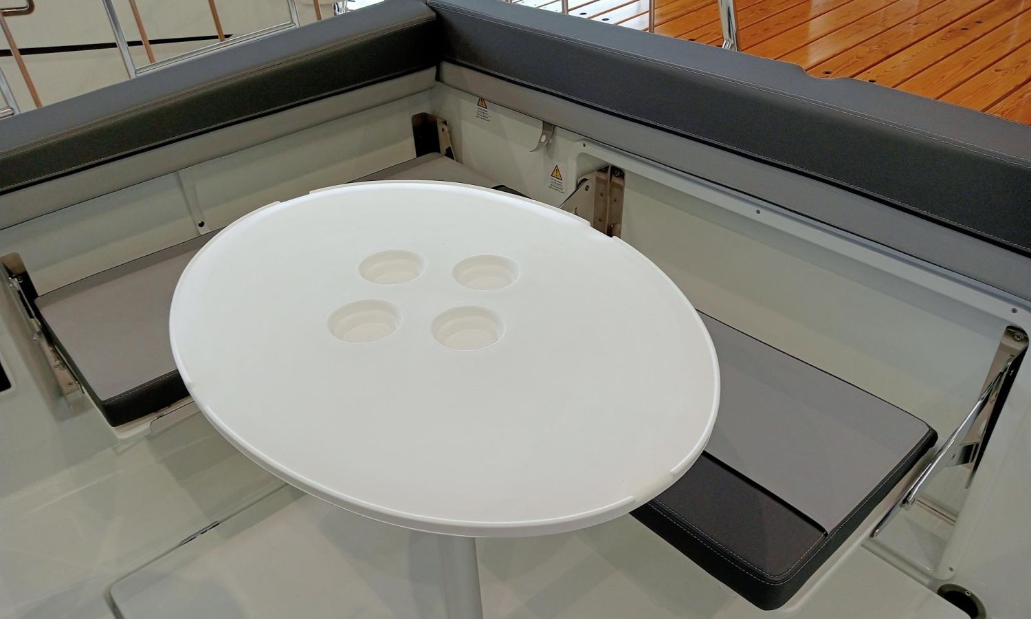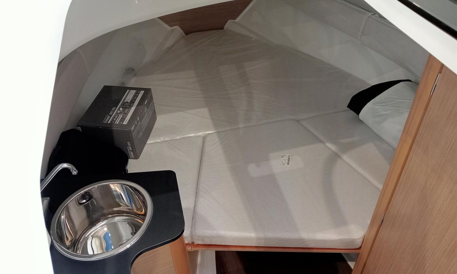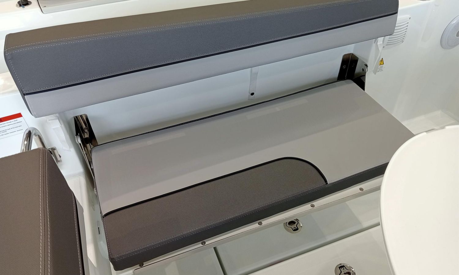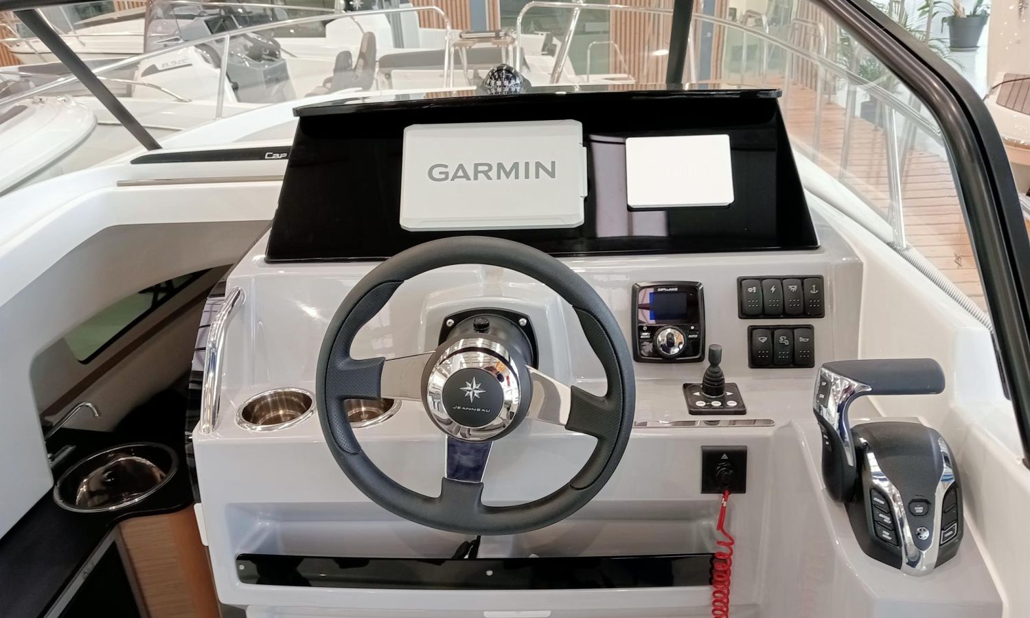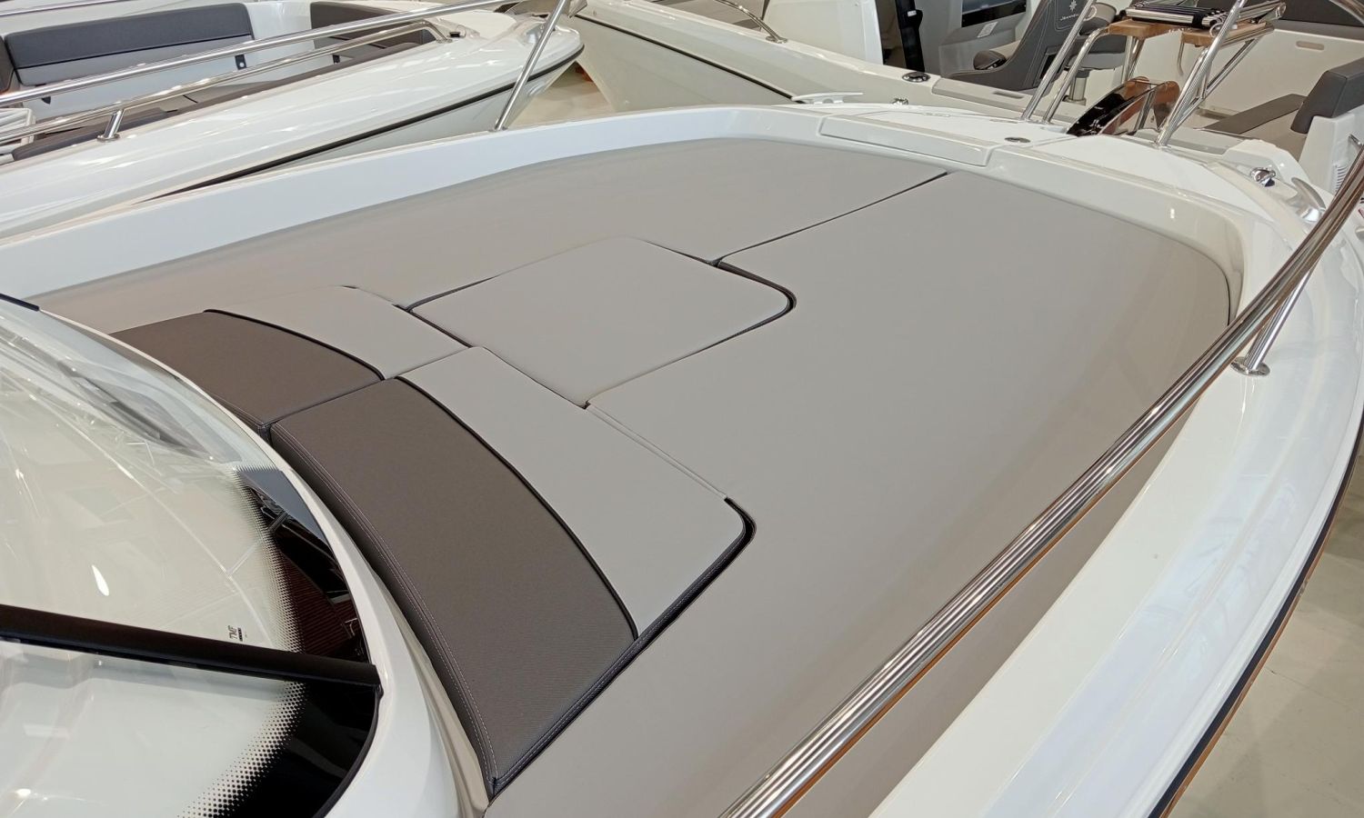 Pack electrónica Garmin 92SV - Versión Asientos tipo Bolster (Grandes) - Nivel de equipamiento Premiere - Pack audio Fusión - Propulsor de proa - Molinete eléctrico - Kit de fondeo - Mando molinete en el salpicadero - Mástil de Esquí (Arco) - Claxón - Toma de muelle 220V + cargador - Alumbrado de bañera con Leds - Mesa de bañera - Cojines para solárium de proa con respaldo ajustable - Respaldos para los asientos laterales de bañera trasera Lux - Flaps automáticos Zipwake - Frigorífico 40L - Plataformas de baño en Polyester - Plataforma de proa con escalera - WC marino + depósito de aguas negras - Suplemento para cama doble en cabina - Funda de consola - Capota de sol Bimini - Escotilla practicable de cubierta - Pre-Rigging motor Yamaha HMEX 225-300 DBW - Transporte desde Astillero-Costa-Brava - Instalación motor incluido - Pintura Antifouling - Botadura y entrega.Descripción embarcación