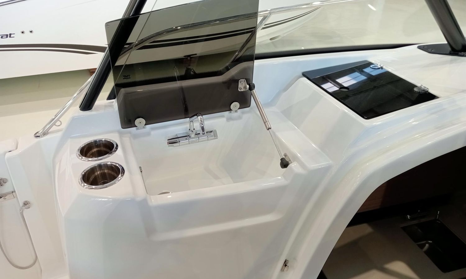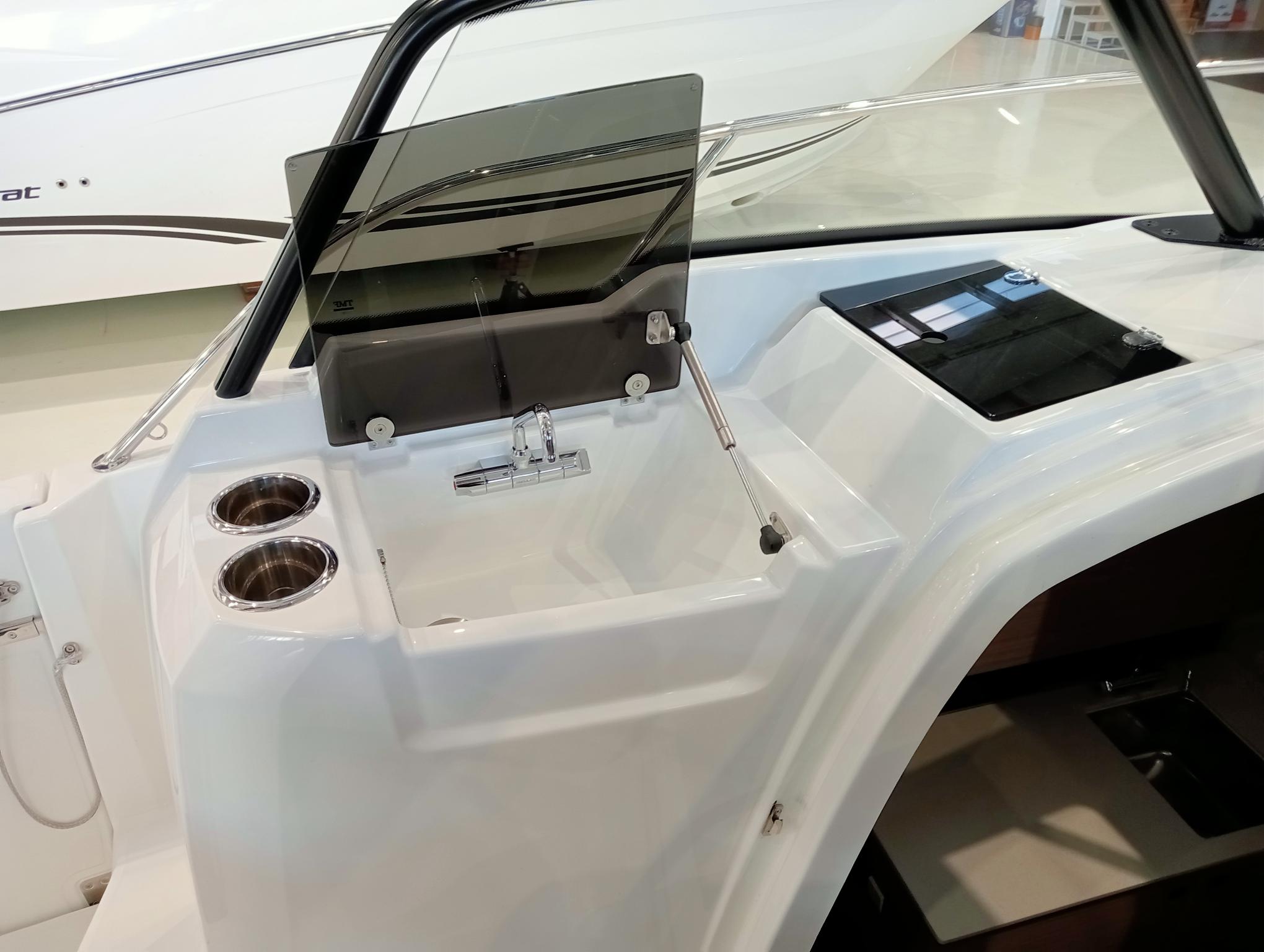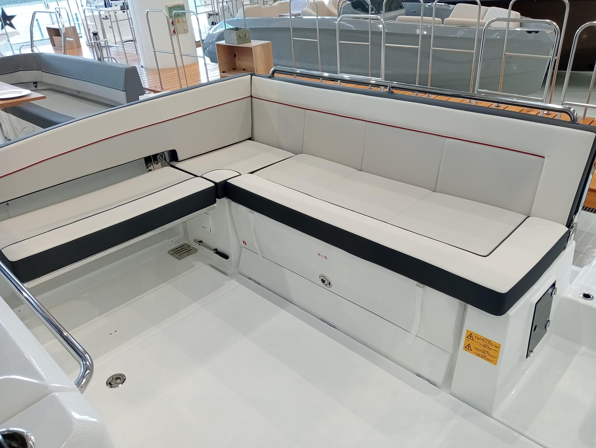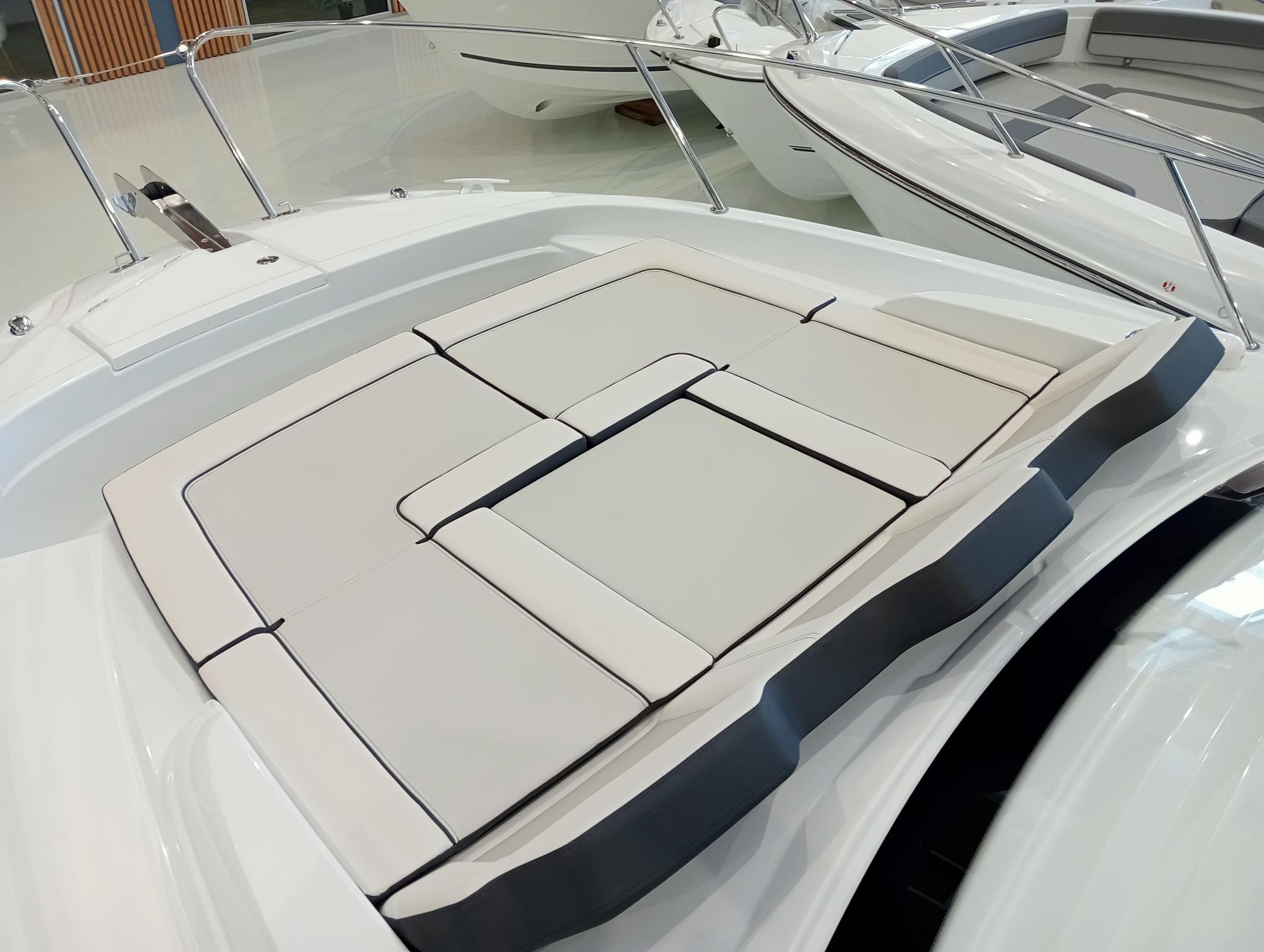 Nivel de Equipamiento Premiere - Pack Confort - Pack Audio Premium para barco con T-Top - Cortinas interiores - T-TOP techo de Polyester - Kit de amarre - Kit de Fondeo - Propulsor de proa - Plataformas de baño en Polyester - Panel en T-Top de apertura manual - Banco lateral retráctil babor - Respaldo ajustable para baño de sol bañera popa - Frigorífico en bañera y almacenamiento en Leaning Post - Hornillo de gas en la cocina de bañera - Tapiceria de bañera de proa con asientos Meridian - Bomba eléctrica lavado cubierta agua de mar - Panel de ducha + tapa de aseo - Cojines de bañera Silvertex ICE Diamante carbon - Tapicería salón/Cabina PVC Marlin Pure White - Pre-Rigging motores Yamaha 2x200-250 SBW eléctrico - Tranporte desde Astillero - Costa-Brava - Instalación motores incluido - Pintura Antifouling - Botadura y entrega.Descripción embarcación