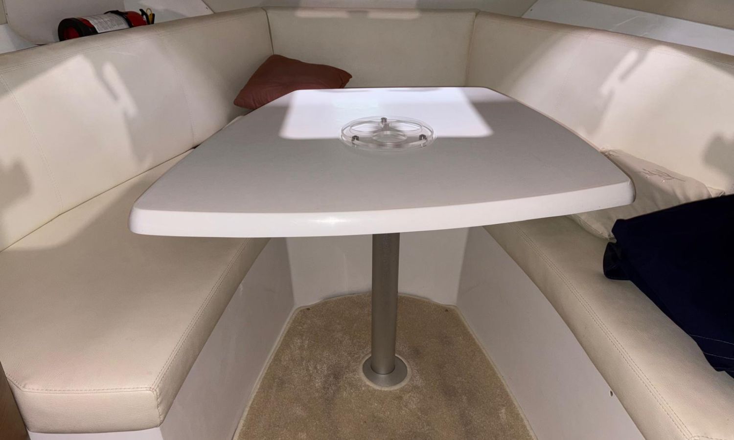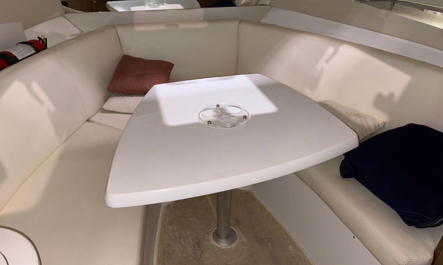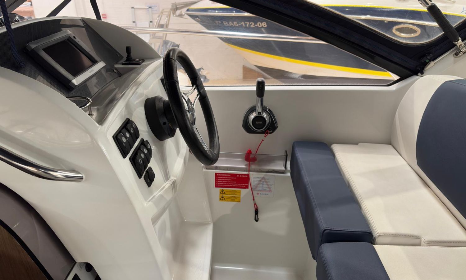 Toldo parasol - Plataforma de baño con escalera - Ducha en popa - Mesa en la bañera - Solárium de proa - Toma de puerto - Cargador de baterías - Gps/Plotter/Sonda - Vhf - Compás - Mando electrónico - 2 camarotes - Nevera 12 v. - Cocina de gas - Microondas - Fregadero - Wc marino con depósito de aguas negras - Molinete de ancla eléctrico - Antifouling.Descripción embarcación