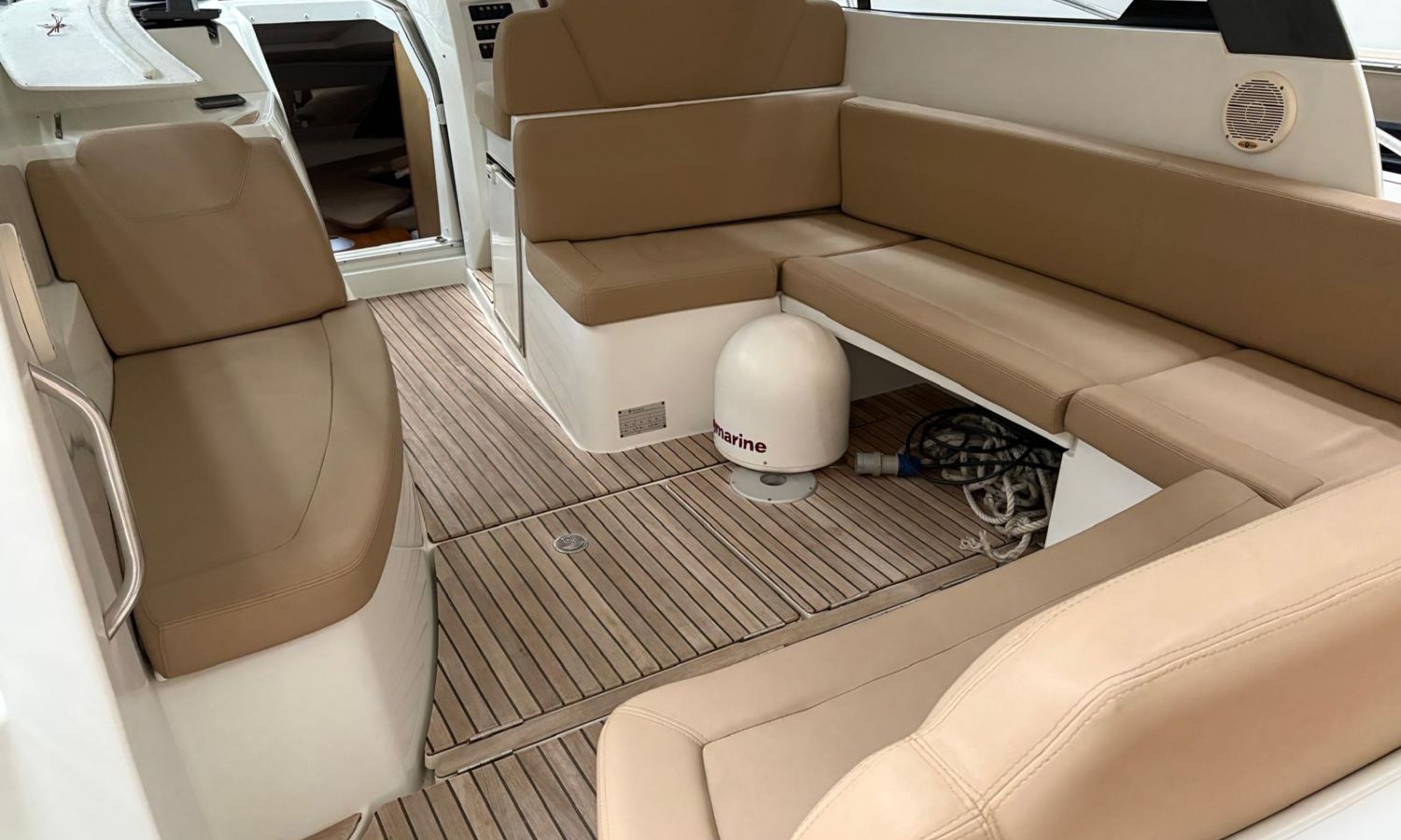 Hélice de proa - Flaps - Hard top eléctrico - Toma de puerto 220v - Cargador de baterías - Calentador de agua - Teka en bañera y plataforma de baño - Nevera eléctrica en bañera - Molinete ancla eléctrico - Colchonetas solarium en proa - Ducha en popa - Mesa en bañera - Mandos electrónicos - GPS/plotter/sonda - Piloto Automático - Compás - Radio VHF - Joystick - Equipo audio - Tv satélite - 2 Camarotes - 1 WC marino Eléctrico con depósito de aguas negras - Cocina de gas - Fregadero - Microondas - Nevera en cabina.