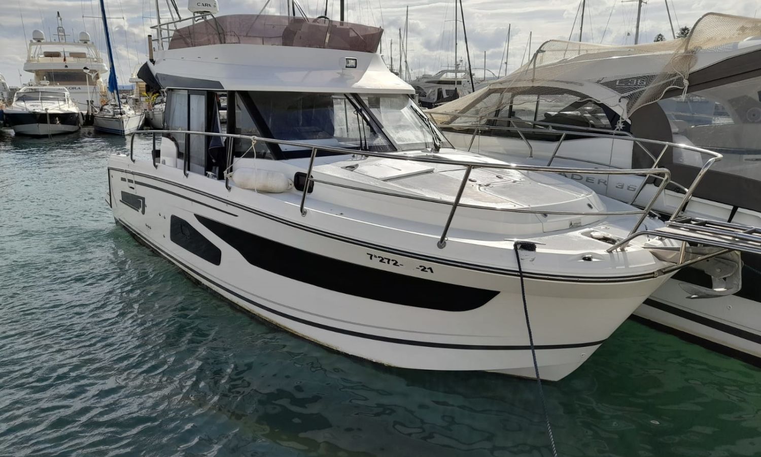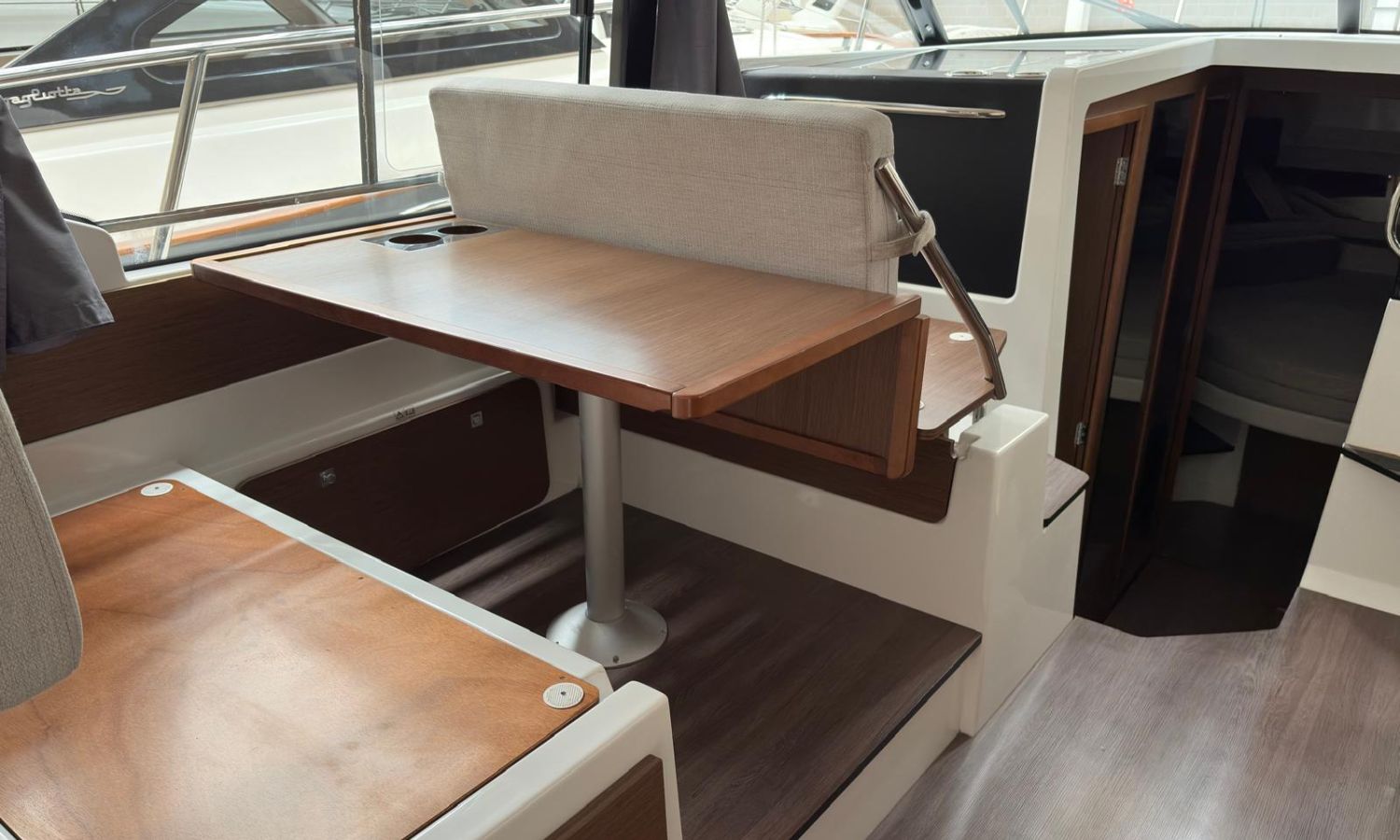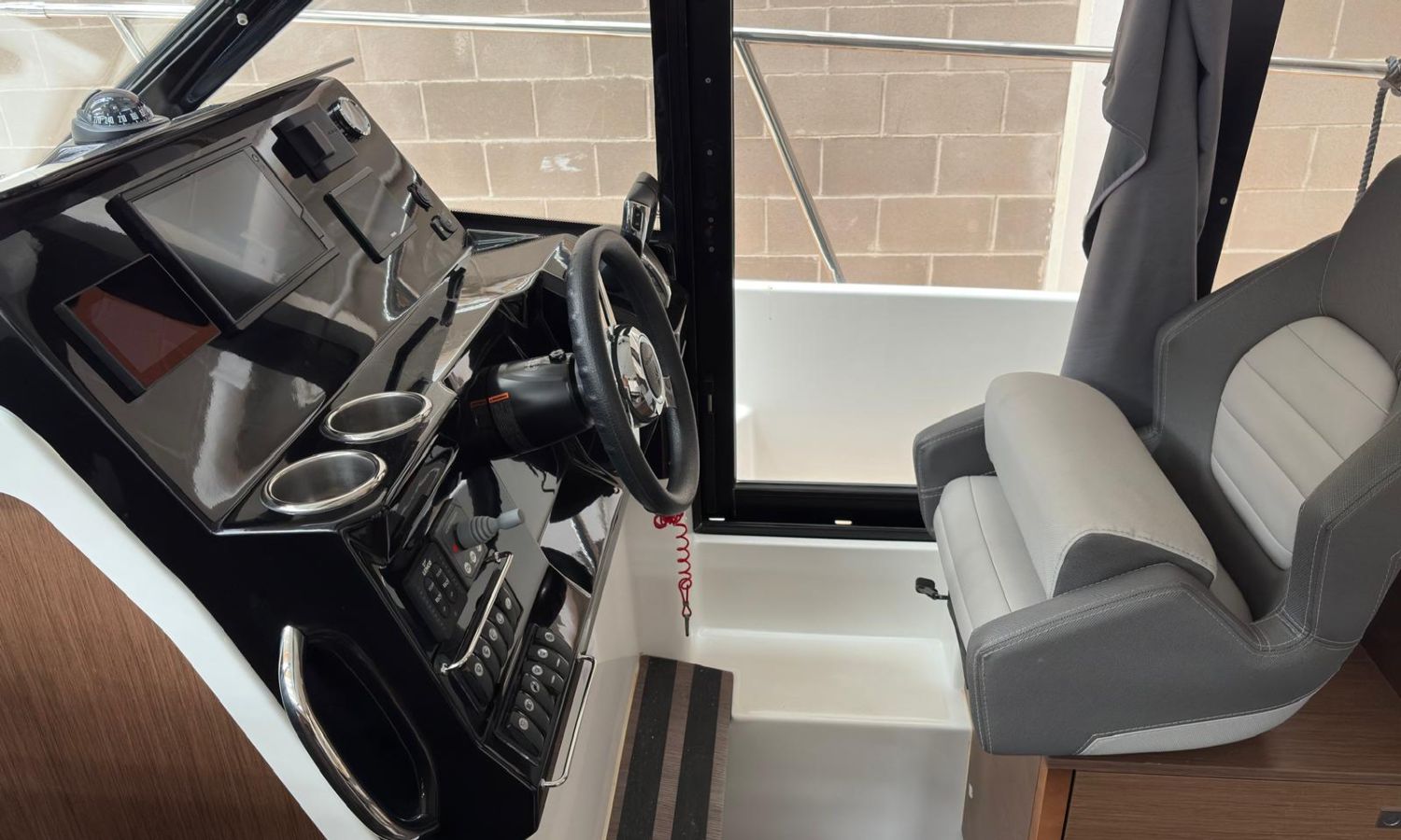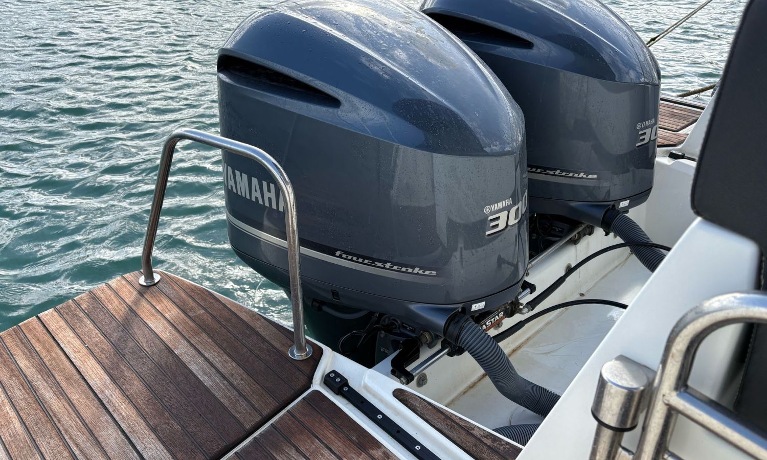 Seakeeper 2 - Nivel de equipamiento Premiere - Pack audio Fusión - Toldo para baño de sol en bañera - Bimini en el Flyng Bridge - Pack electrónico Garmin – Radio VHF - Radar – Piloto automático - Pack Confort versión Fly - Kit de amarre - Kit de fondeo - Proyector de cubierta - Propulsor de proa con doble control (Fly y Timonera) - Escalera de proa con plataforma de madera - Mesa en el Fly + cojín para Chaise Lounge - Baño de sol en Fly - Baño de sol en proa con respaldos ajustables - Flaps eléctricos - Mesas en bañera - Colchón para 3 cabina - Complemento cama doble en el salón - Armario de estiba alto en la cocina - Armario de estiba alto en el salón - Armarios de estiba alto en la cabina de proa - Plataformas y bañera en Teca - Cubierta de proa en teca - Pintura Antifoulig.Descripción embarcación