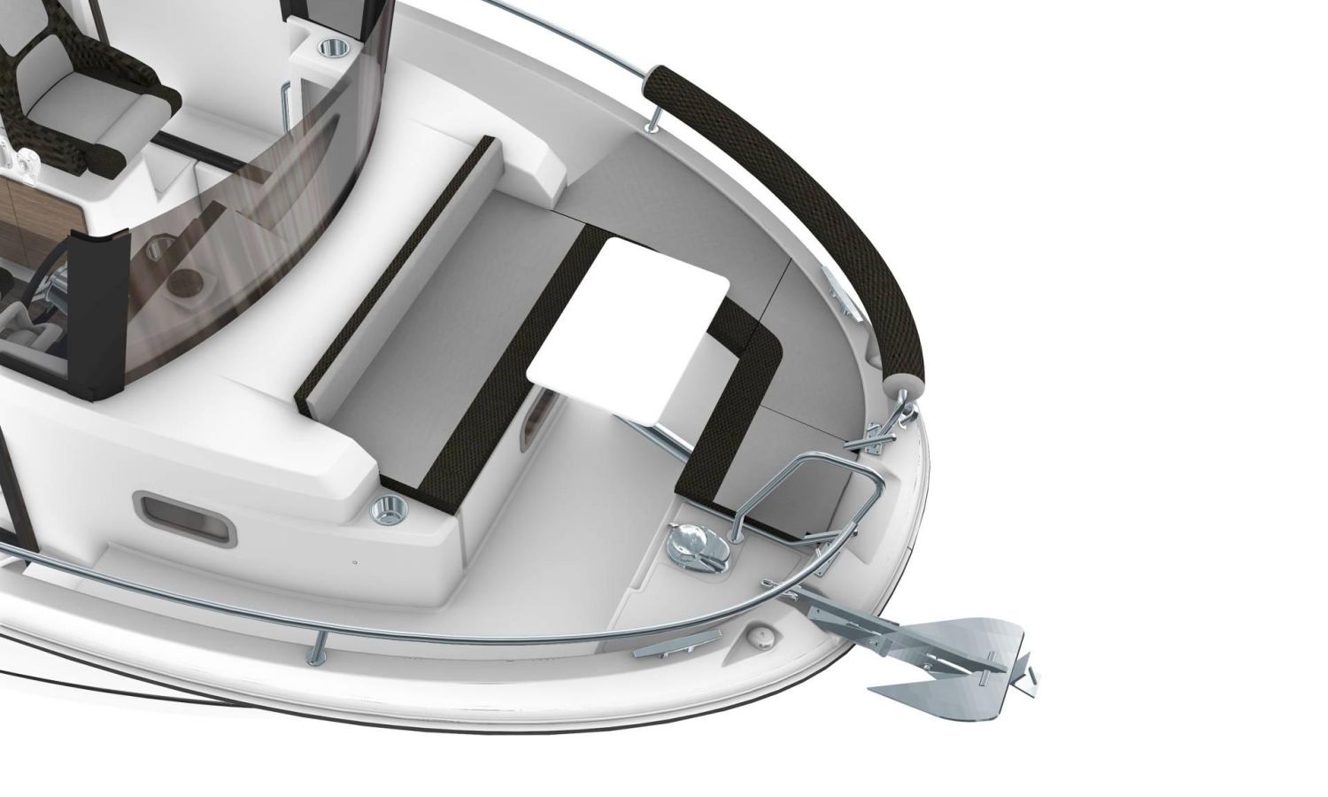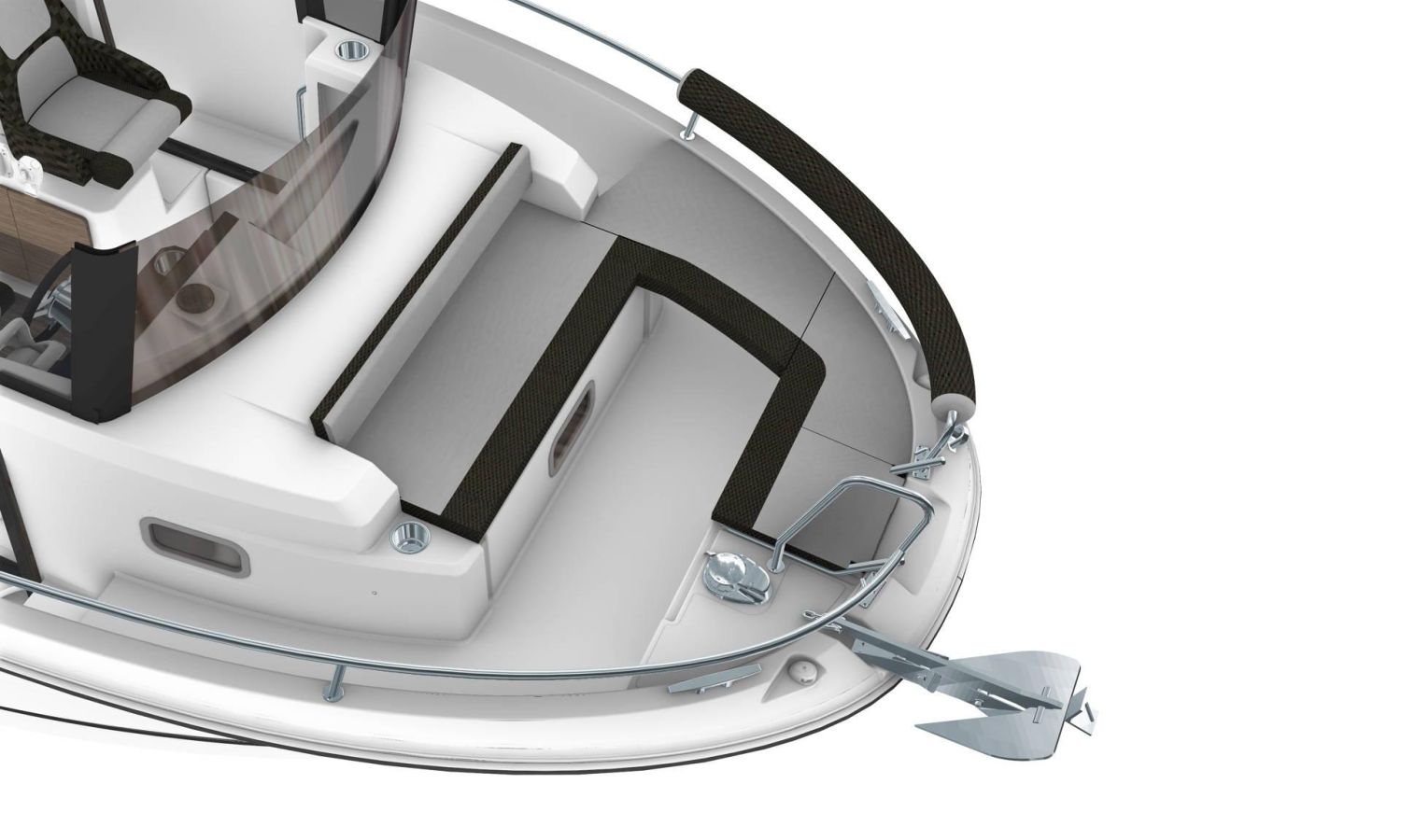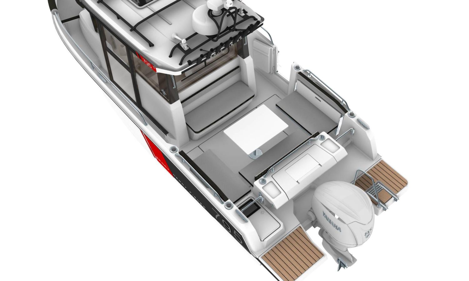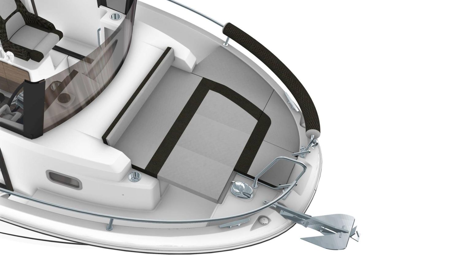 La cabina de popa grande y sin obstáculos tiene un magnífico salón, completamente convertible según sea necesario. La cabina delantera ofrece un nivel de confort nunca visto en este tipo de embarcación, ya que este amplio espacio, seguro para la pesca, se puede transformar a su vez en un salón de proa familiar o zona para tomar el sol.
