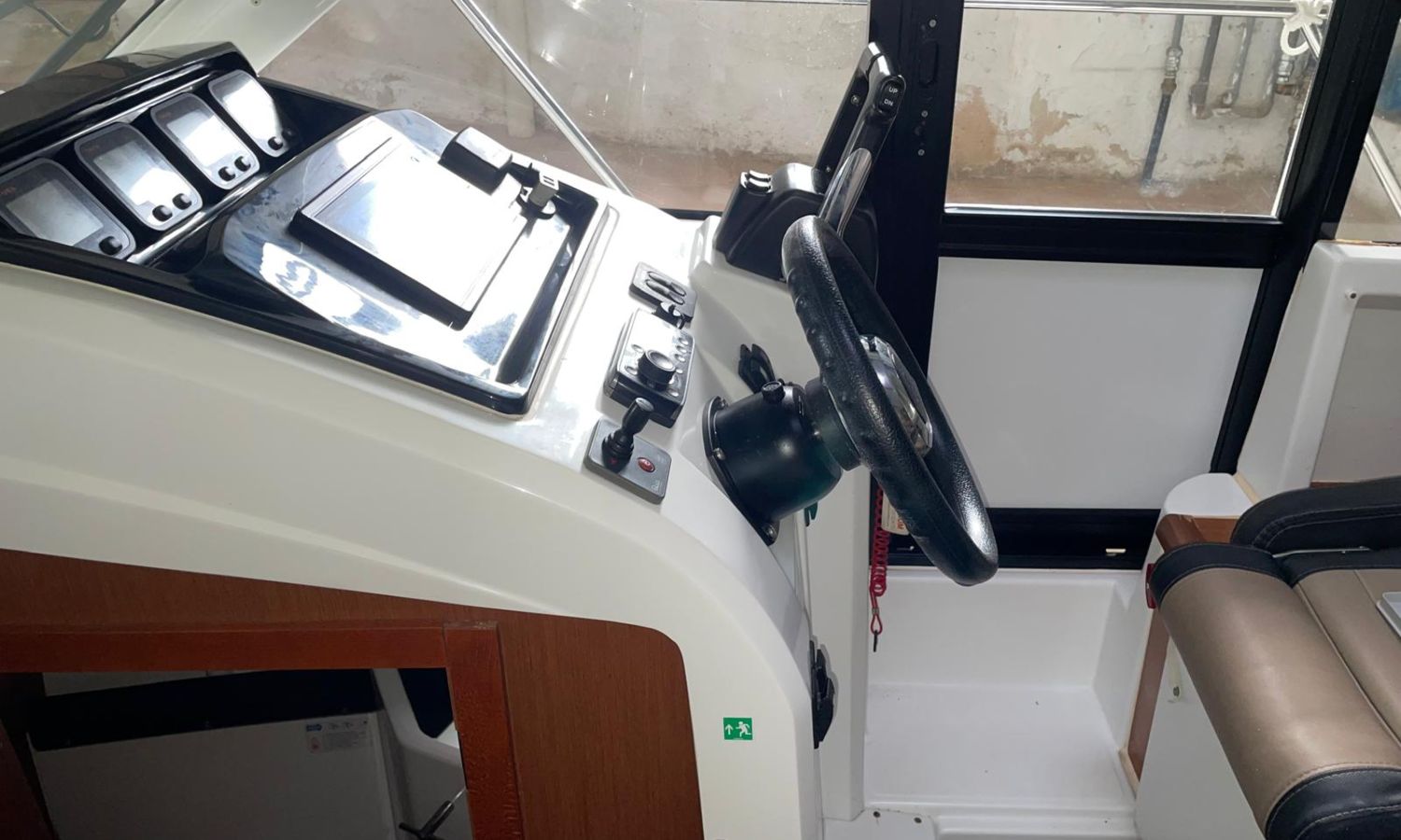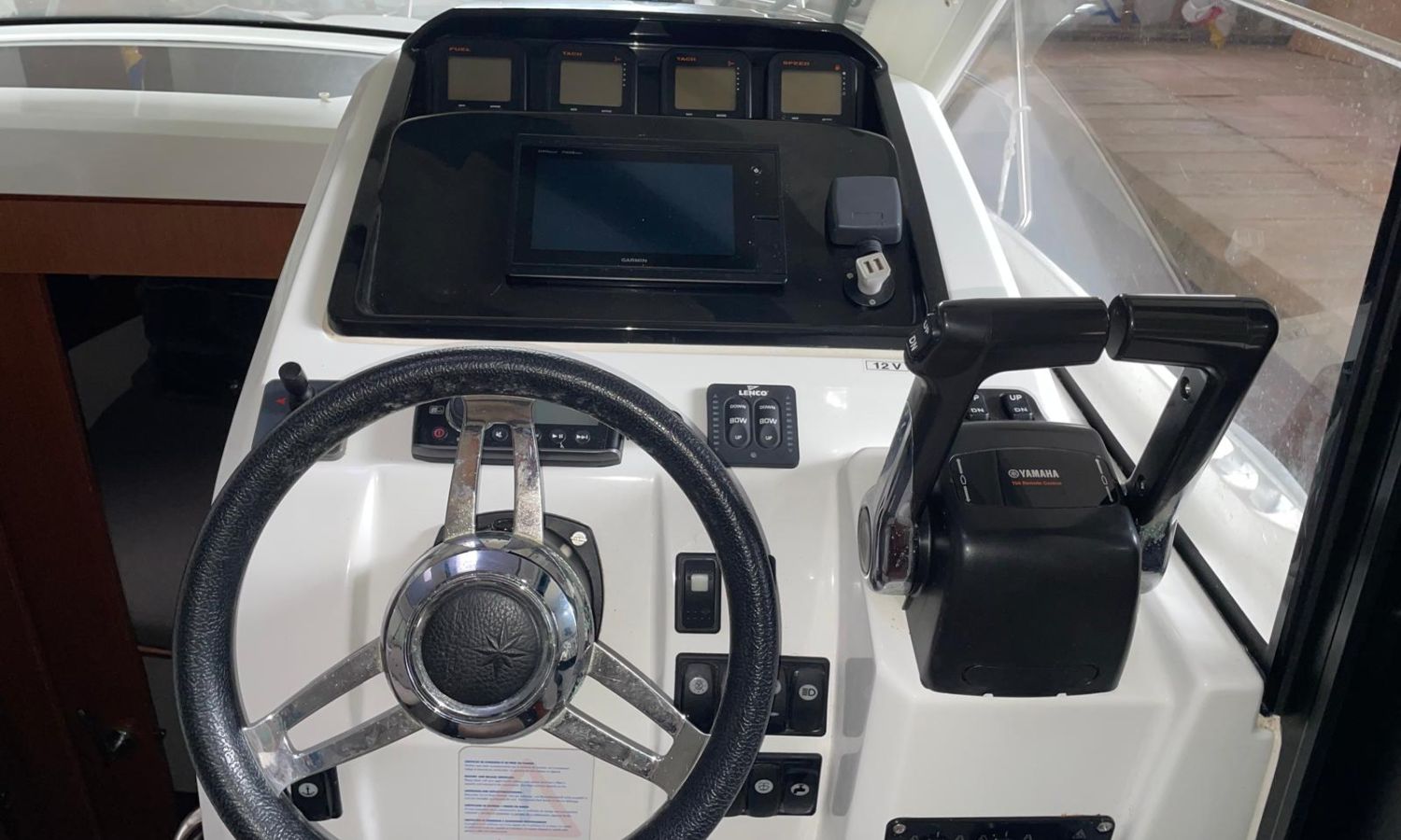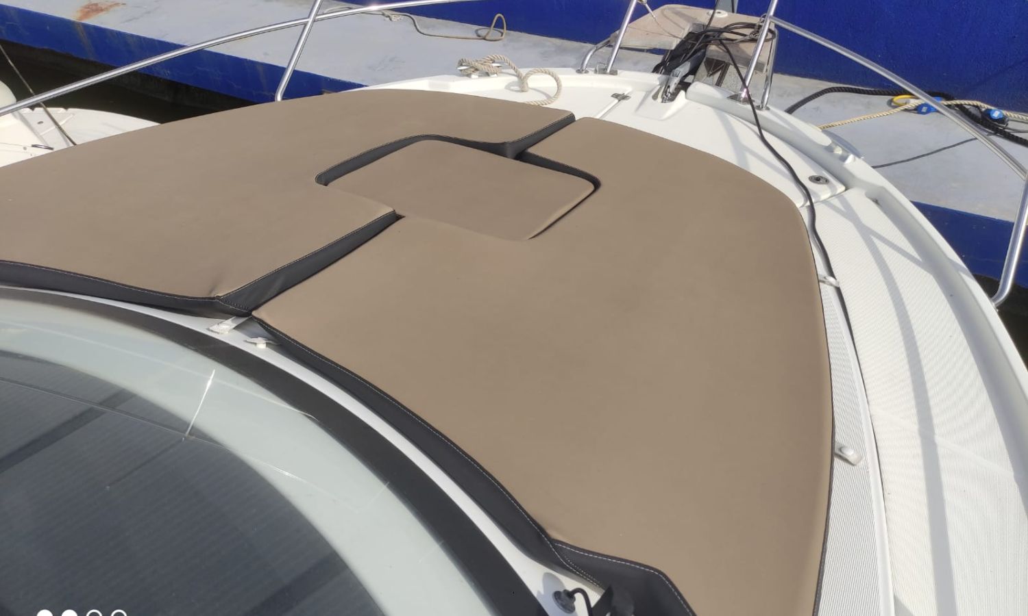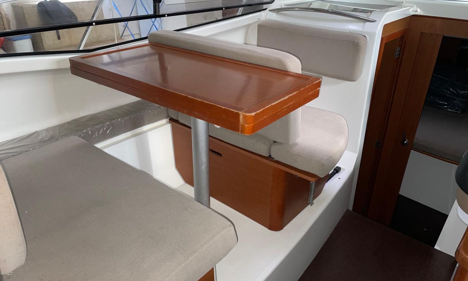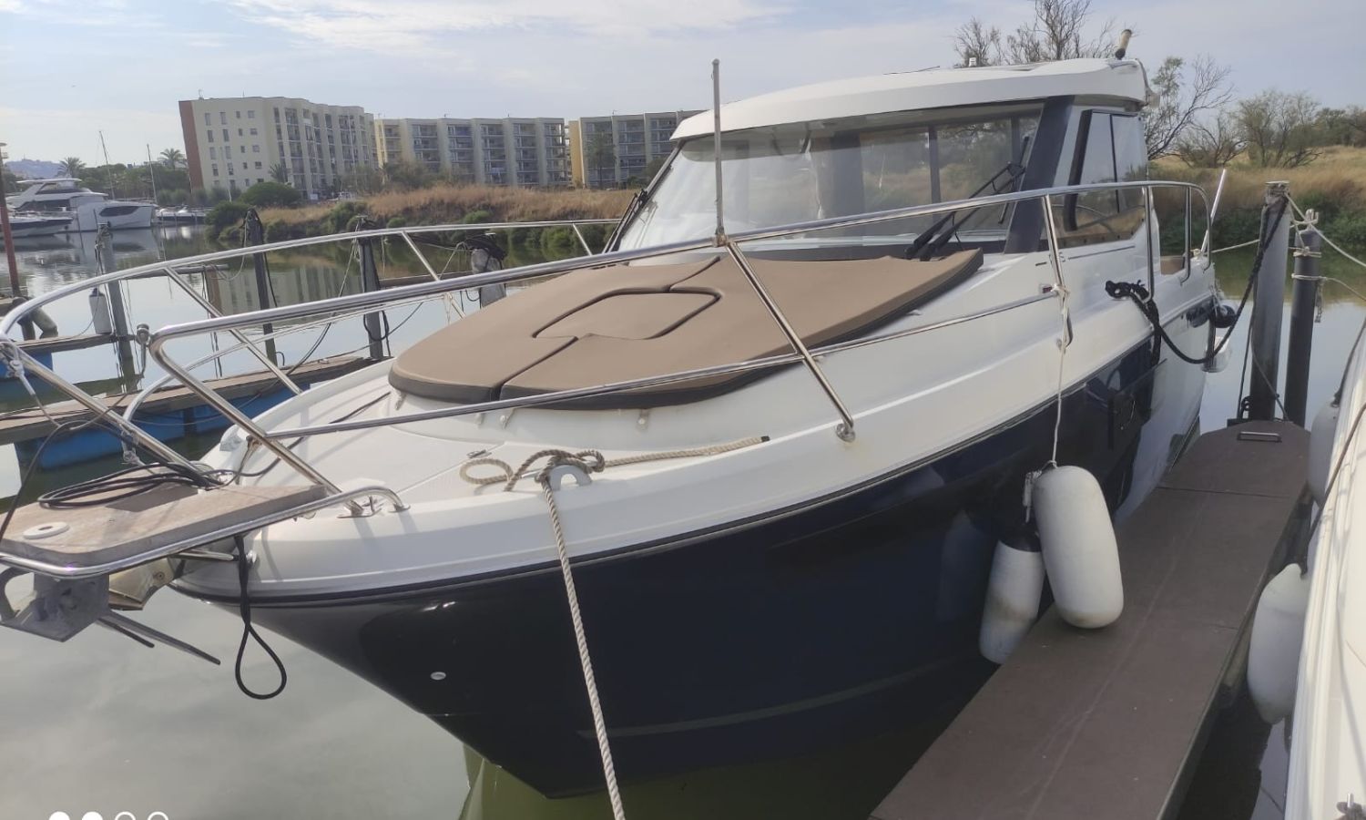 Toldo parasol - Escalera de baño - Ducha en popa - Solarium de proa - Teca - Mesa en la bañera - Nevera - Gps/Plotter/Sonda - Vhf - Equipo de audio - Hélice de proa - Flaps - Fregadero - Wc marino con depósito de aguas negras - Molinete de ancla eléctrico - Antifouling.Descripción embarcación