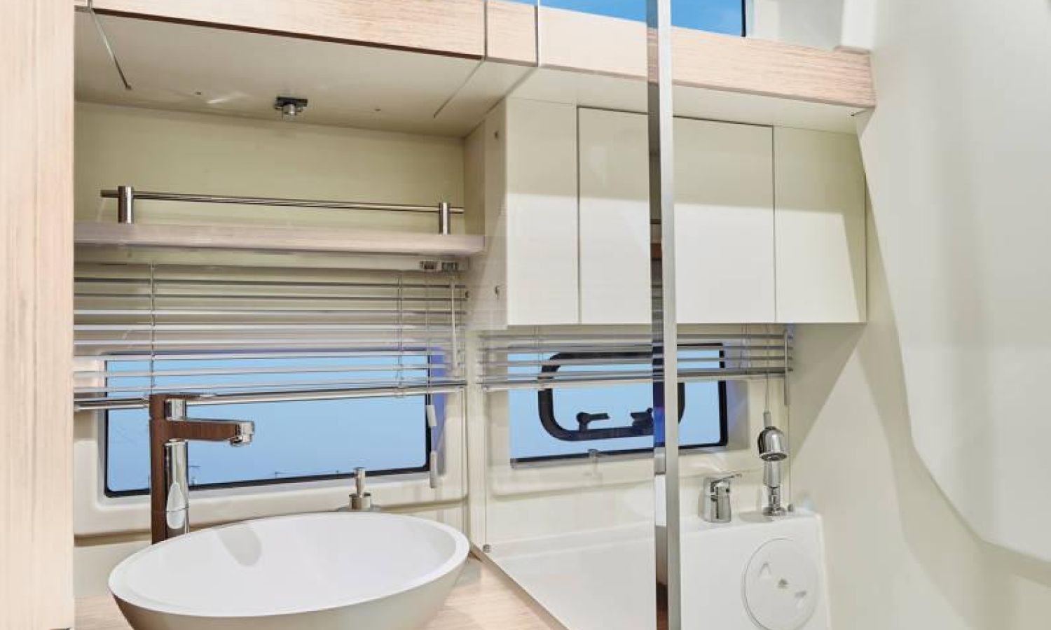 Desde el punto de vista del diseño, la disposición interior responde a las exigencias del concept NC exenta de escalones. La vida a bordo es fluida y agradable.