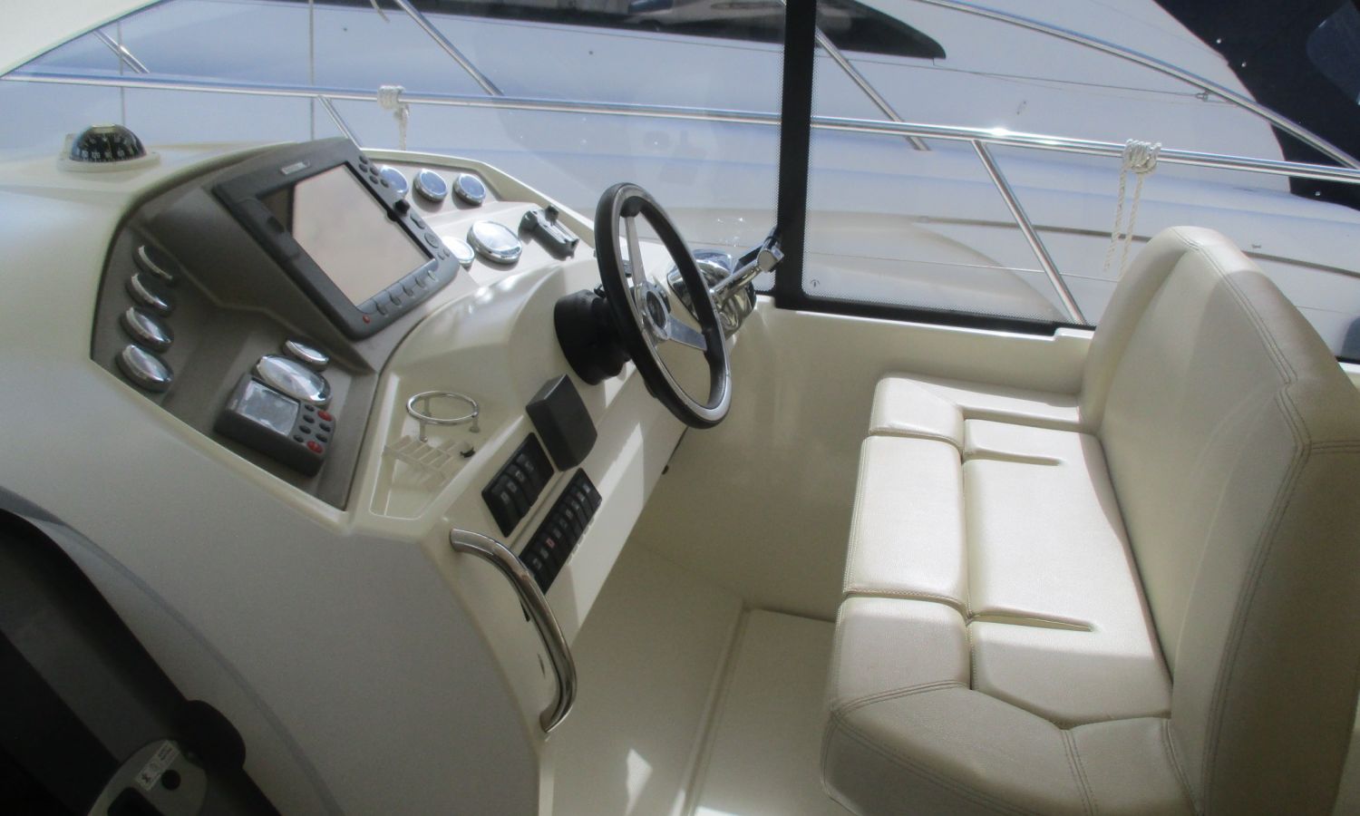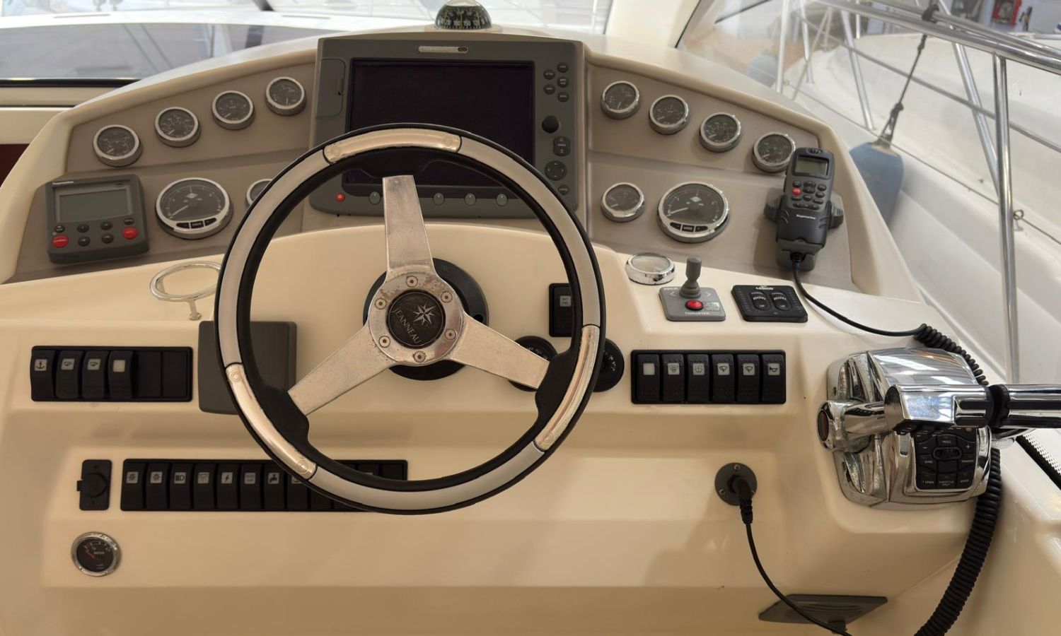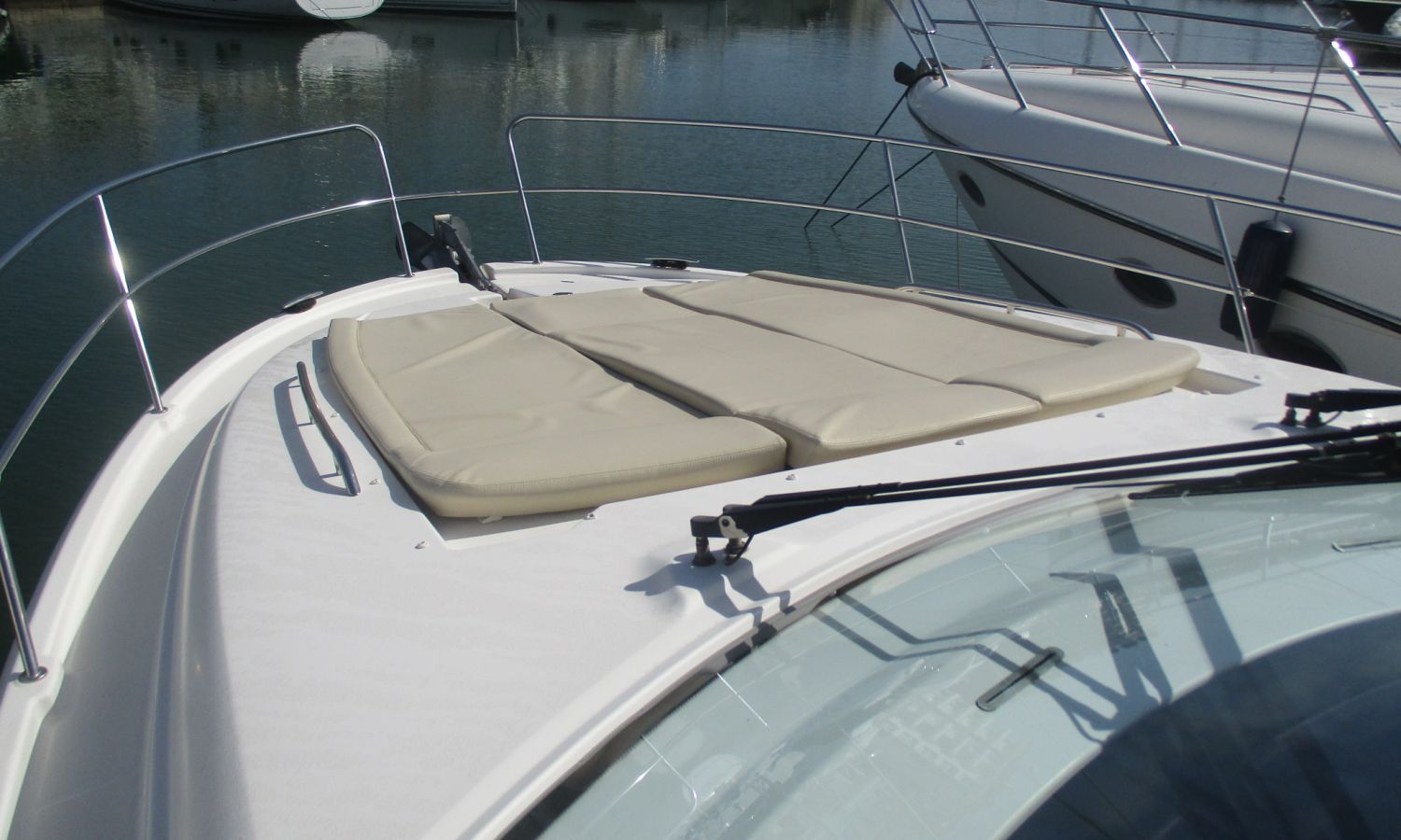 Solárium proa - Lona cierre - Frigorífico bañera - Parrilla eléctrica - Molinete eléctrico con cadena y ancla - Hélice de proa - Contador de cadena - VHF - GPS+Plotter - Radar - Piloto automático - Generador - Aire acondicionado - Frigorífico en salón - Horno microondas - WC eléctrico - Depósito de aguas negras - Colchoneta mesa bañera - 2ª mesa bañera - Hard top eléctrico - Cargador de batería - Ducha a popa - Toma corriente puerto.Descripción embarcación