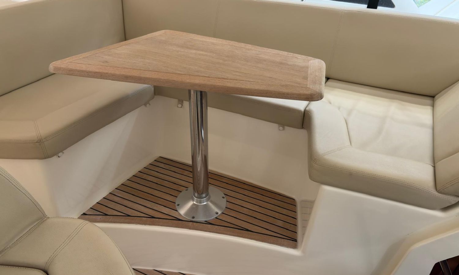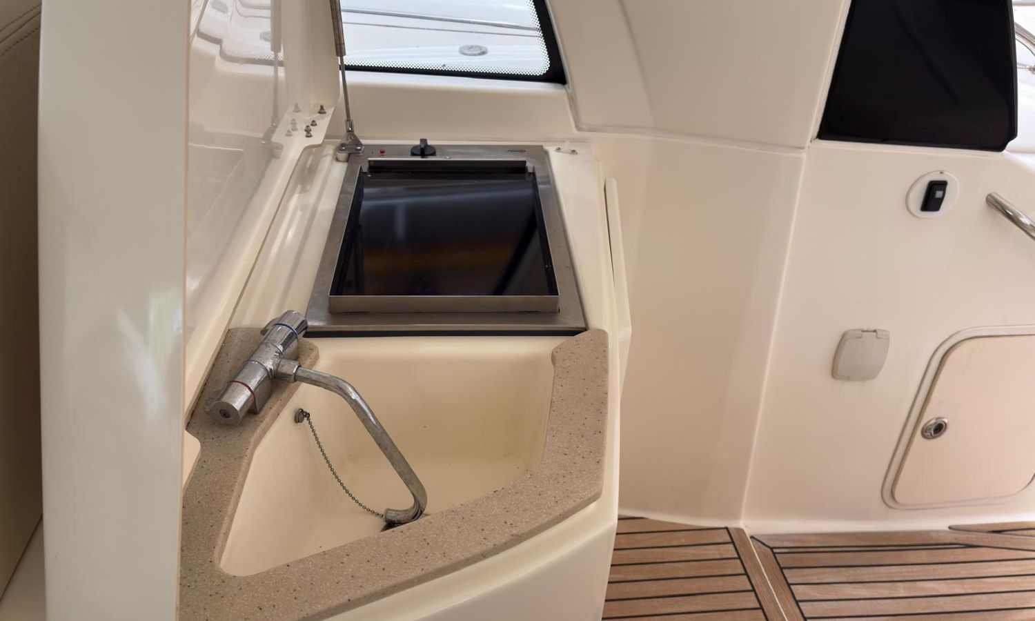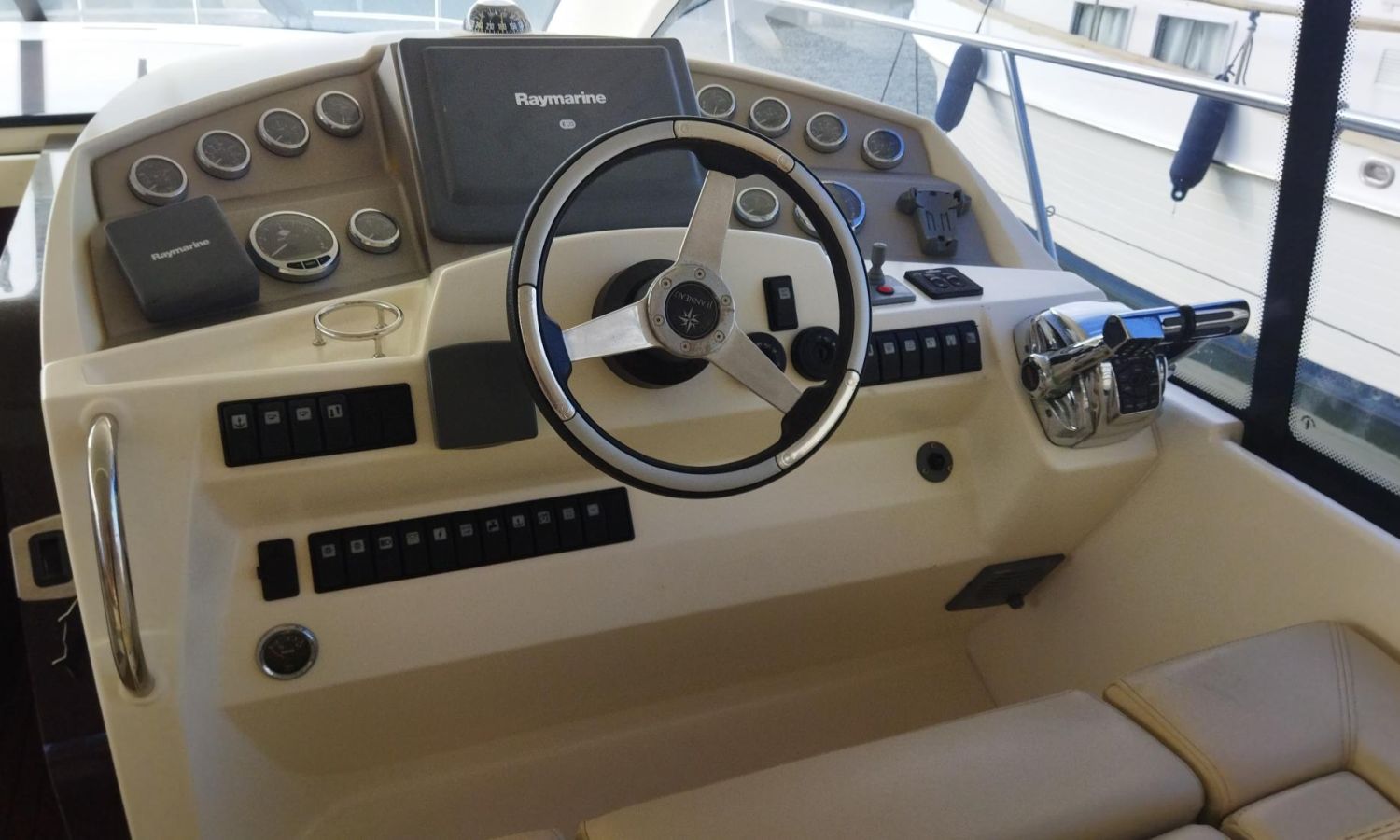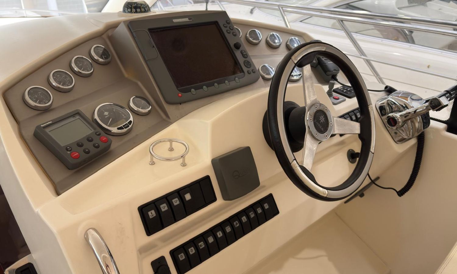 Solárium proa - Lona cierre - Frigorífico bañera - Parrilla eléctrica - Molinete eléctrico con cadena y ancla - Hélice de proa - Contador de cadena - VHF - GPS+Plotter - Radar - Piloto automático - Generador - Aire acondicionado - Frigorífico en salón - Horno microondas - WC eléctrico - Depósito de aguas negras - Colchoneta mesa bañera - 2ª mesa bañera - Hard top eléctrico - Cargador de batería - Ducha a popa - Toma corriente puerto.Descripción embarcación