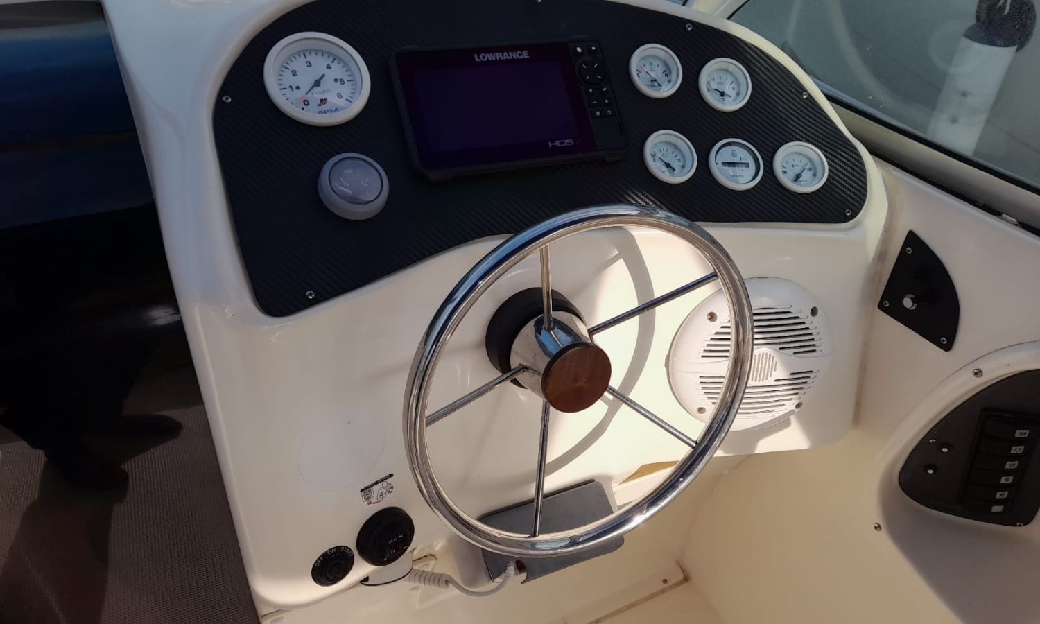 Toldo parasol - Lona de fondeo - Plataforma de baño con escalera - Ducha en popa - Mesa en la bañera - Nevera 12 V. - Toma de puerto - Cargador de baterias - Gps/Plotter/Sonda - VHF - Equipo de audio - Compás - Wc químico - Fregadero - Molinete de ancla eléctrico - Cojines solárium proa - Motor nuevo 2021 - Antifouling.Descripción embarcación