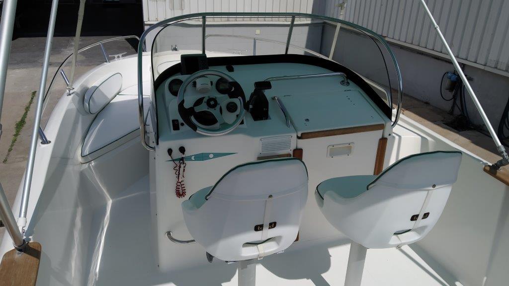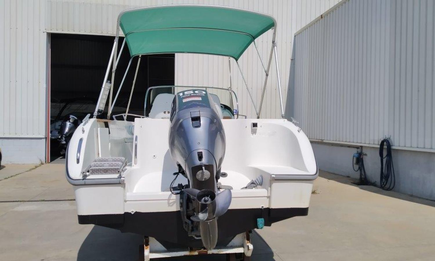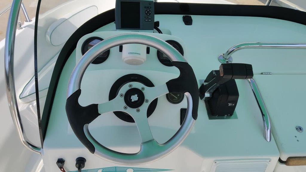 Bimini - Ducha en popa - Lona de consola - Dirección hidráulica - Mesa en proa - Solárium de proa - Sonda Garmin.Descripción embarcación