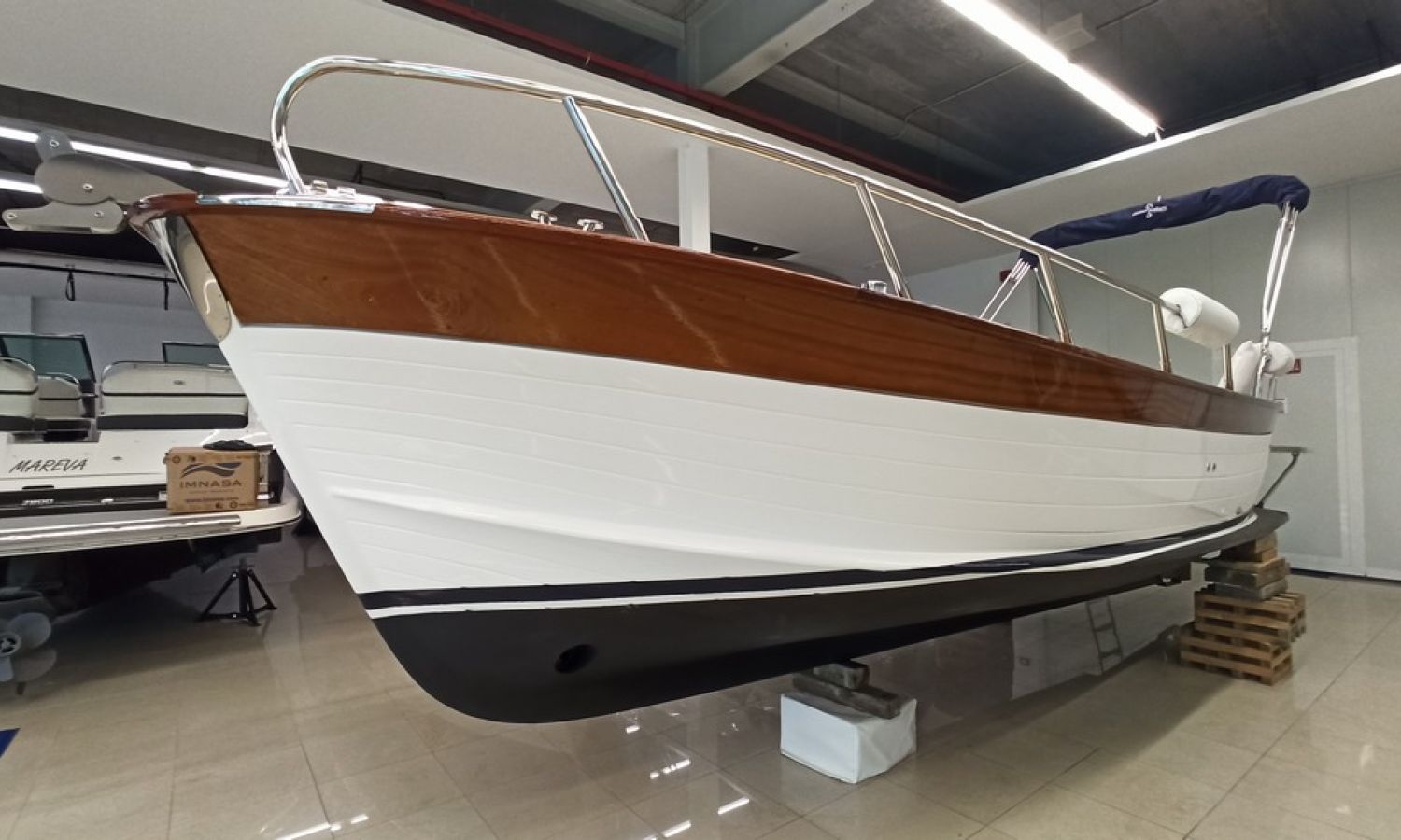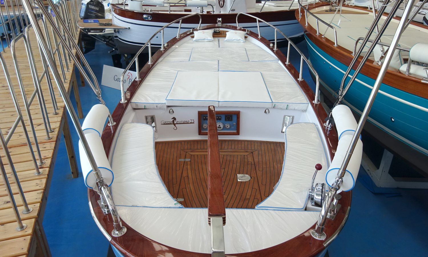 Toda una clásica Gozzo, con un solarium enorme para disfrutar al máximo de los días soleados.Además de su completo equipo estándar, dispone también de múltiples accesorios extra que le harán disfrutar de magníficos ratos en el mar. Hecha especialmente para nosotros, la Positano 23 sólo la encontrará aquí ya que es un modelo especialmente diseñado con detalles y materiales que hemos seleccionado. Esta embarcación sorprenderá por sus fantásticos acabados.