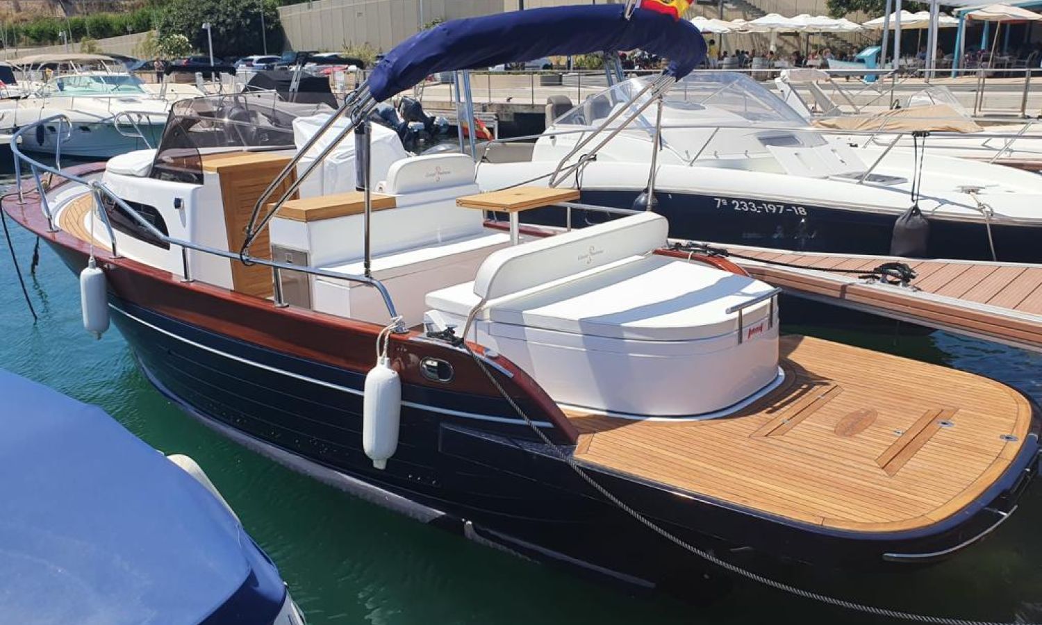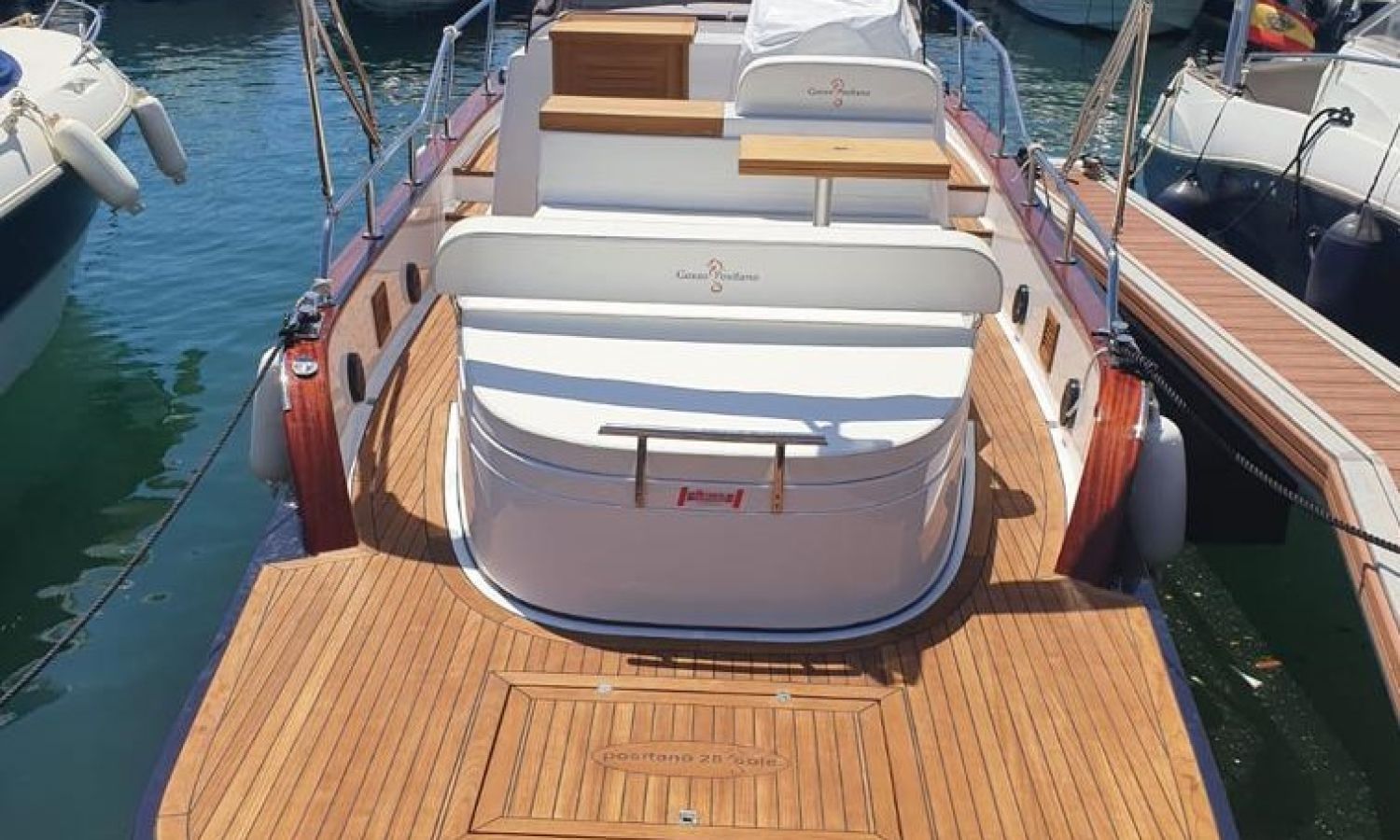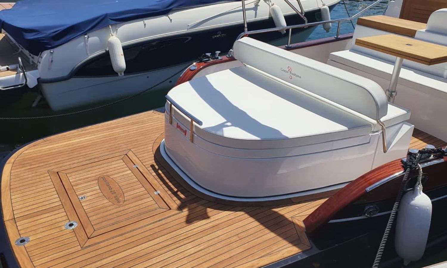 Con sólo 28 pies, el modelo Gozzo Positano 28 Sole ofrece la posibilidad de disfrutar del mar, sin renunciar a los grandes espacios y a la elegancia de un clásico.Exteriores con grandes soláriums a proa y popa, amplia plataforma de baño y una zona de mesa con capacidad para 8 personas. Interiores con una espaciosa cabina con baño, todo ello fabricado con maderas nobles, materiales de alta calidad y accesorios imprescindibles para la vida a bordo.