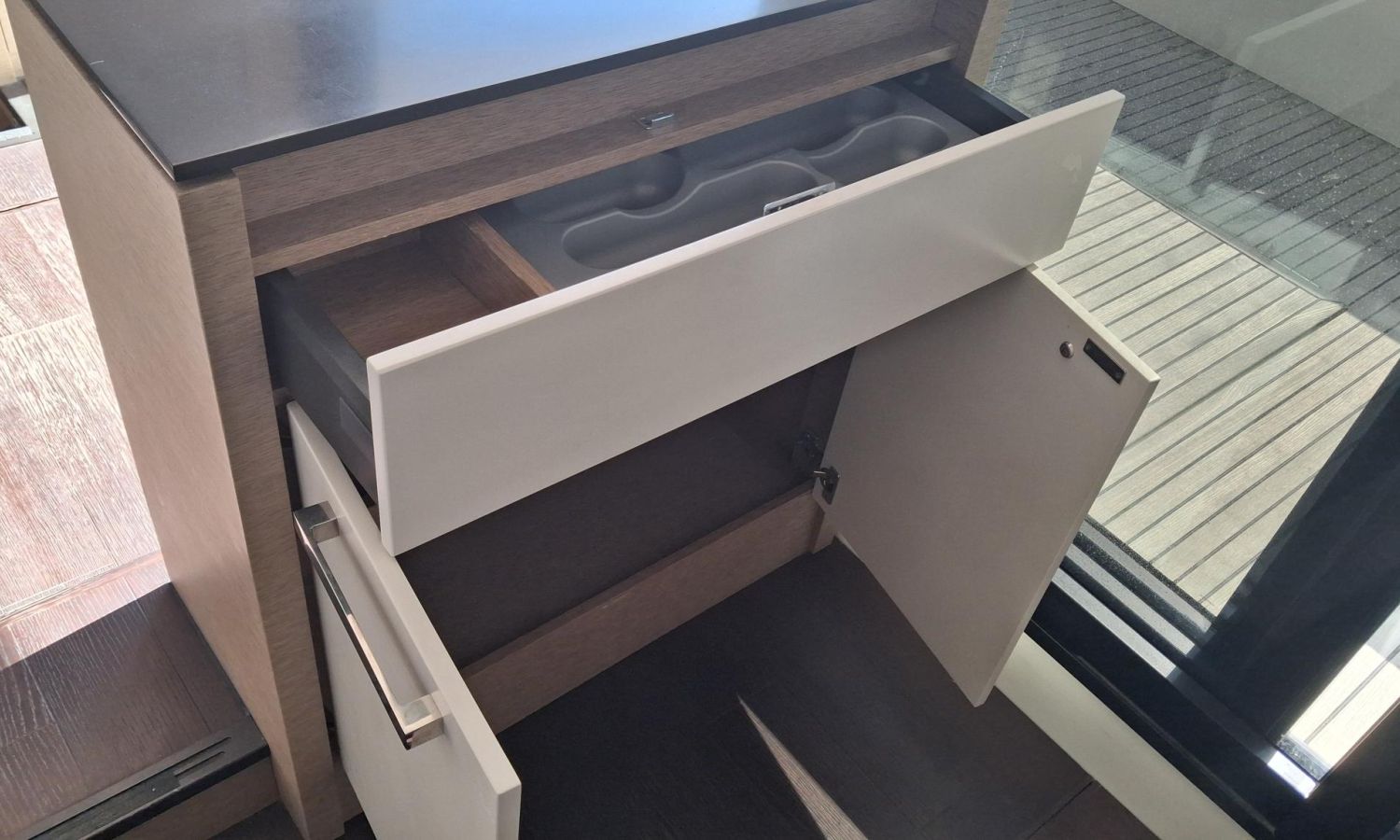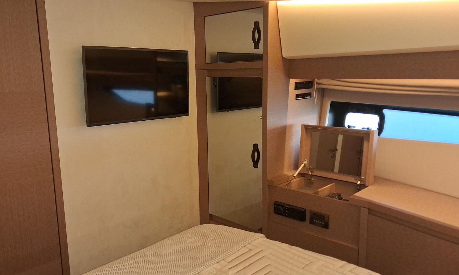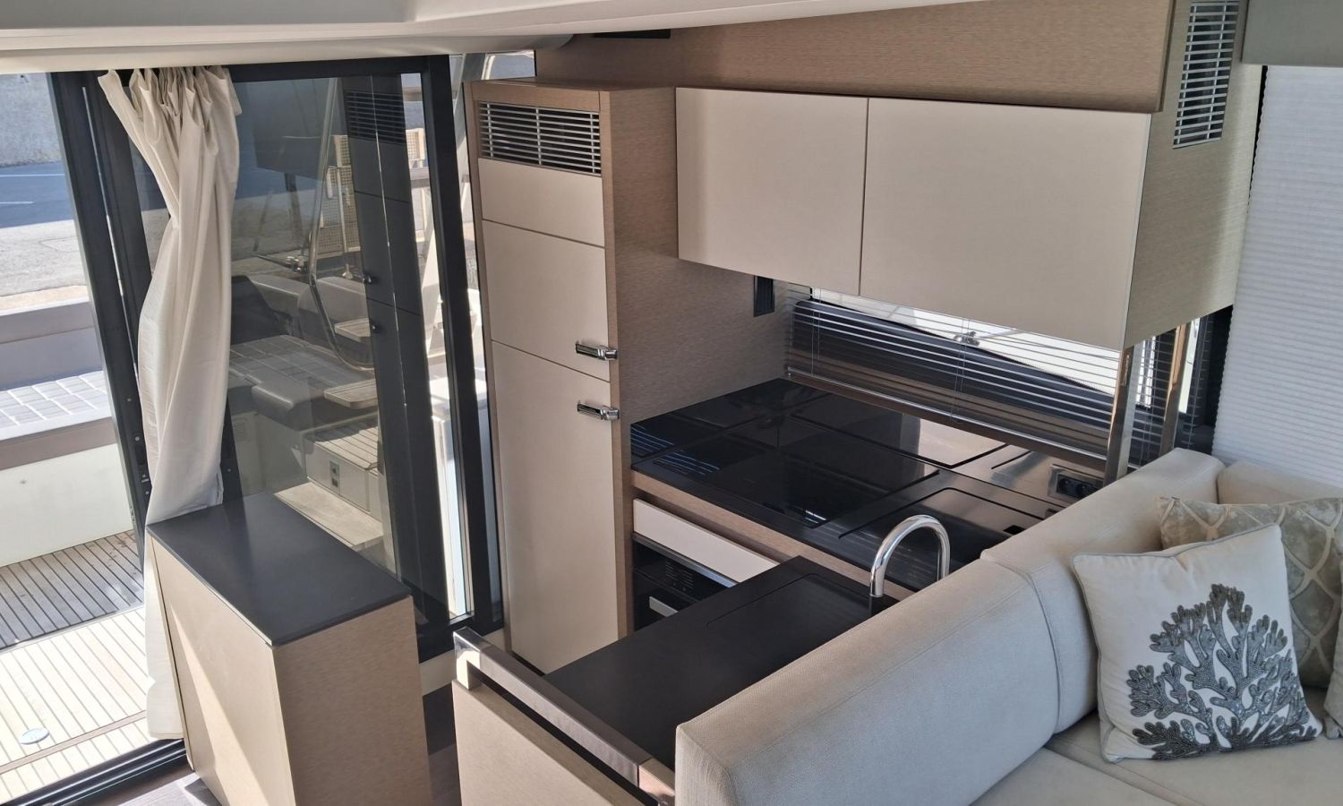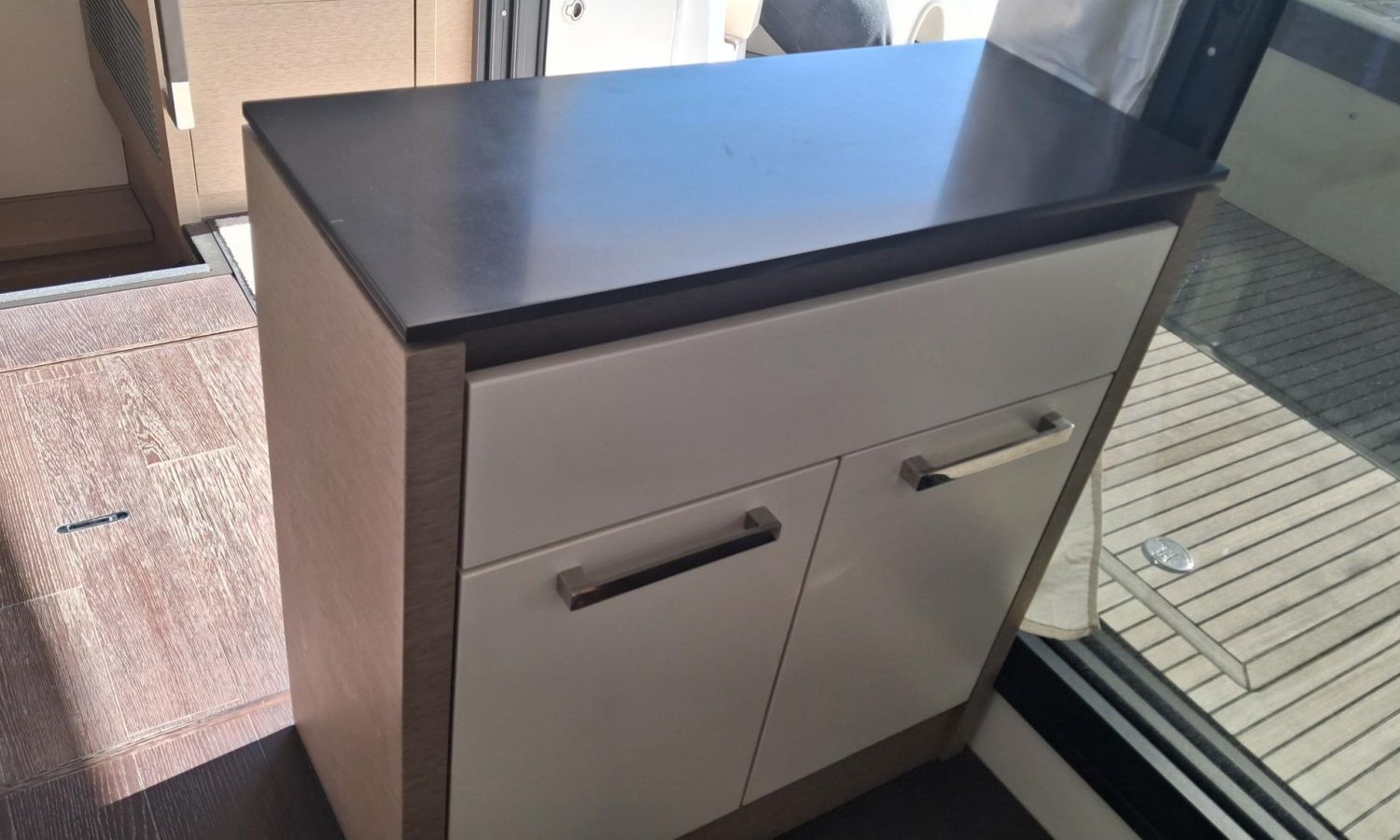 Williams Minijet 280 - Garaje con kit de varada para neumática - Joystick - Hélice de proa - Molinete eléctrico con ancla y cadena - Molinete de popa a estribor - 2 pantallas Raymarine GPS/Plotter Axiom 12 en cabina y 2 pantallas en el flybridge - VHF Raymarine en cabina y en el flybridge - Piloto automático - Antena radar - Flaps eléctricos - Ducha de popa - Plataforma de baño hidráulica - Pasarela hidráulica integrada - Toma puerto 220 V - Toma de agua muelle - Aire acondicionado 55.000 BTU - Generador 11 KW - Convertidor 24/220 V 2000 W - 3 Camarotes y 2 baños - TV con sistema audio Bose en salón - TV en cabina armador - TV en cabina VIP - Equipo de sonido Fusion - Zona de cocina con nevera, congelador, placa de cocción eléctrica, campana extractora, horno microondas combinado, lavavajillas y fregadero - Salón con mesa extensible - Suelo salón de madera - Toldo parasol bimini en el flybridge - Mueble bar en el flybridge con nevera, barbacoa y fregadero - Mesa de teka e inox en el flybridge - Solárium en el flybridge con colchonetas y respaldos regulables - Colchonetas en solárium de proa con respaldos regulables - Lonas de protección en solárium de proa y asientos bañera de popa - Kit de lonas en el flybridge - Antifouling.Descripción embarcación
