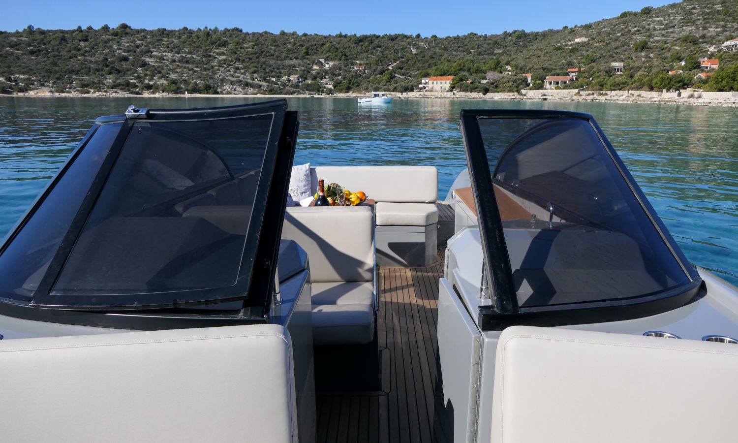 Como en todas las otras formas, el Supreme 27 difiere también en este aspecto, al centrarse en la movilidad y la facilidad de uso, haciendo que la tumbona y el sillón con mesa sean de libre acceso desde proa hasta popa.