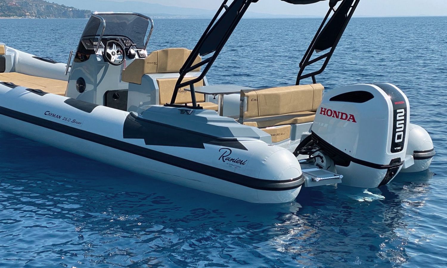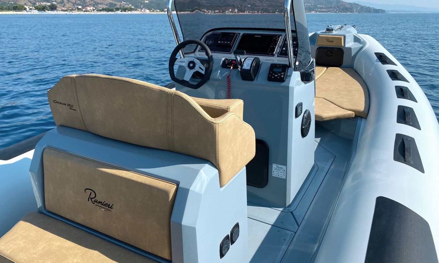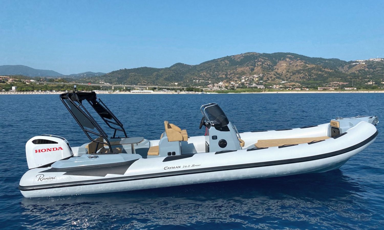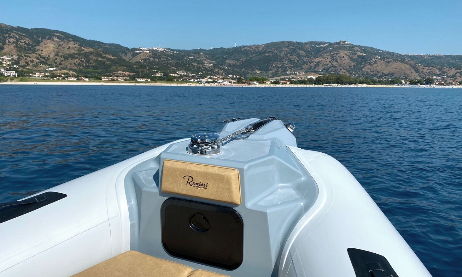 Ranieri lanza al mercado semirrígidas de 26 pies en adelante. Estilo, confort y potencia garantizados.Algunos accesorios estándar de este modelo son la consola completa con cuadro de mandos Luxury, el amplio solárium de proa con colchonetas, luces de navegación, panel eléctrico, plataformas de popa en fibra de vidrio y escalera telescópica, varios cofres para estiba, desconectador de batería, mesa de popa, dirección hidráulica, etc. ¡Complete la configuración de este barco a su gusto con los accesorios opcionales!