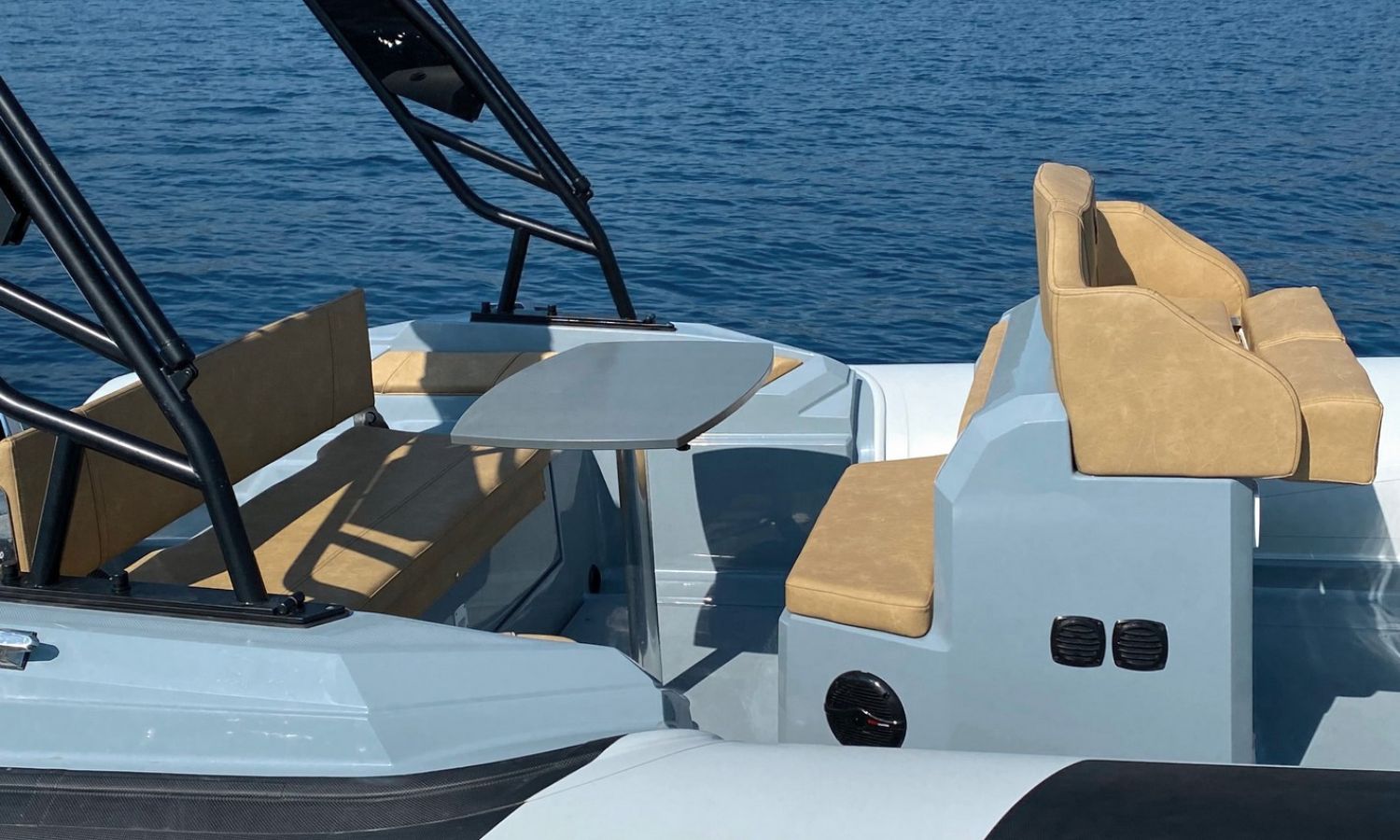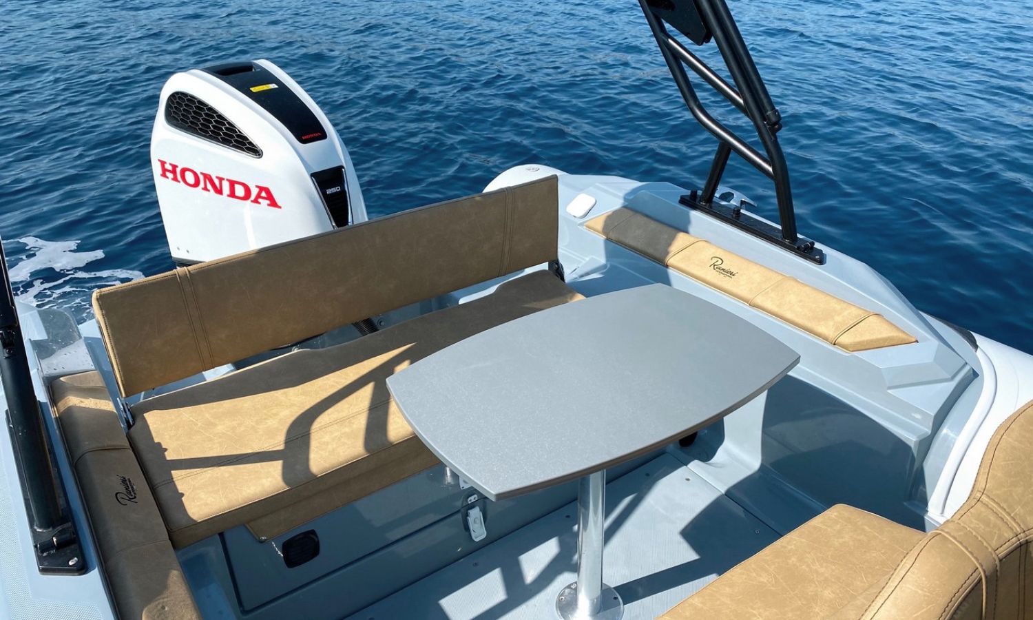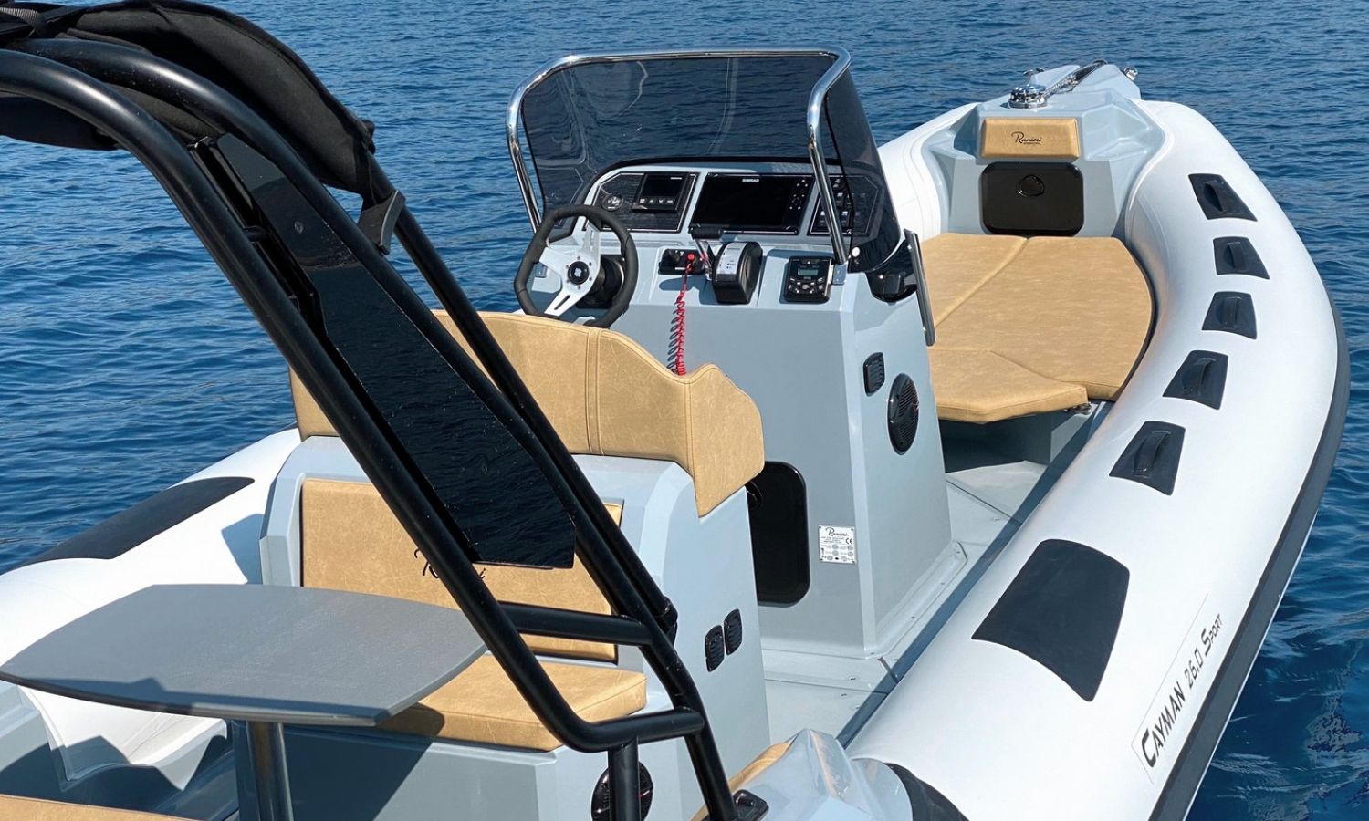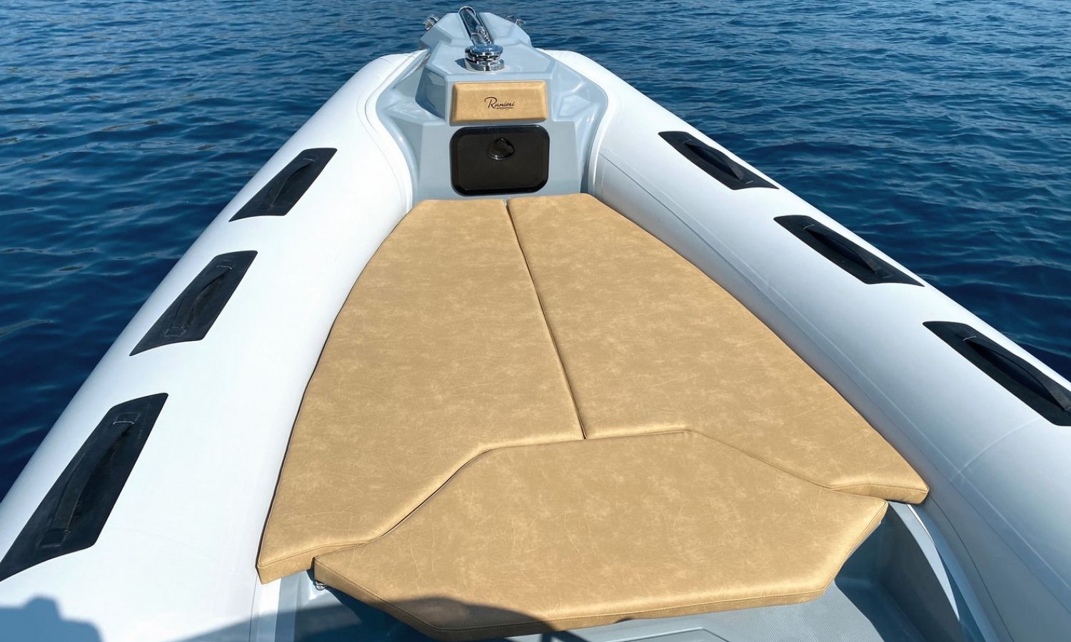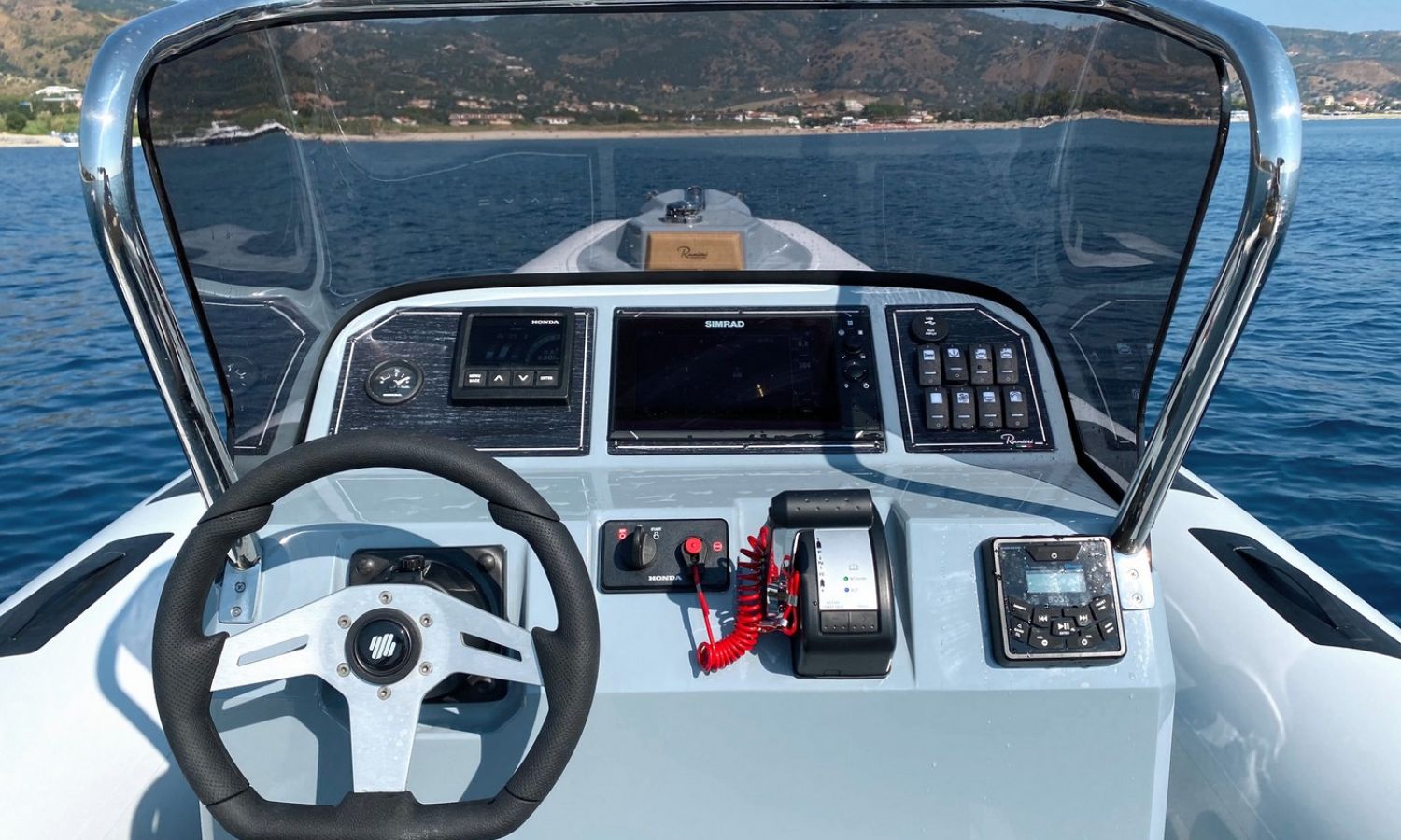 Ranieri lanza al mercado semirrígidas de 26 pies en adelante. Estilo, confort y potencia garantizados.Algunos accesorios estándar de este modelo son la consola completa con cuadro de mandos Luxury, el amplio solárium de proa con colchonetas, luces de navegación, panel eléctrico, plataformas de popa en fibra de vidrio y escalera telescópica, varios cofres para estiba, desconectador de batería, mesa de popa, dirección hidráulica, etc. ¡Complete la configuración de este barco a su gusto con los accesorios opcionales!