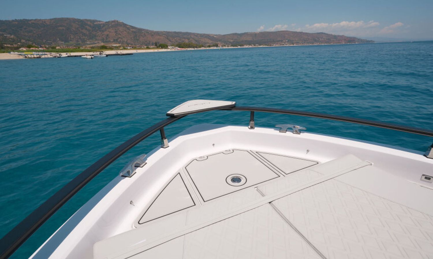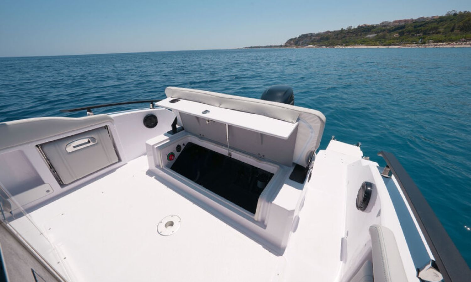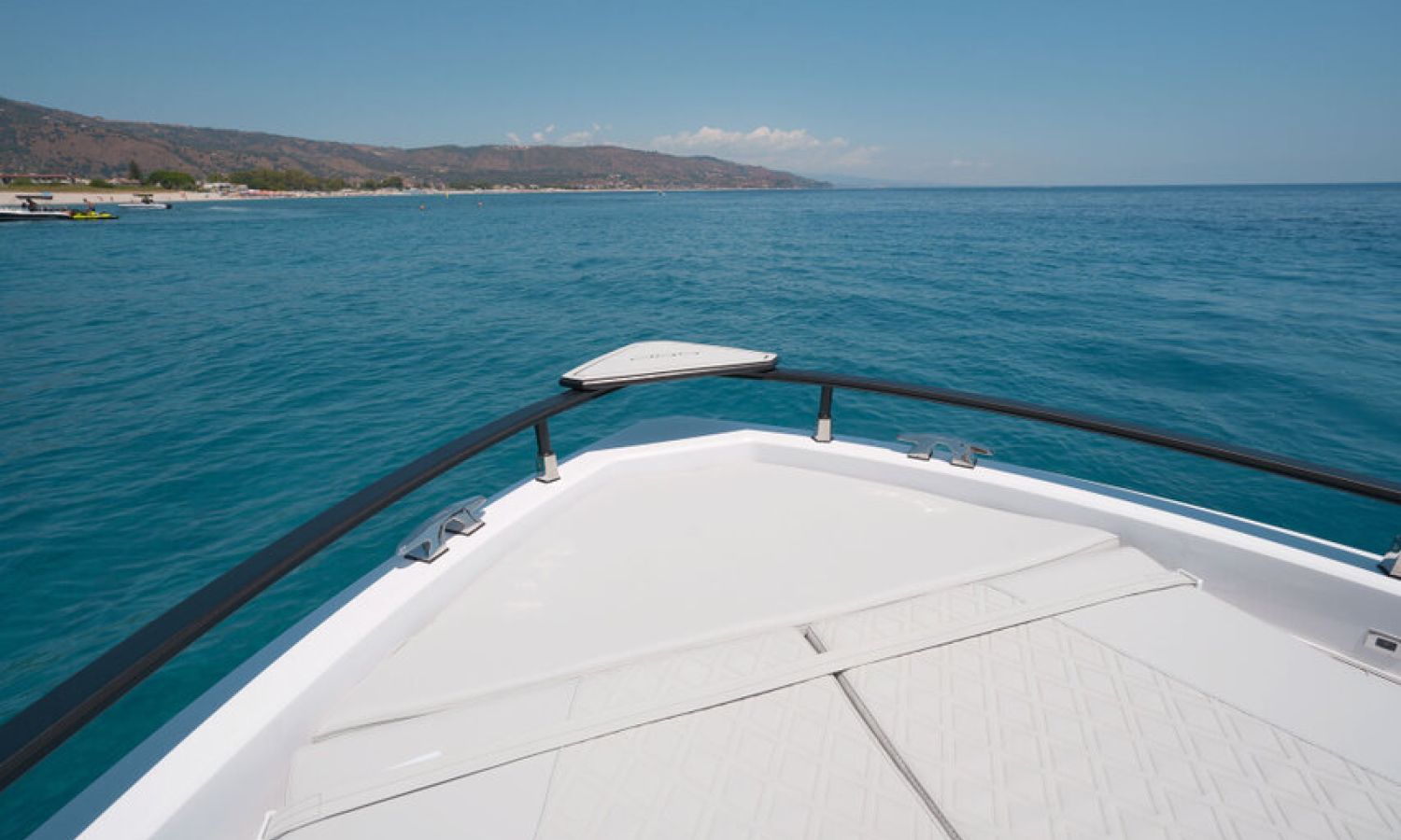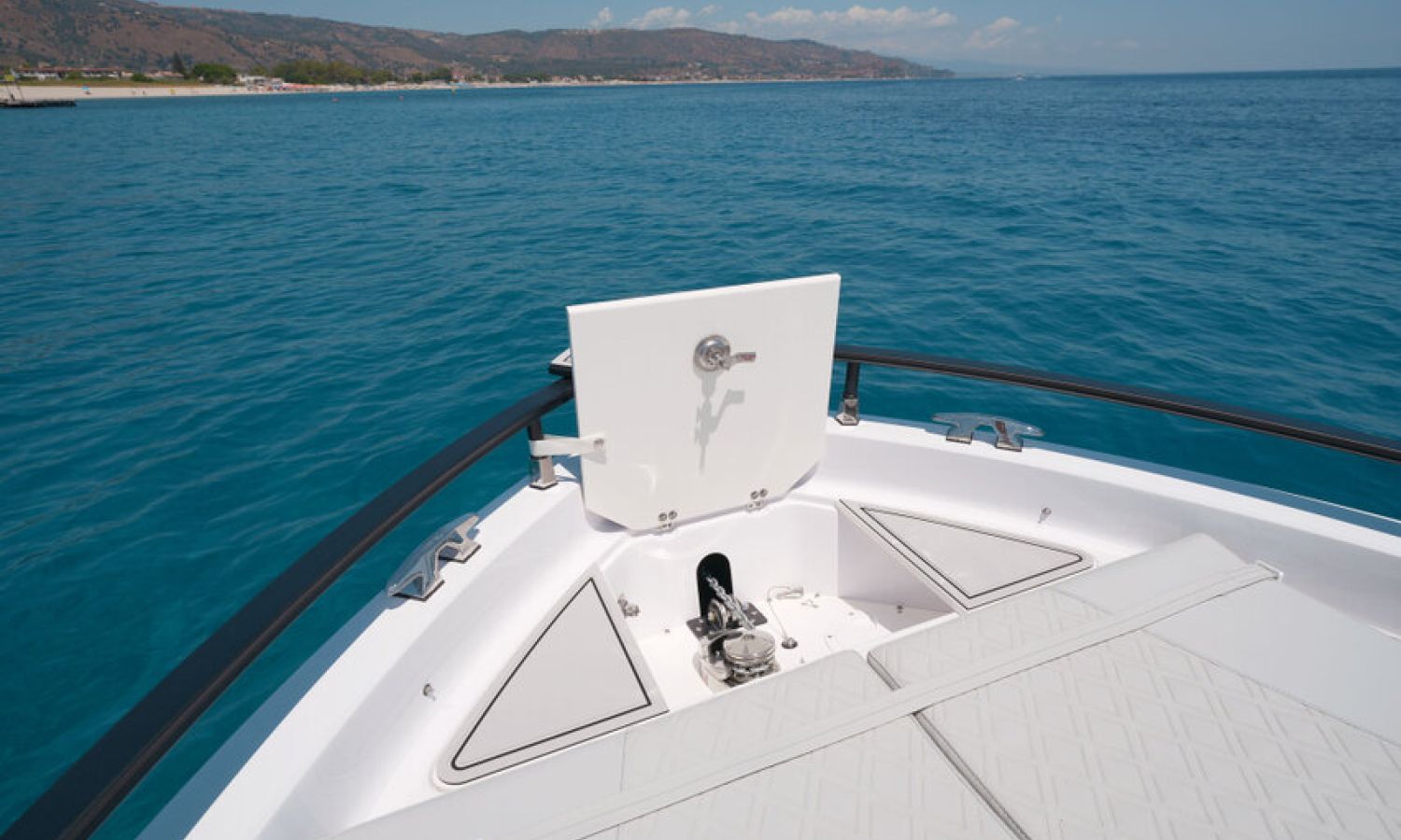 Embarcación de última generación, con la proa recta y múltiples posibilidades de equipamiento.