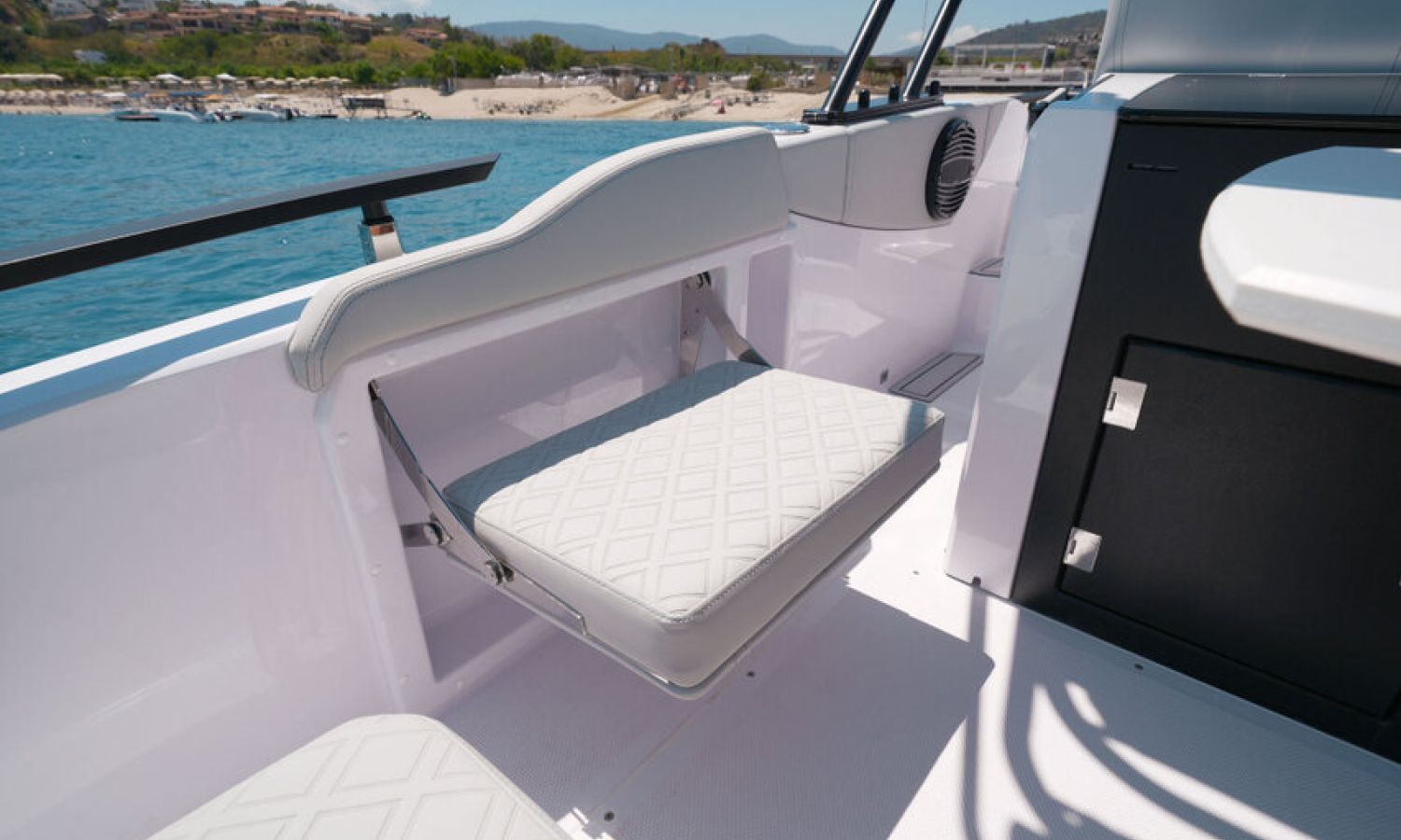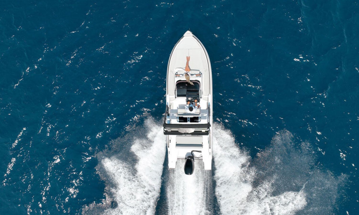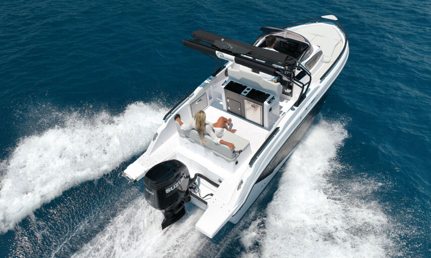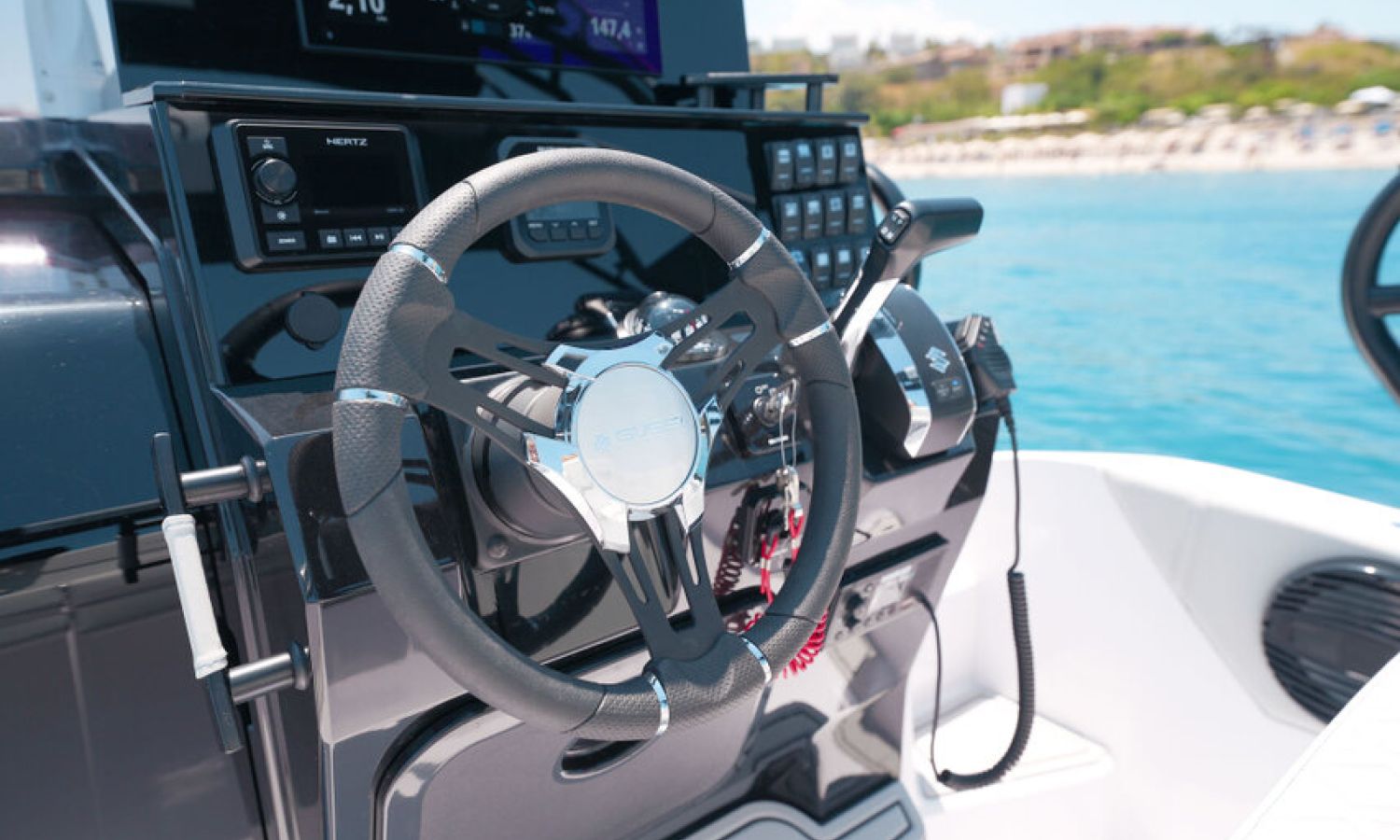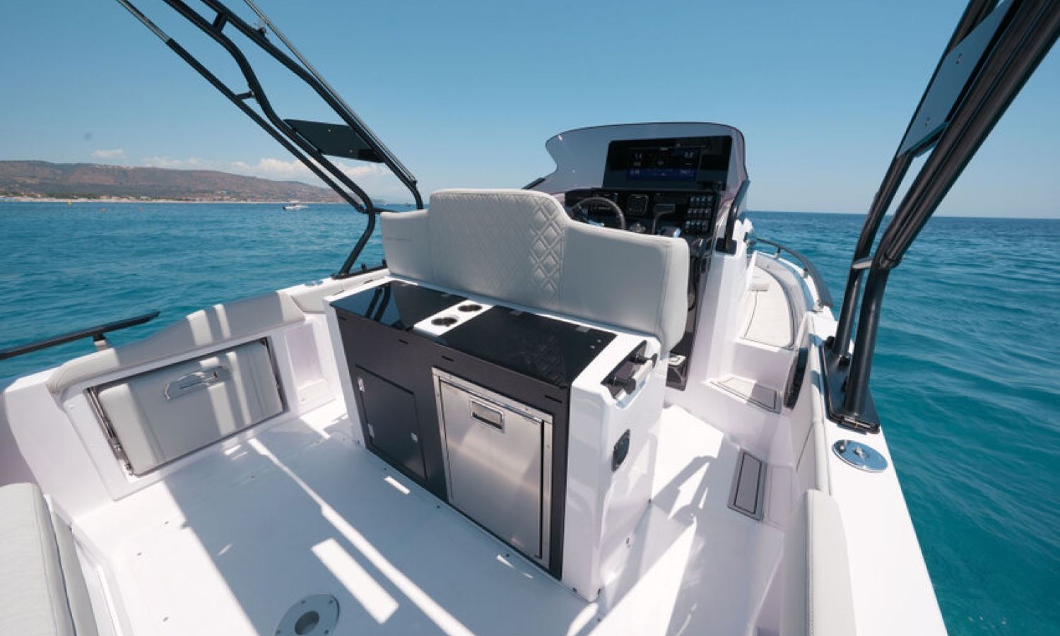 Embarcación de última generación, con la proa recta y múltiples posibilidades de equipamiento.