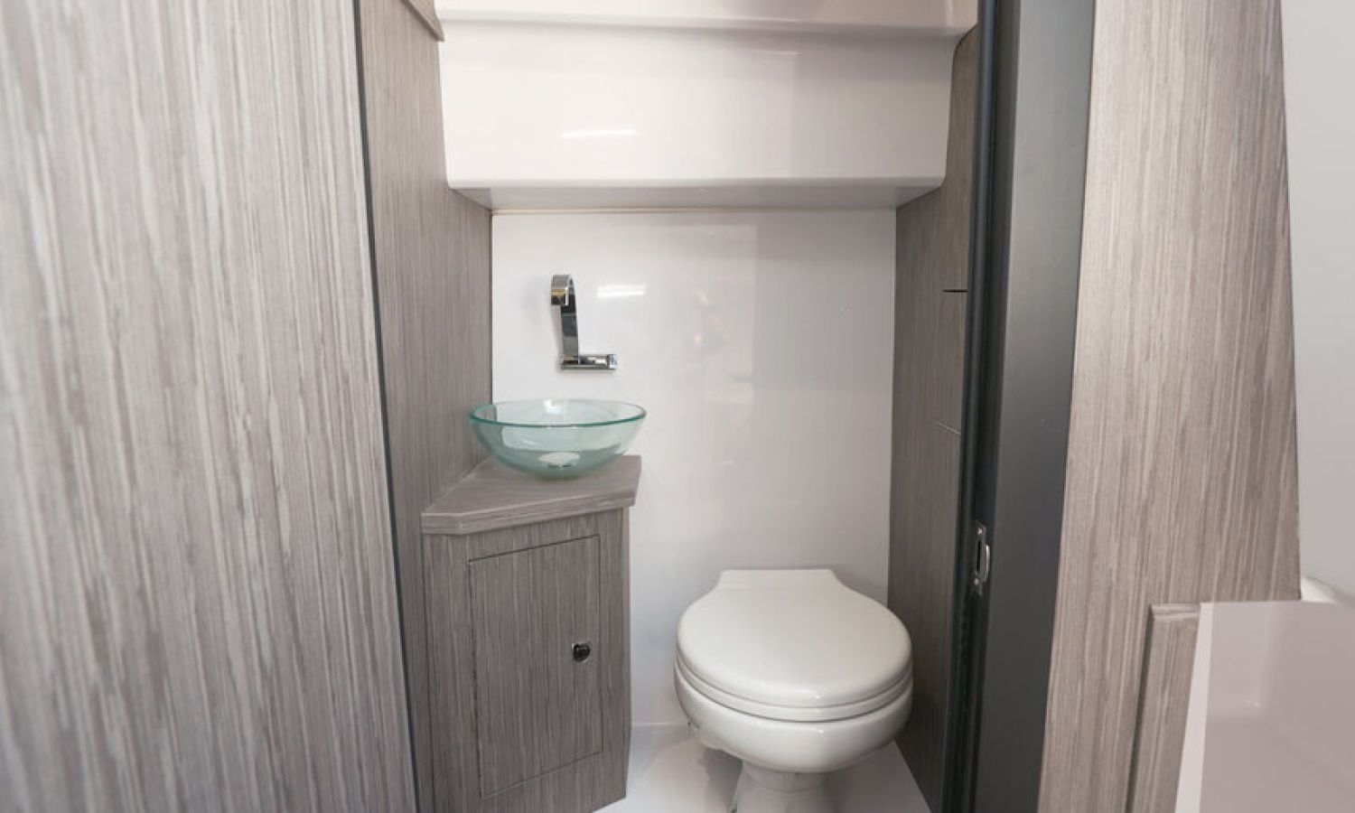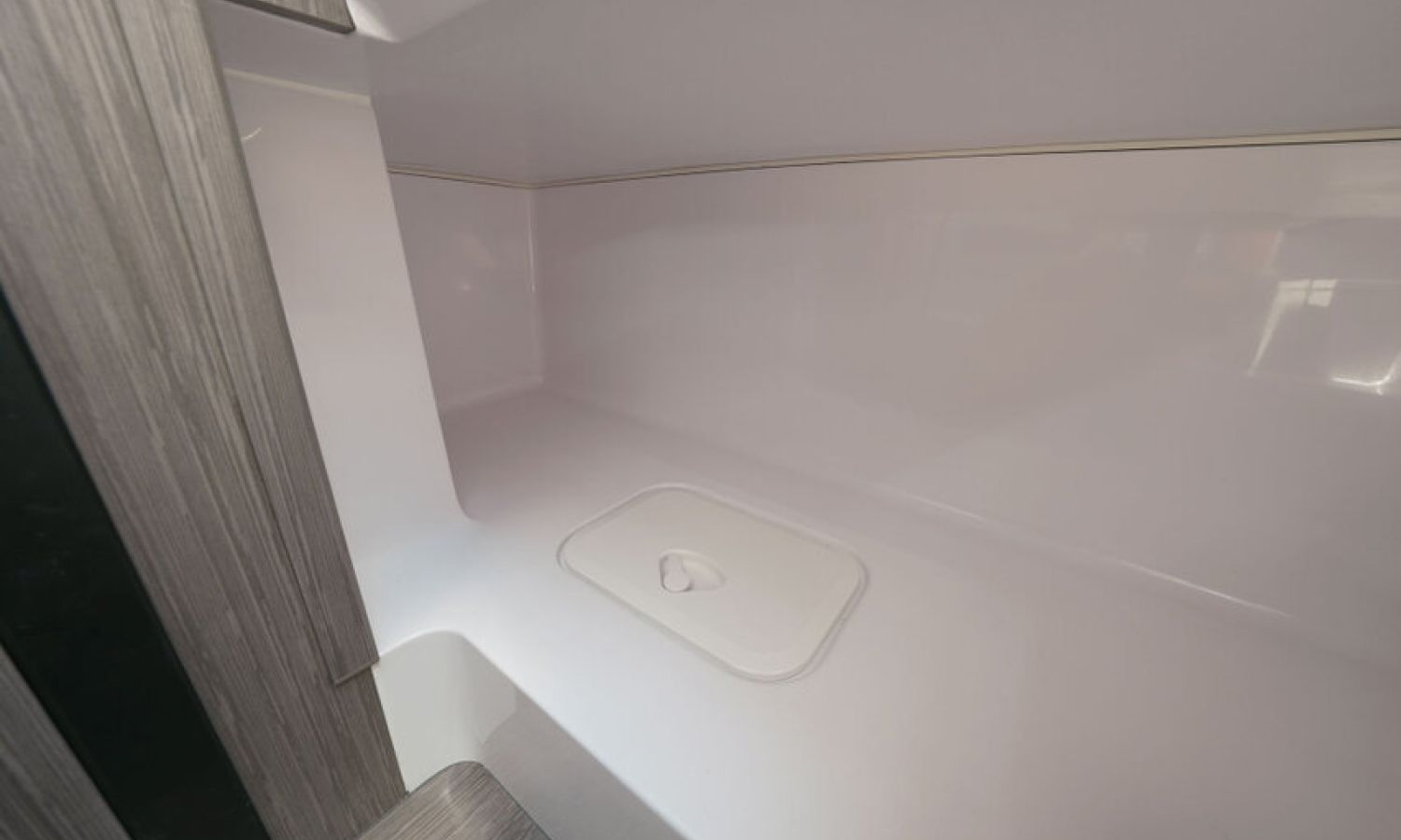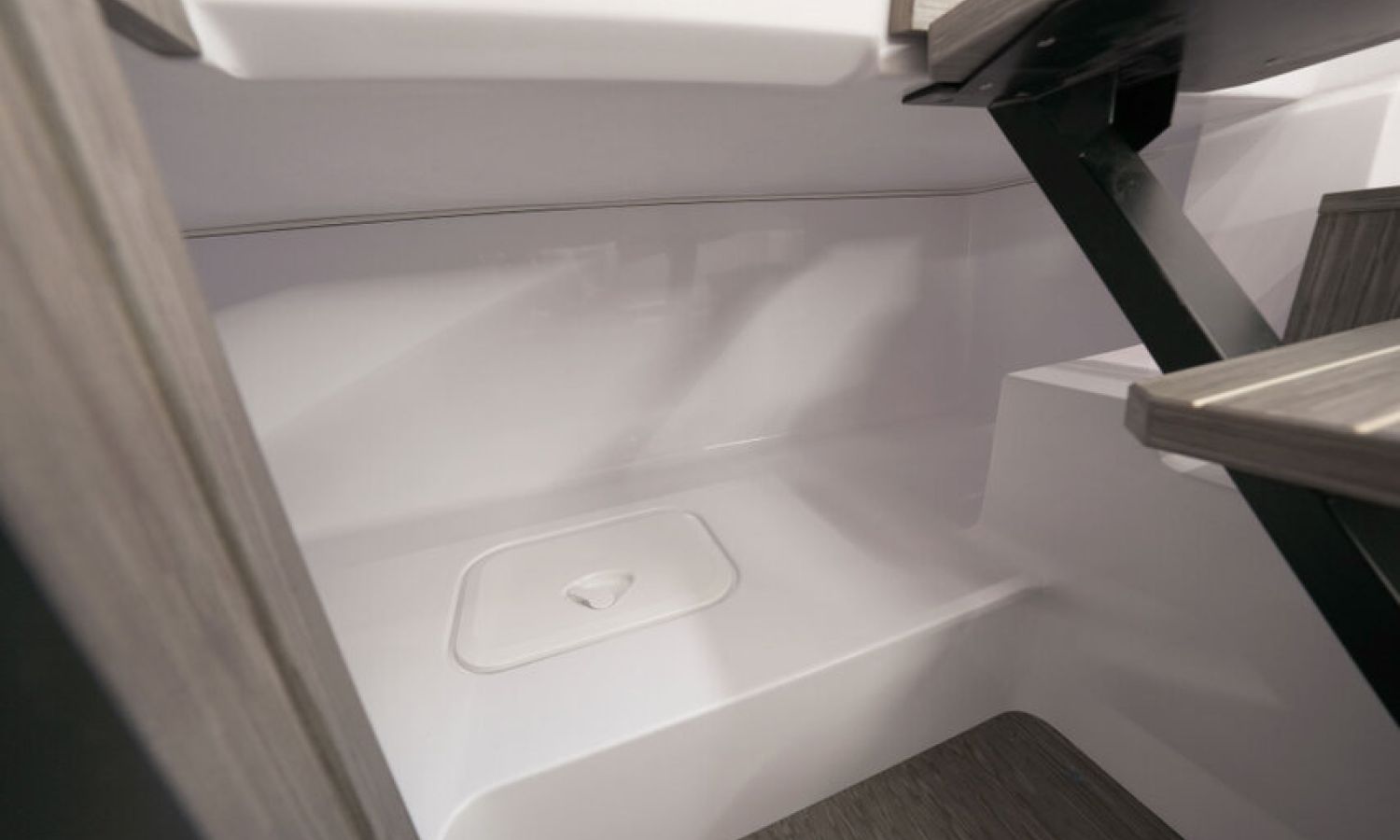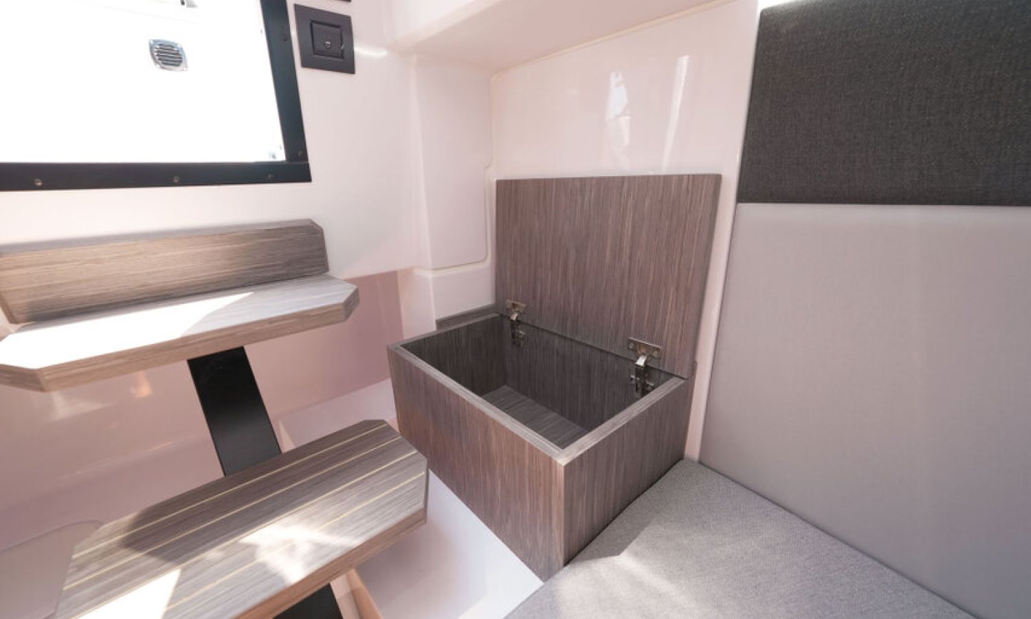 Embarcación de última generación, con la proa recta y múltiples posibilidades de equipamiento.