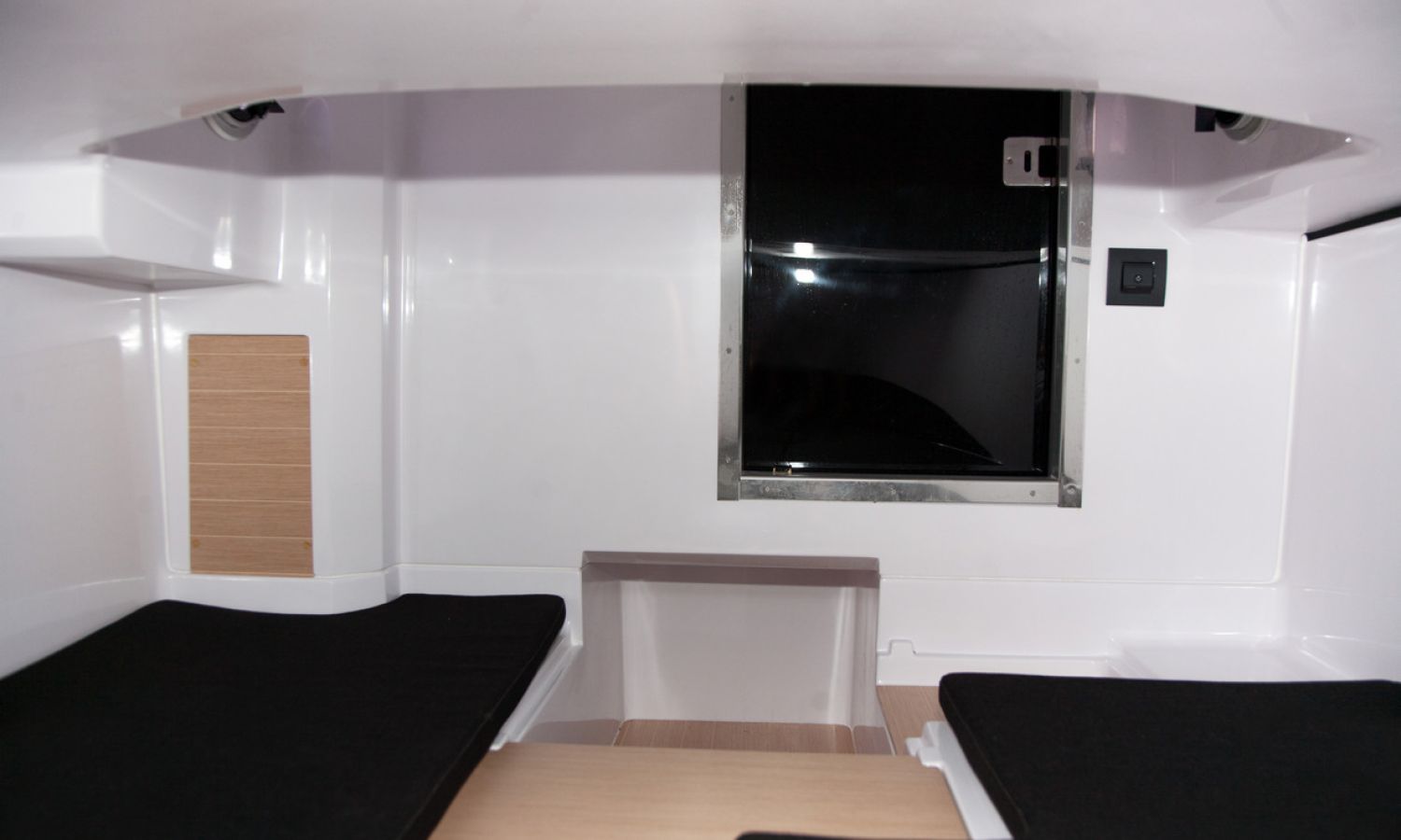 En su versión estándar viene equipada con interiores cabina Luxury, cojines cabina, colchonetas solárium de proa, luces de navegación, banco con respaldo abatible, bomba sentina automática, porta-objetos, casco Redan HIS, casco blanco, escalera de baño, pasamanos en inox, tapicería externa y dirección mecánica. Con los múltiples accesorios opcionales que ofrece este modelo podrá configurar la embarcación de sus sueños.