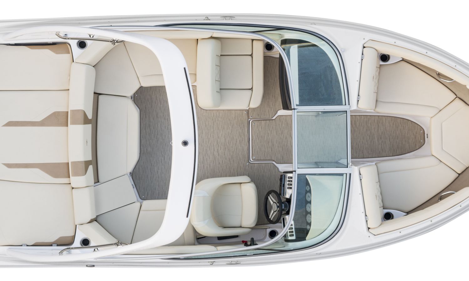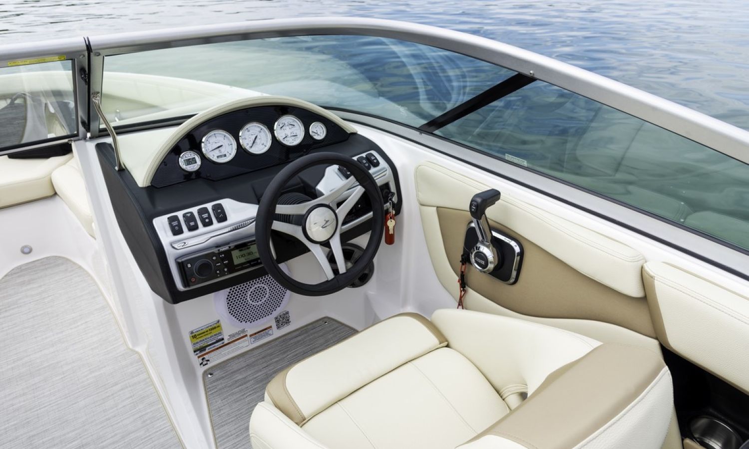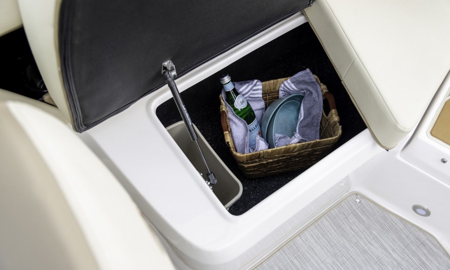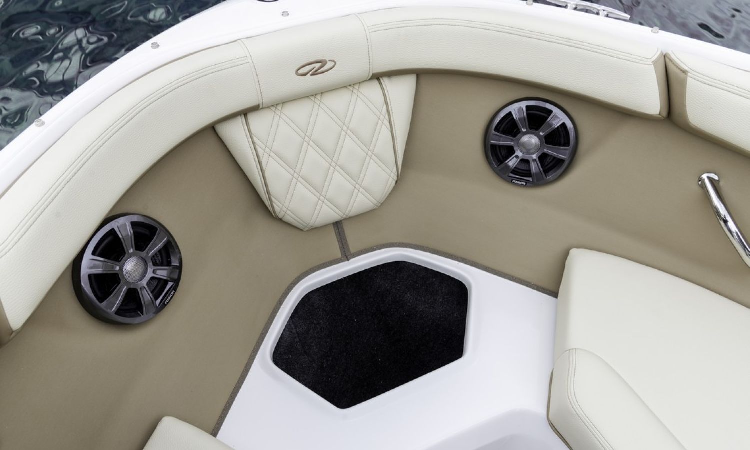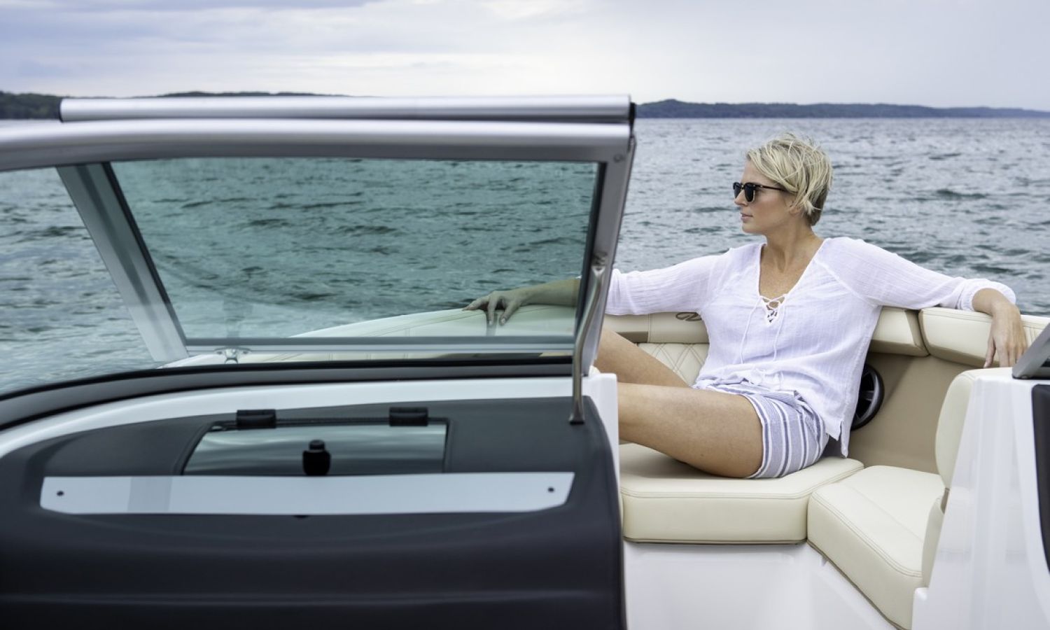 La disposición de los asientos es perfecta para que todos conecten, se puede mirar hacia proa o hacia popa con un movimiento del respaldo. Tapicería artesanal cosida a mano, rica en detalles y confort. En el cuadro de mandos, el vinilo cosido a mano y los metales elegantes, le dan un aspecto lujoso y deportivo.