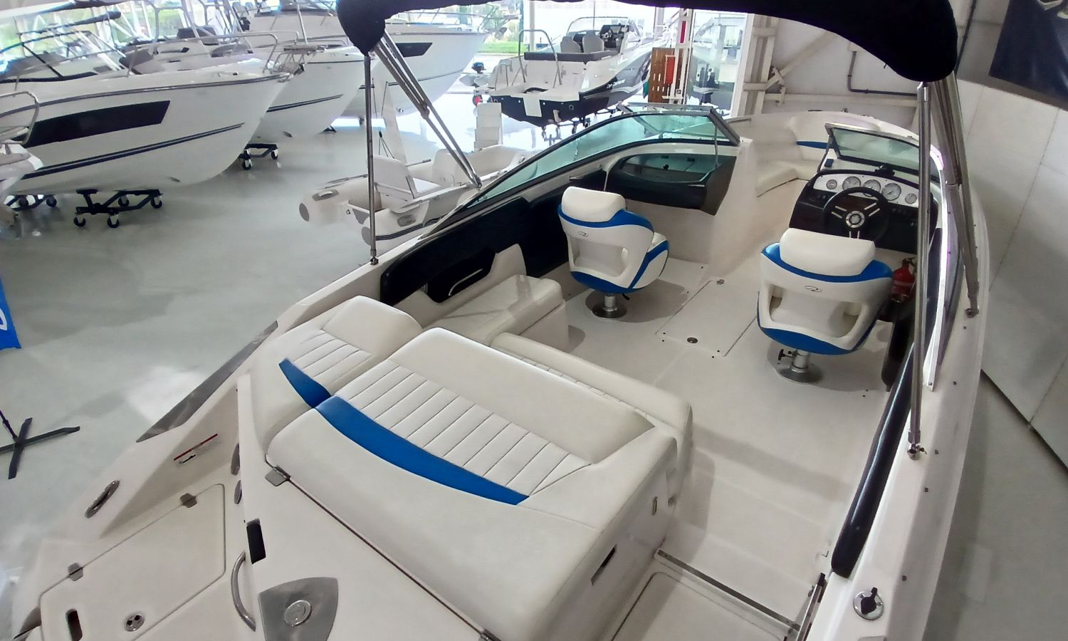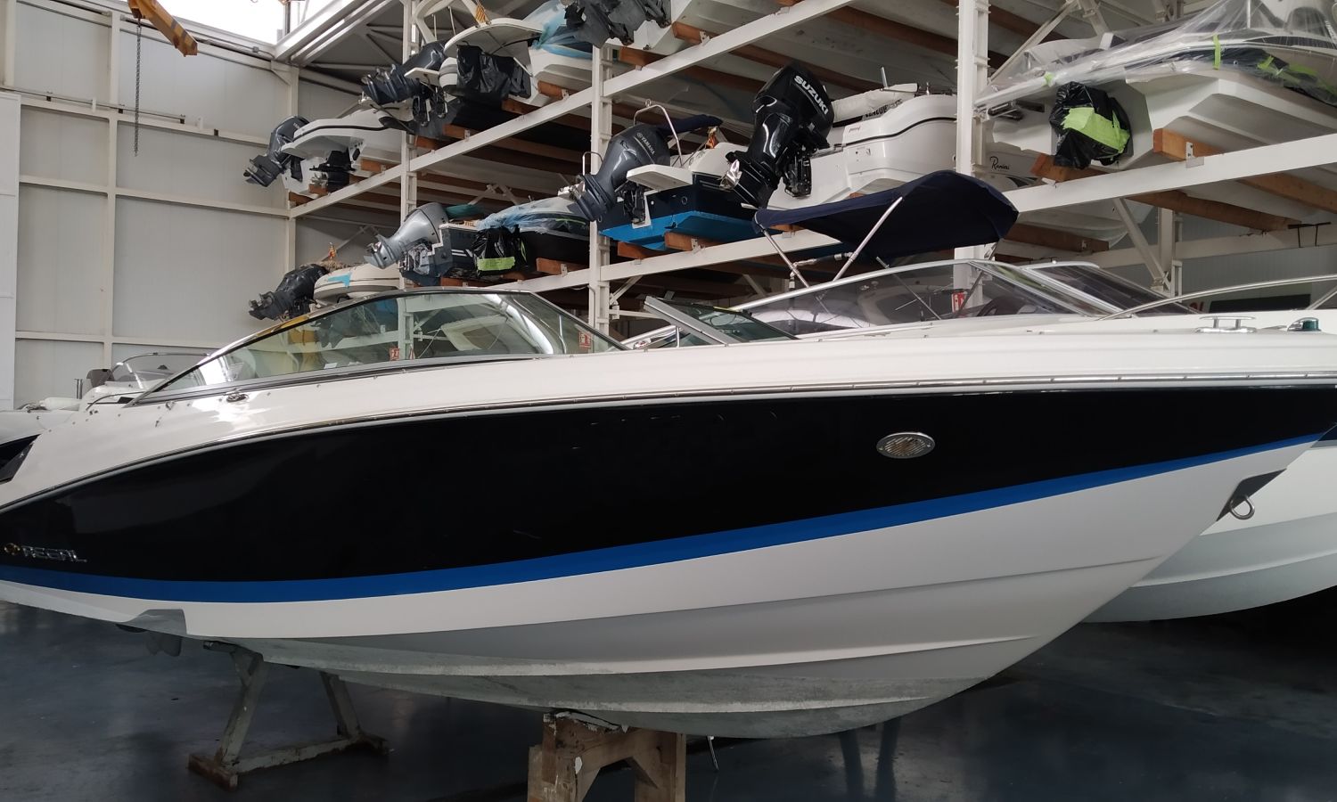 Toldo bimini - Ducha a popa - Plataforma de baño con escalera - Solárium de popa - Solárium de proa - Mesa en la bañera - Equipo audio - Ancla y cadena - Lona de fondeo - Antifouling.