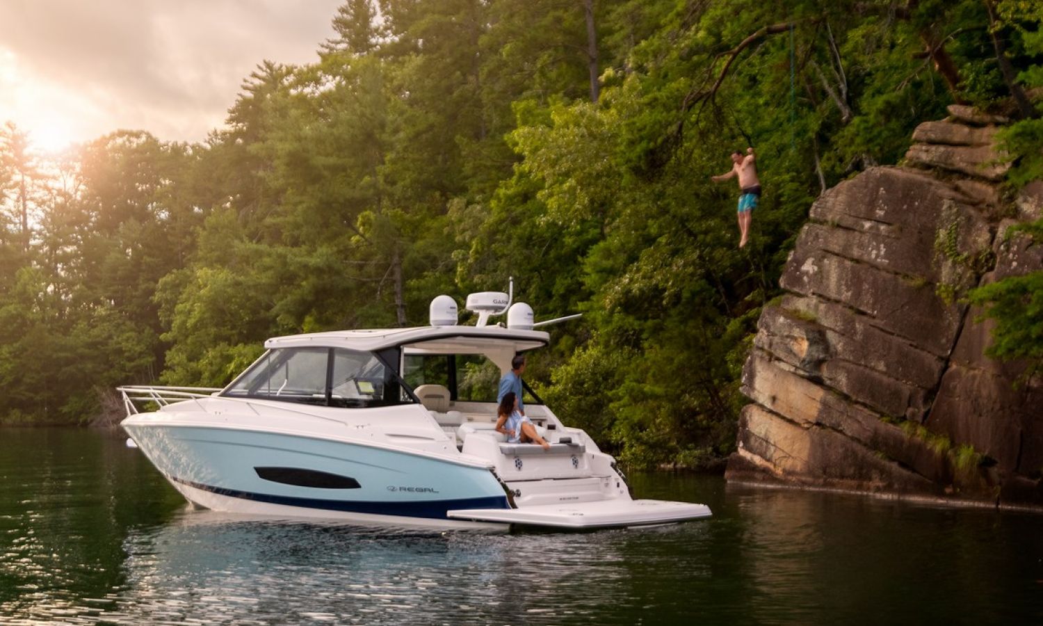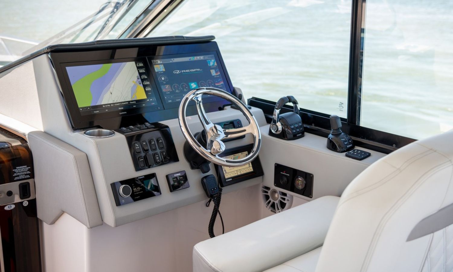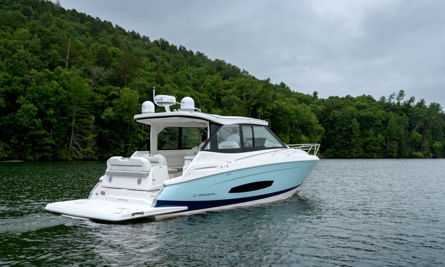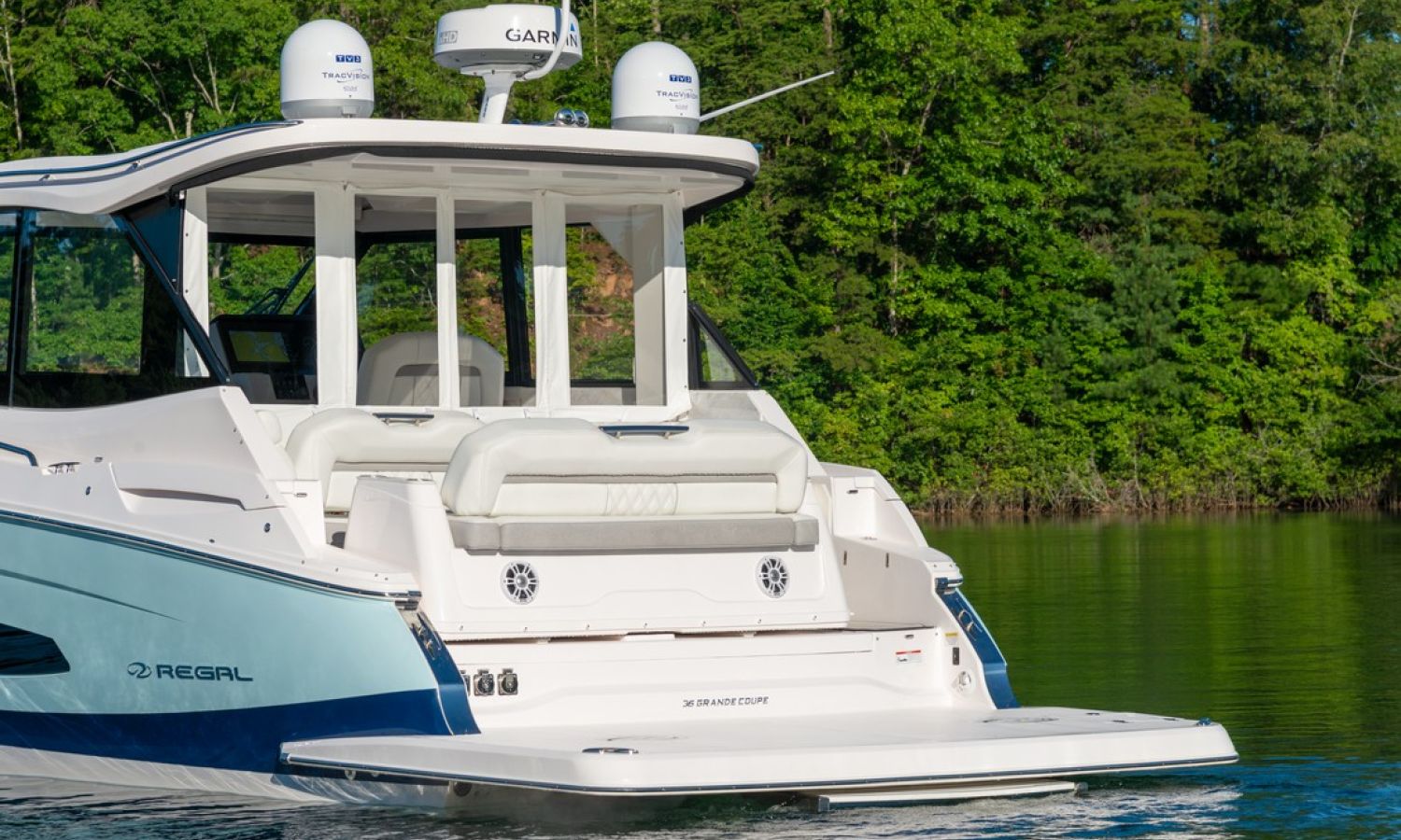 Sumérjase en las maravillas de la Regal 36 Grande Coupe. Adecuada para sus aventuras de fin de semana en el mar y excursiones de un día con su familia e invitados, la Regal 36 seguramente cumplirá y superará todas las expectativas que tenga. Encuentre una innovación excepcional en la proa abierta con asientos multiposición, el mueble-bar en el salón al aire libre y el asiento convertible frente a frente en la cabina de popa. Explore las oportunidades ilimitadas de la Regal 36 Grande Coupe.