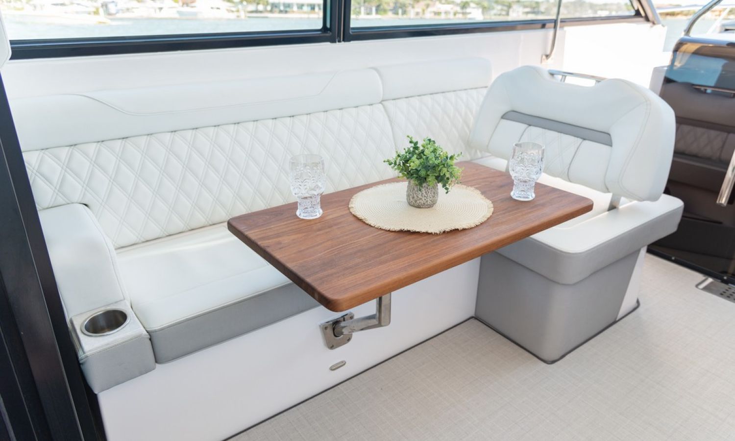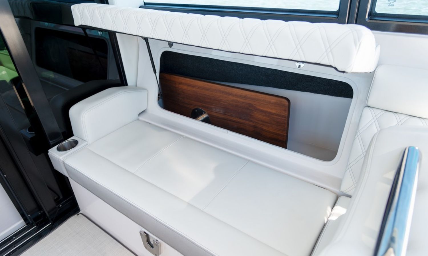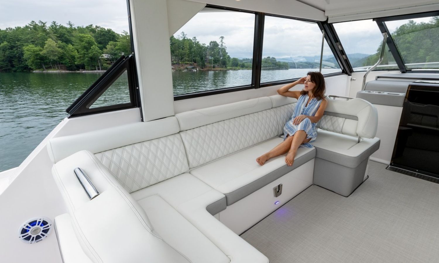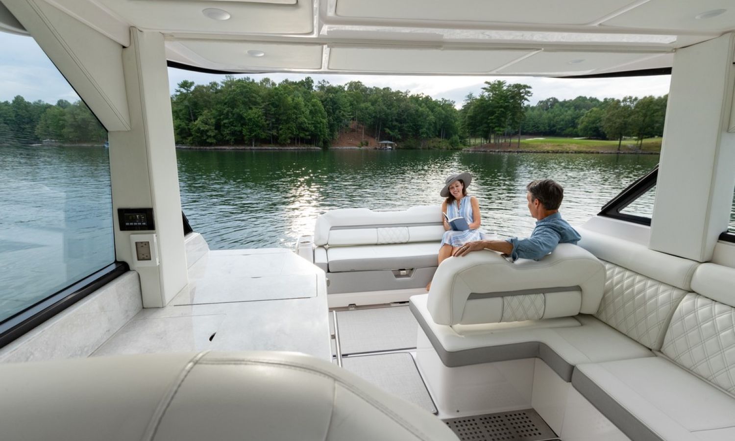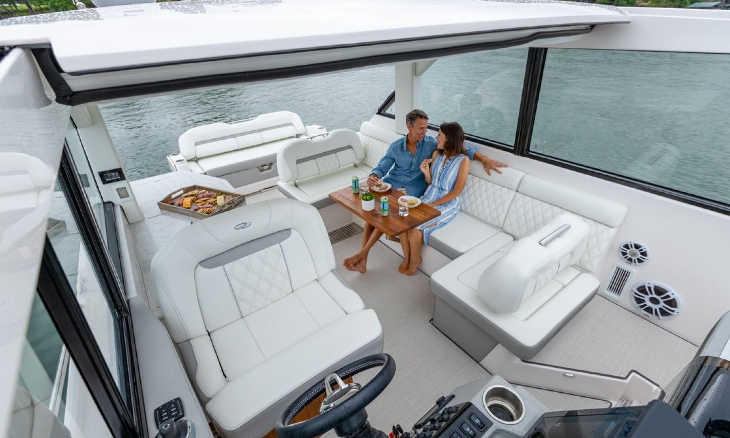 Sumérjase en las maravillas de la Regal 36 Grande Coupe. Adecuada para sus aventuras de fin de semana en el mar y excursiones de un día con su familia e invitados, la Regal 36 seguramente cumplirá y superará todas las expectativas que tenga. Encuentre una innovación excepcional en la proa abierta con asientos multiposición, el mueble-bar en el salón al aire libre y el asiento convertible frente a frente en la cabina de popa. Explore las oportunidades ilimitadas de la Regal 36 Grande Coupe.