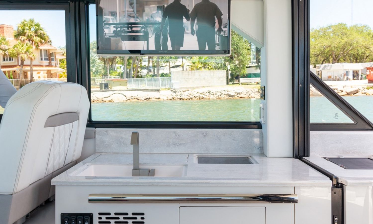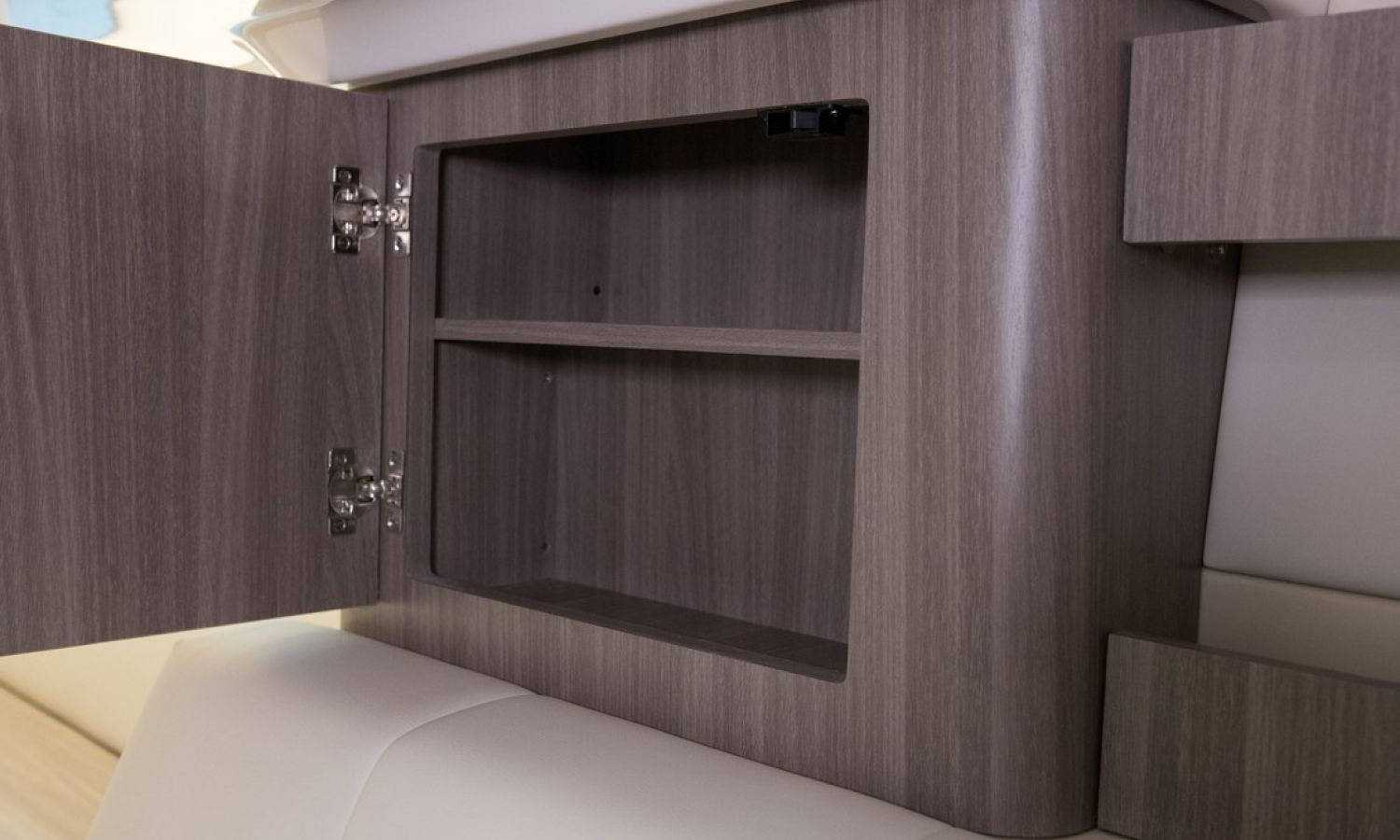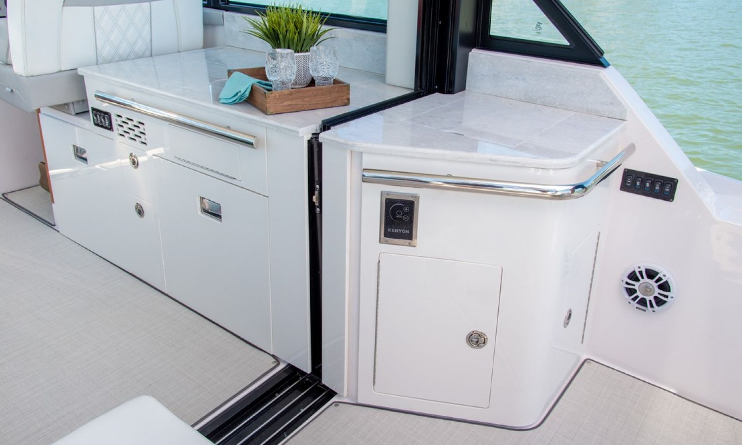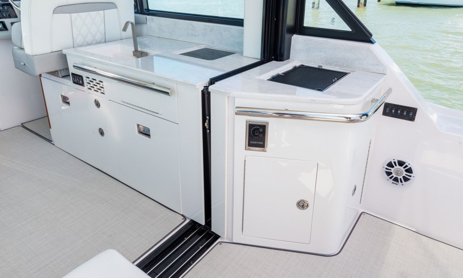 Sumérjase en las maravillas de la Regal 36 Grande Coupe. Adecuada para sus aventuras de fin de semana en el mar y excursiones de un día con su familia e invitados, la Regal 36 seguramente cumplirá y superará todas las expectativas que tenga. Encuentre una innovación excepcional en la proa abierta con asientos multiposición, el mueble-bar en el salón al aire libre y el asiento convertible frente a frente en la cabina de popa. Explore las oportunidades ilimitadas de la Regal 36 Grande Coupe.