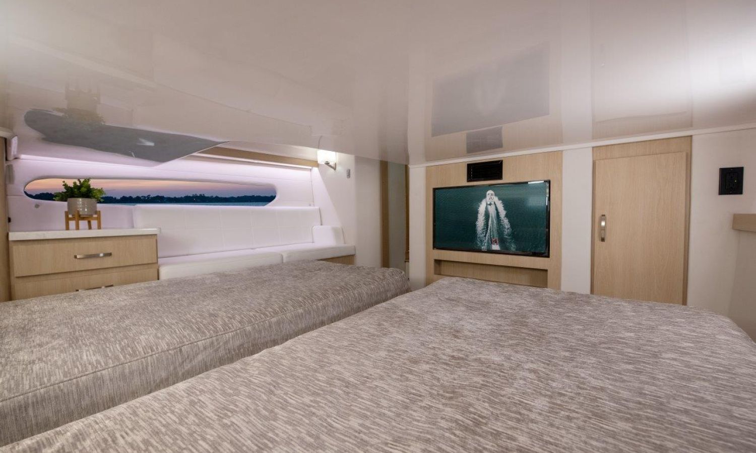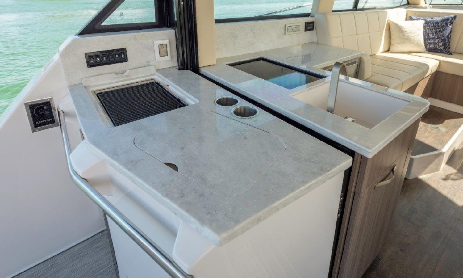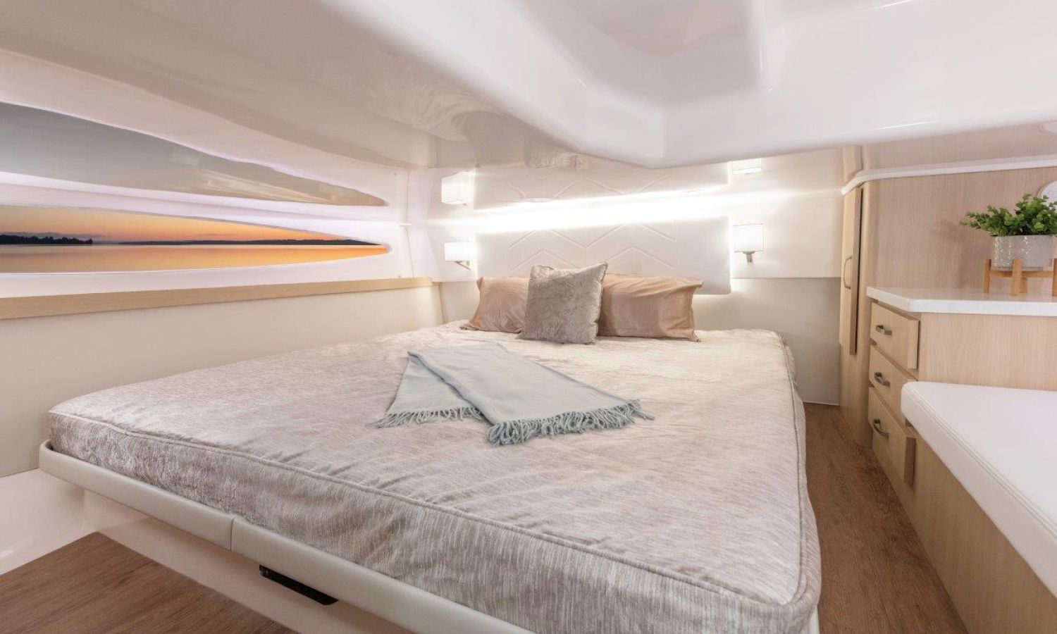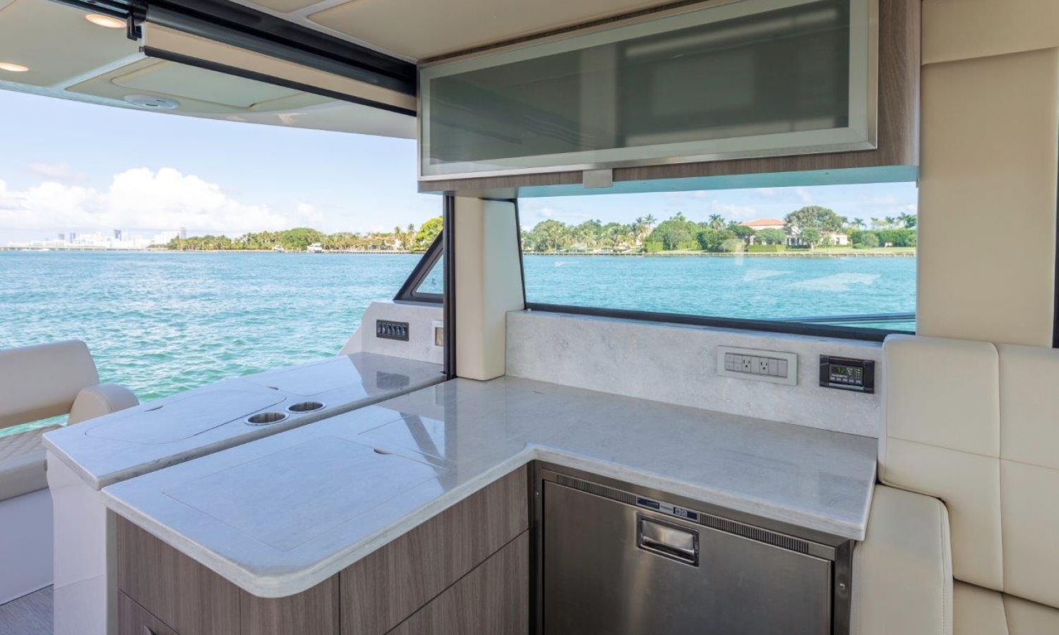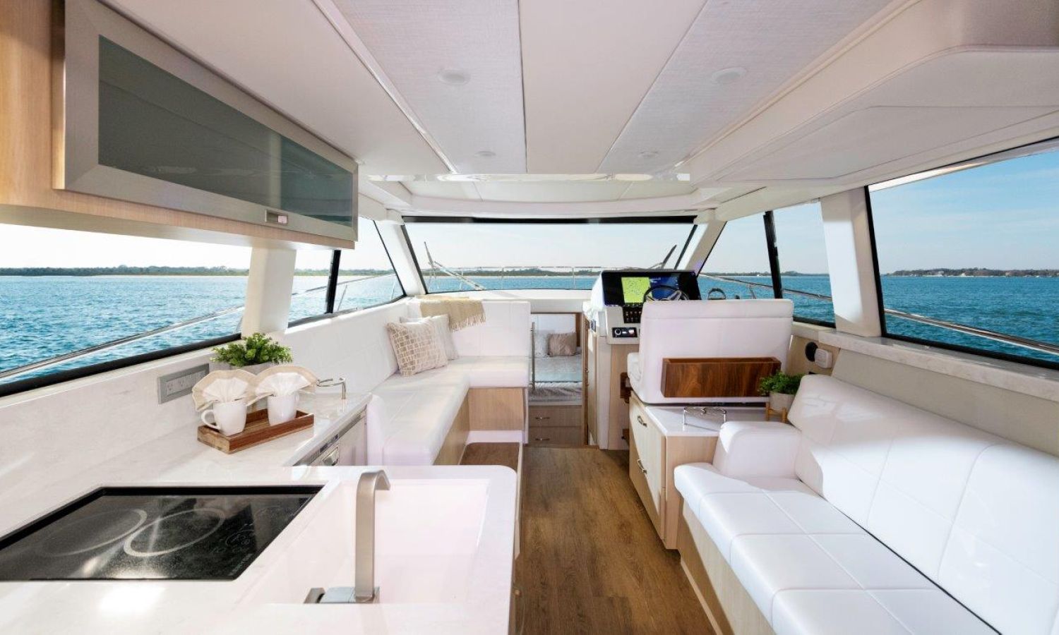 Mire a su alrededor sin obstáculos y sienta el viento en la cara, todo mientras tiene el control completo del sistema desde un punto de vista elevado. El Regal 38 Fly presenta versatilidad en un nivel superior y lujo con mayor comodidad.