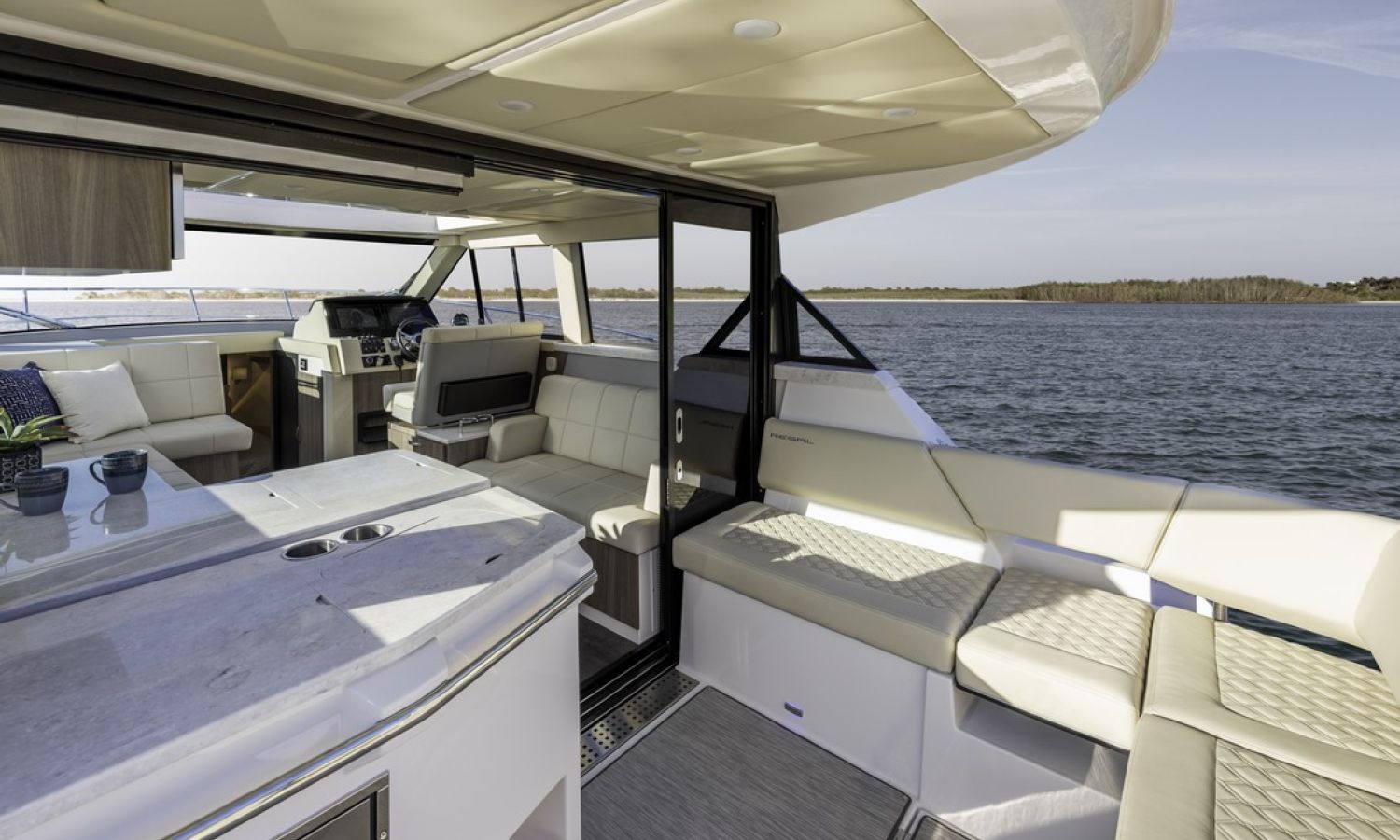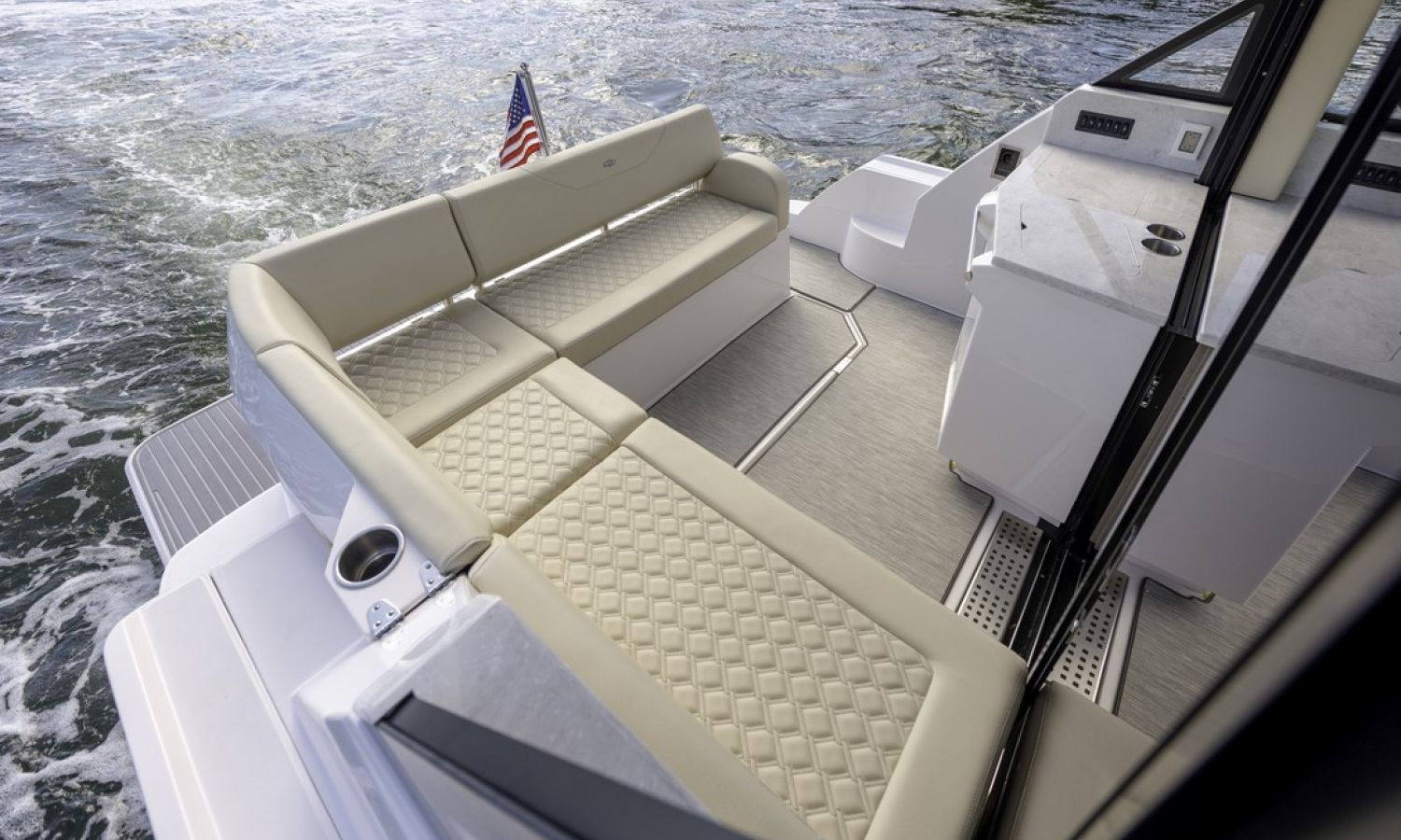 La Regal 38 Grande Coupe no tiene similar en su estilo lujoso, tamaño y comodidades exclusivas. Con entretenimiento y relajación sin fin, ya sea bajo el sol o en el salón, la Regal 38 Grande Coupe establece un nuevo estándar.