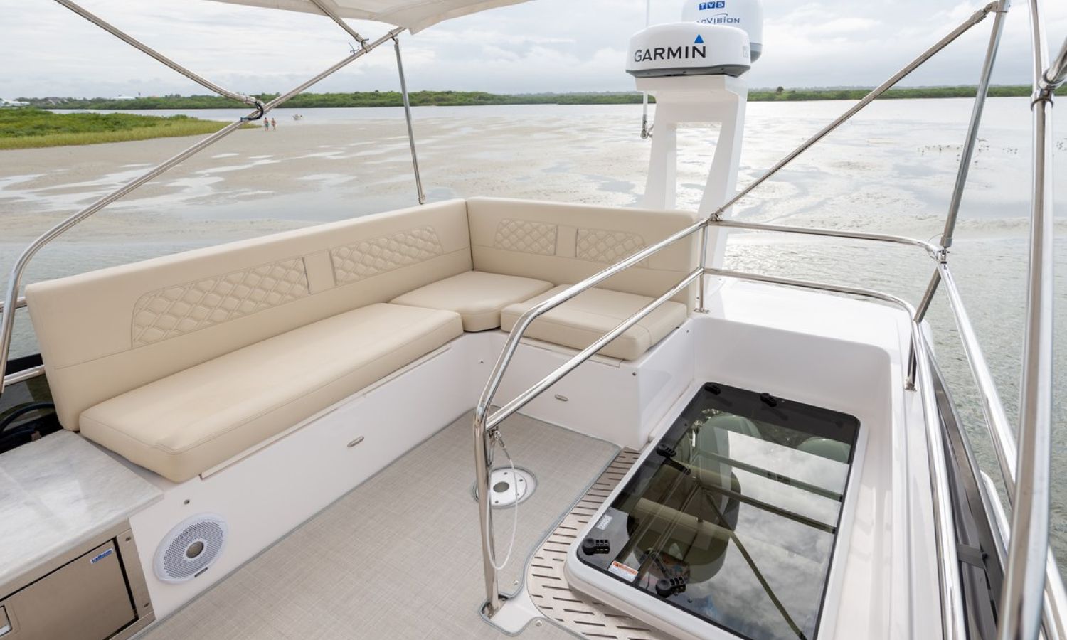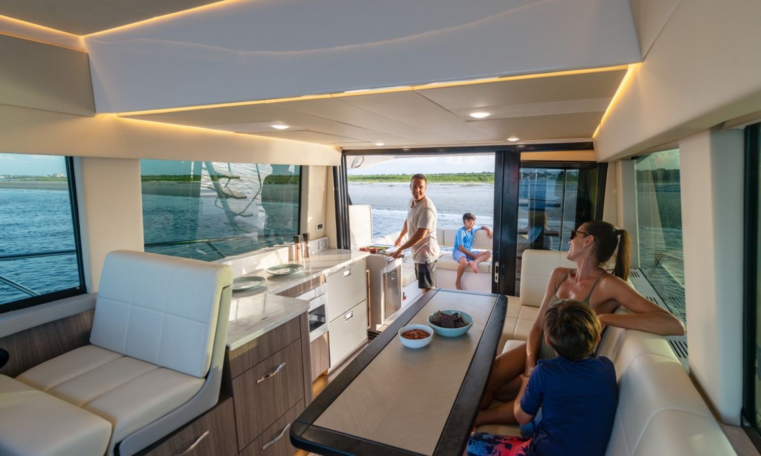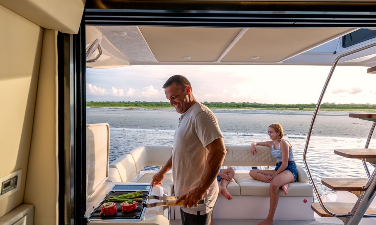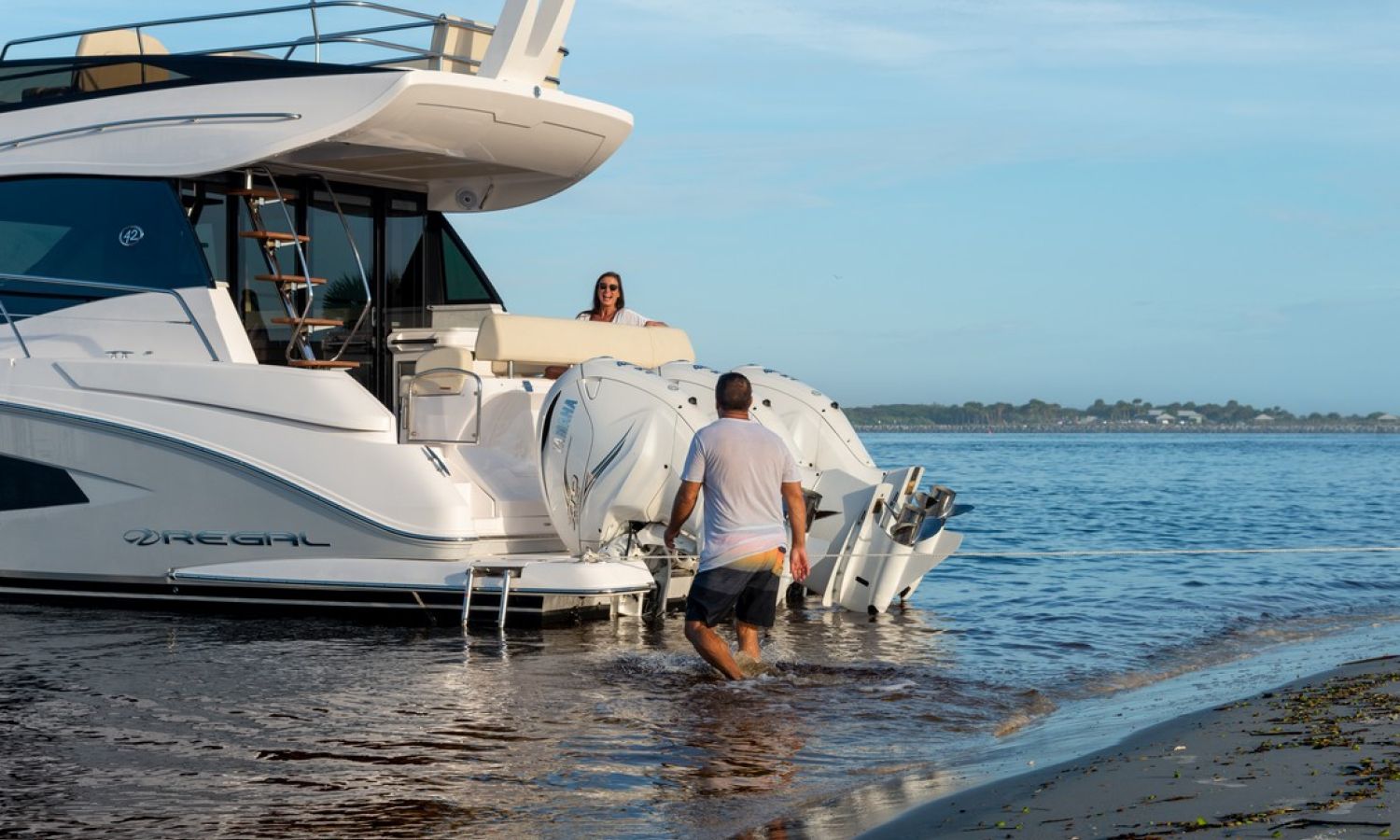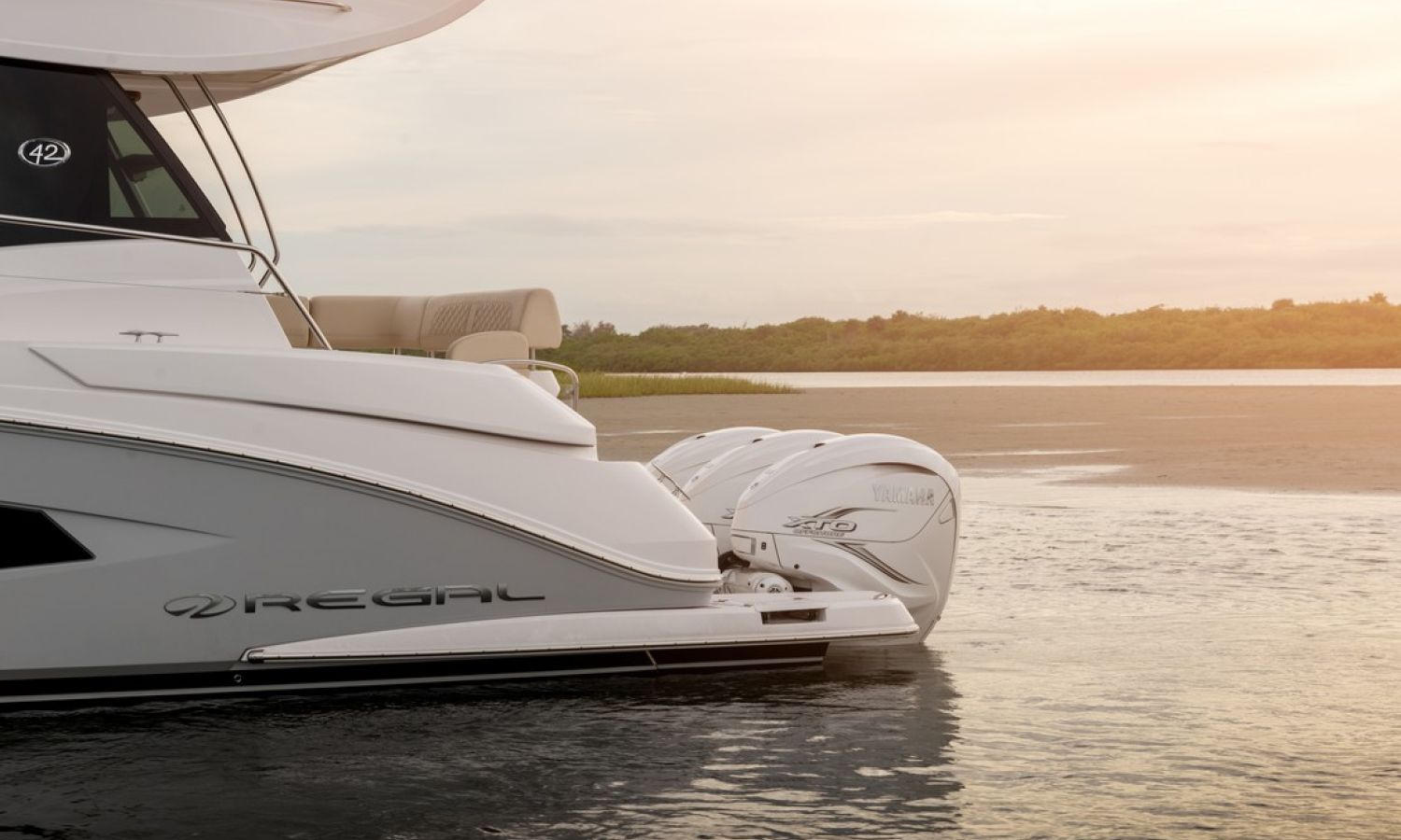 El Regal 42 FXO es realmente un yate deportivo con motor fueraborda único en su clase. El increíble rendimiento, la versatilidad de los motores fueraborda y el lujo de primera se unen para brindar entretenimiento y relajación sin fin en destinos increíbles. Gracias a la incorporación de la potencia externa, la 42 FXO se convierte en el barco definitivo.