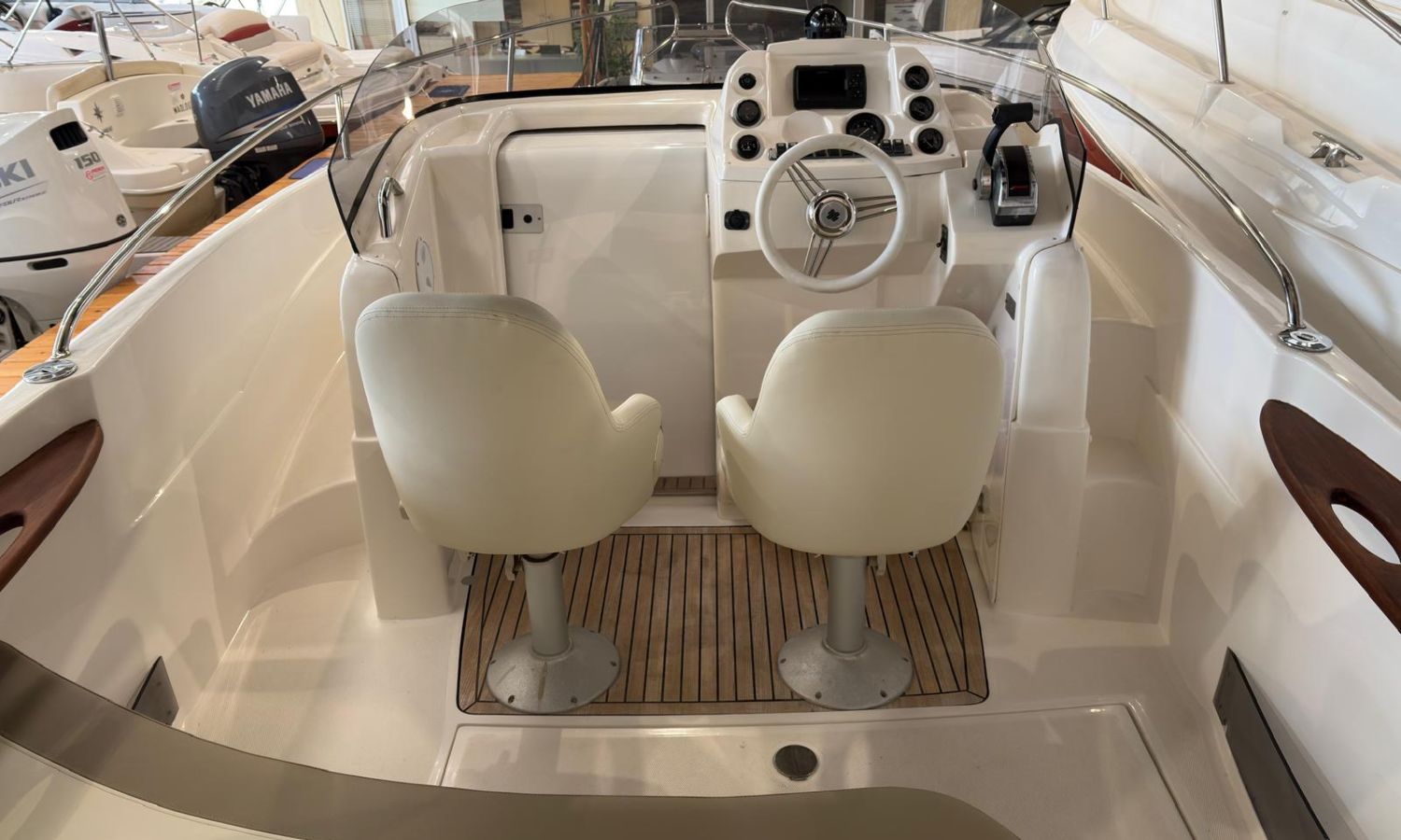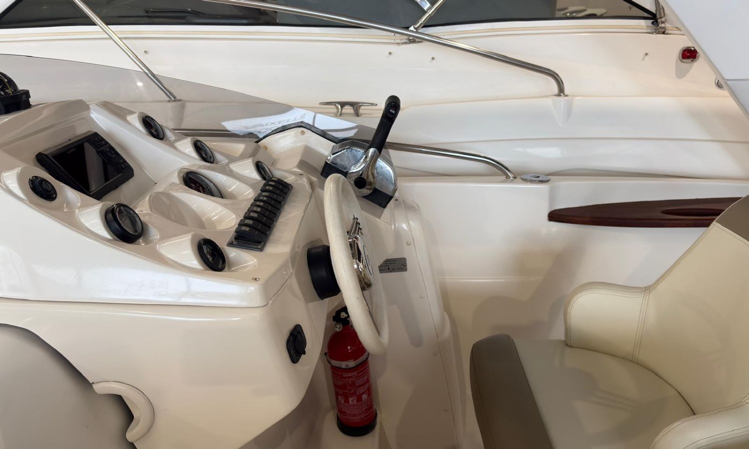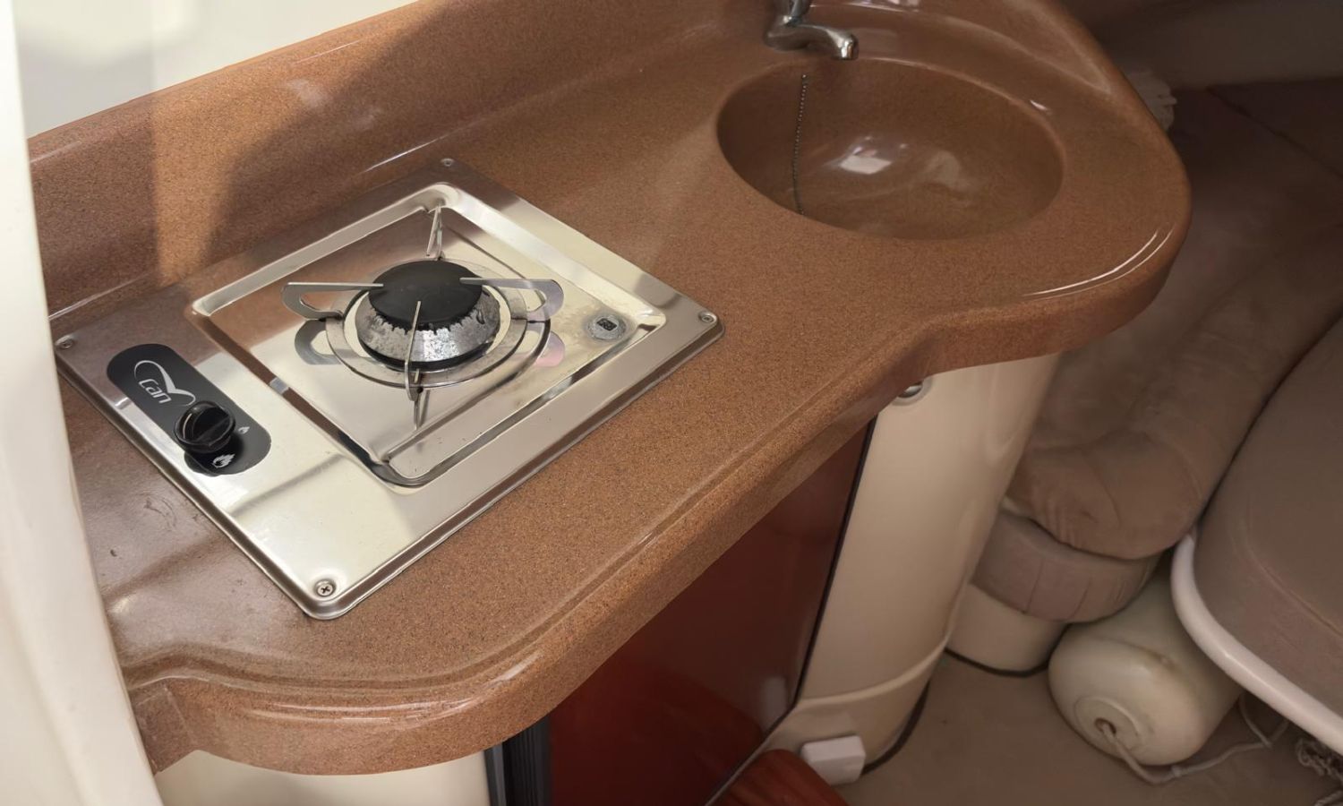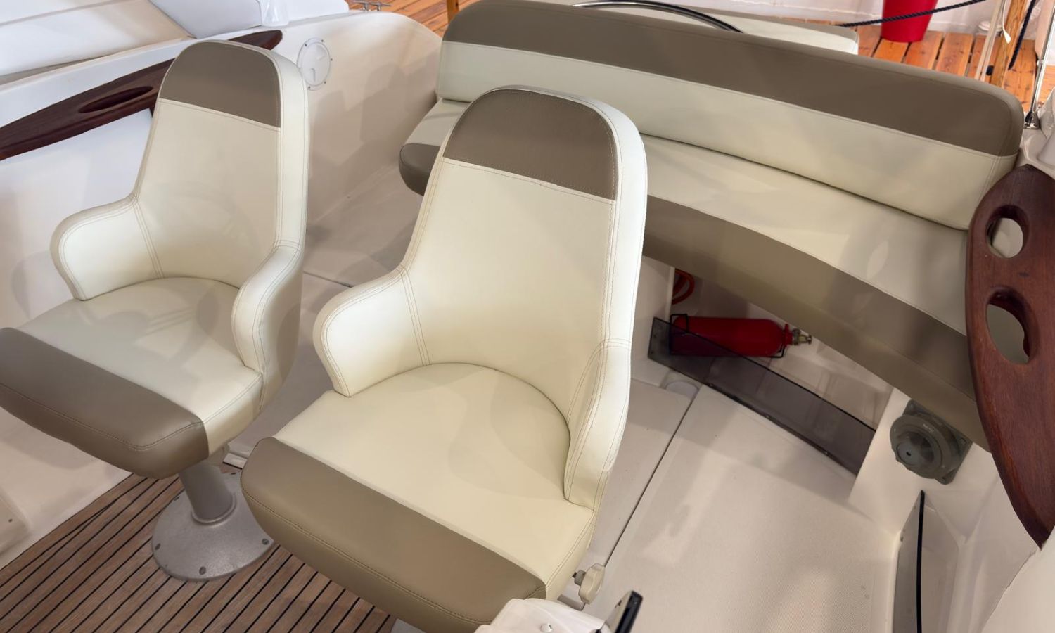 Toldo parasol - Solárium de proa - Plataforma de baño con escalera - Ducha en popa - Gps/Sonda - Nevera 12 v. - Fregadero - Cocina de gas - Wc marino - Molinete de ancla eléctrico - Antifouling.Descripción embarcación