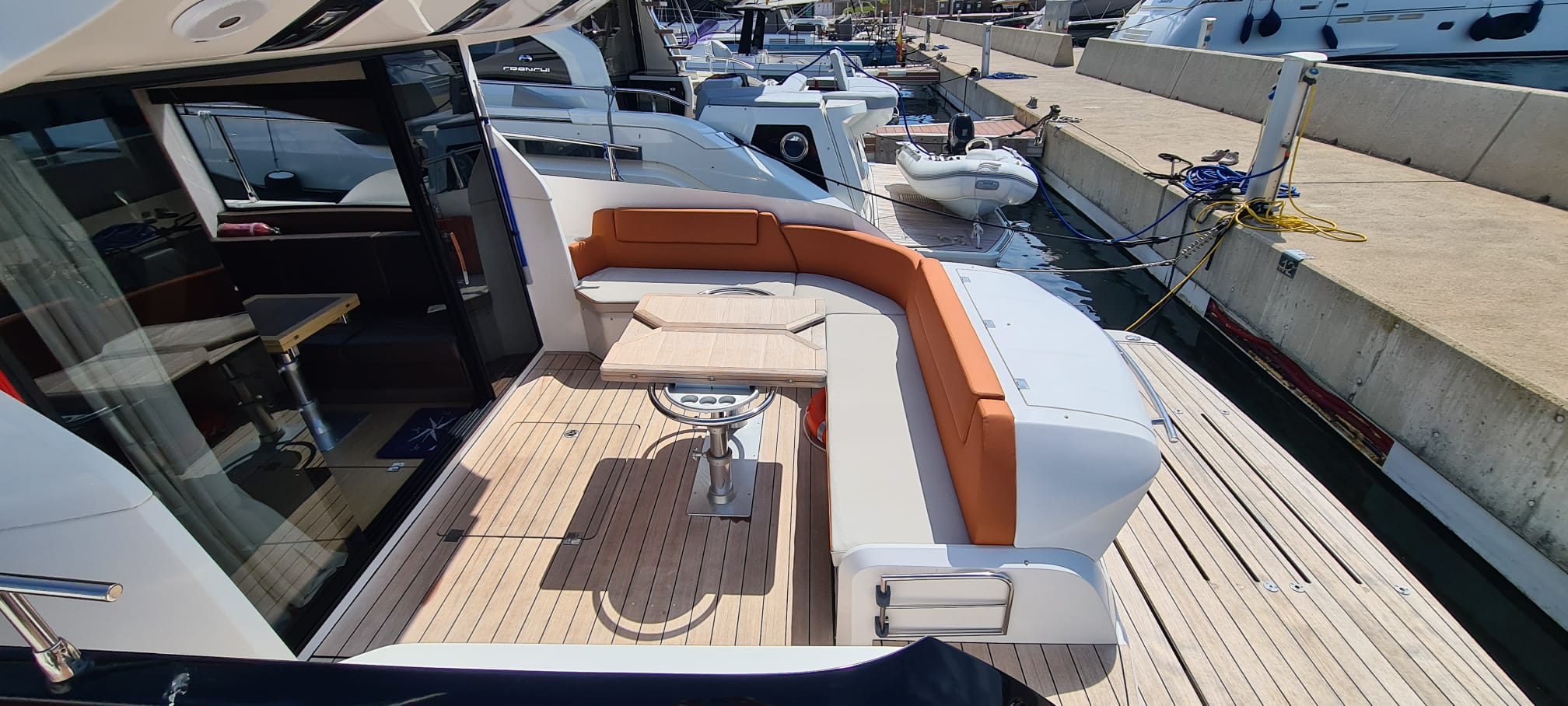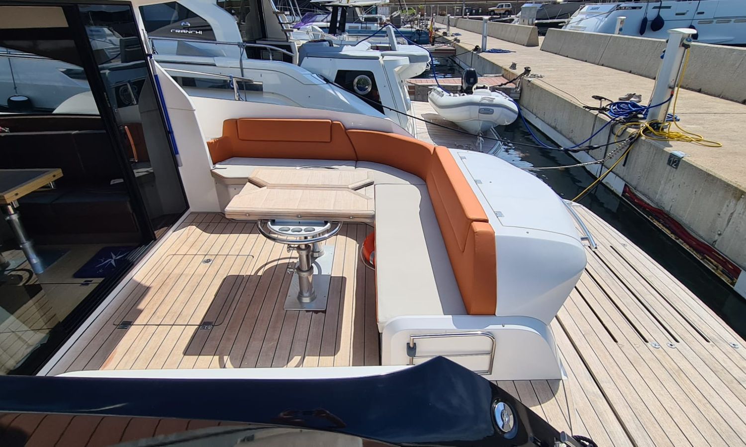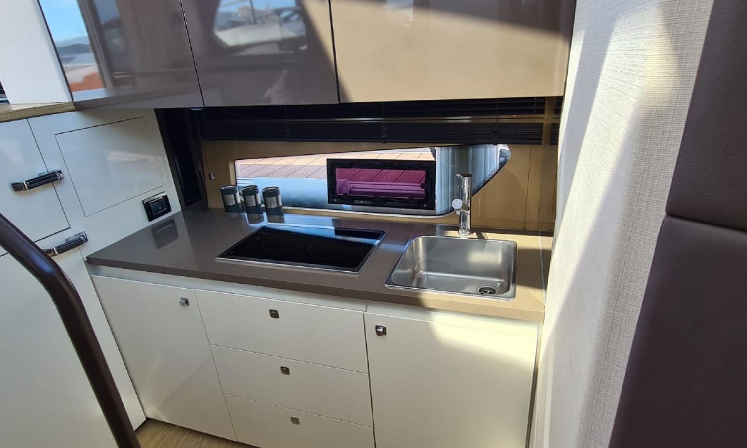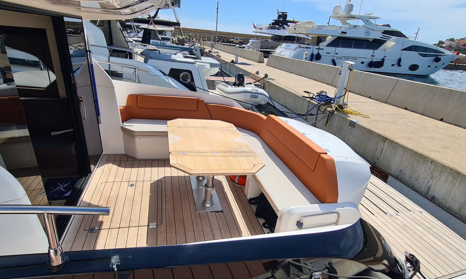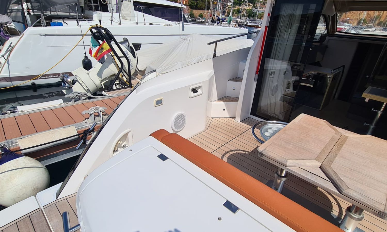 Generador - Aire acondicionado - Piloto automático - GPS Plotter Raymarine 12" - Molinete eléctrico - Cuenta metros cadena - Equipo audio interior y exterior - Joystick IPS - Hélice de proa - Flaps Benetti - Plataforma hidráulica - Bimini eléctrico en bañera - Solárium en proa y popa - Fregadero y grill en plataforma de baño - Hard-Top eléctrico - Toma agua dulce - Cocina completa con vitrocerámica - Microondas - Nevera - Congelador - Campana extractora - WC eléctricos con depósitos aguas negras - Nevera adicional en salón -Posicionamiento dinámico DPS Volvo.Descripción embarcación