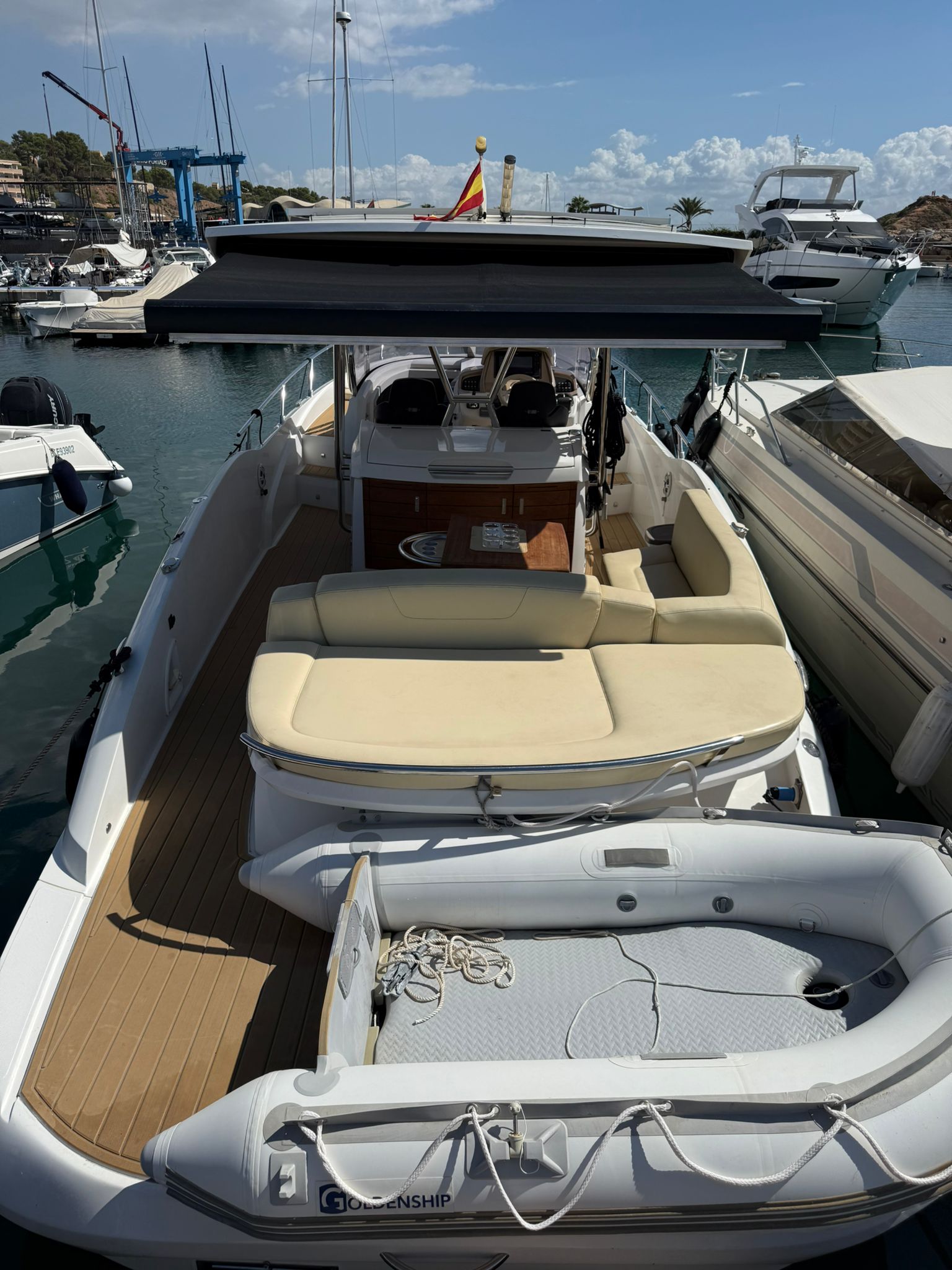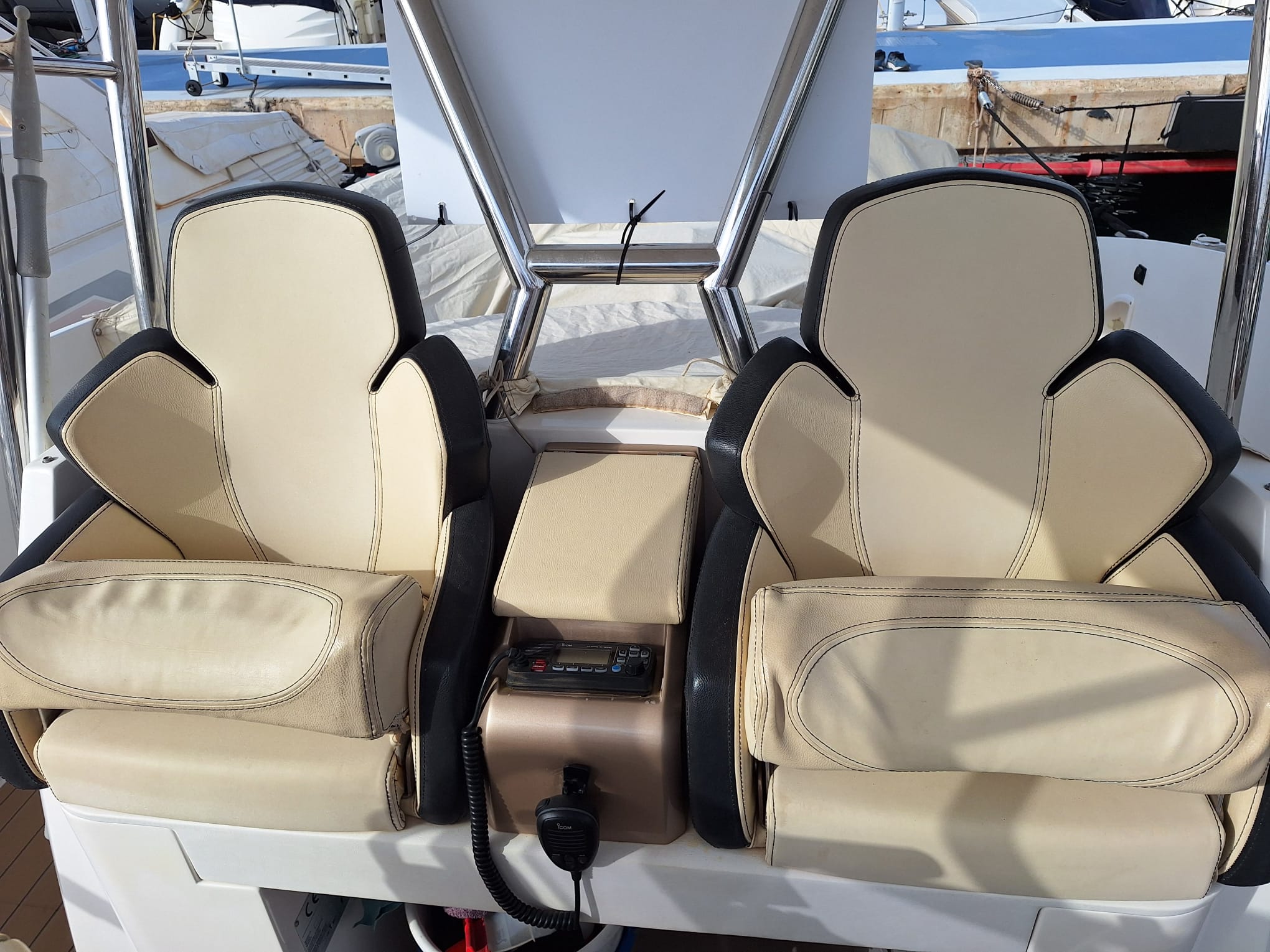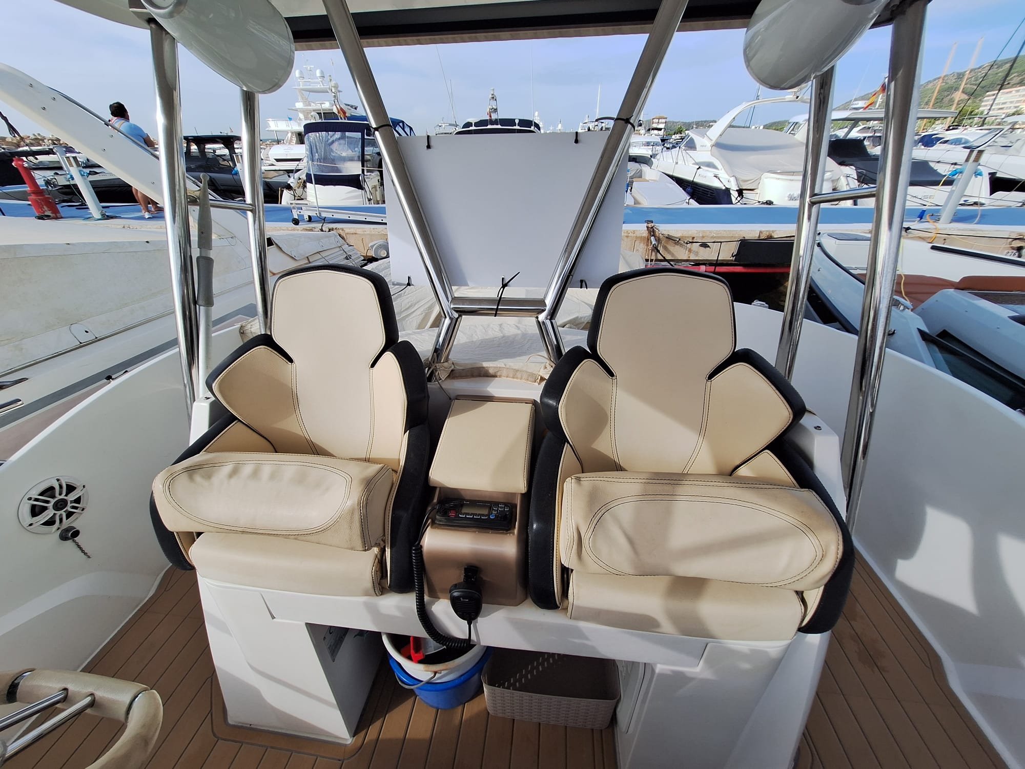 Toldo hayma proa - Molinete de ancla eléctrico - Bomba de agua salada - Joystick - 2 neveras - Ducha exterior - Cocina - Alfombras - Teka sea deck - Tapiceria exterior/interior - Electrónica Simrad 12' - Gps/Plotter/Sonda - Vhf - Piloto automático - Equipo de audio Pionner - Toldo eléctrico popa nuevo 2025 - Cargador de baterías 220 v. con toma de puerto - Placas solares - 4 baterías - Depósito de agua caliente - Antifouling.Descripción embarcación