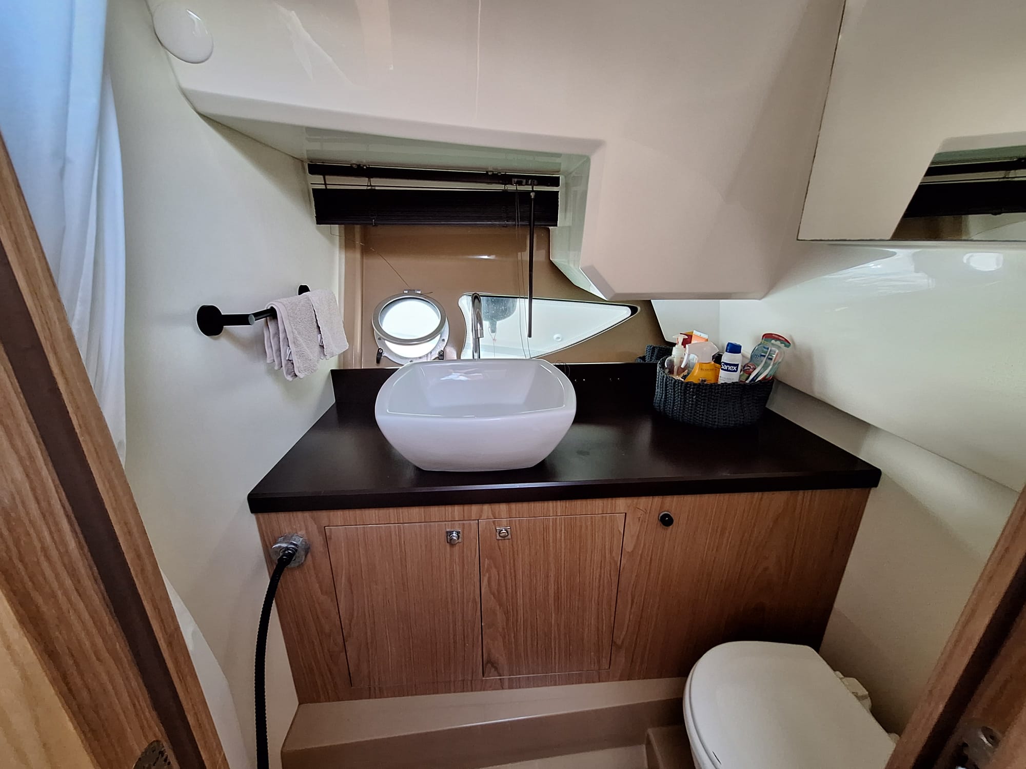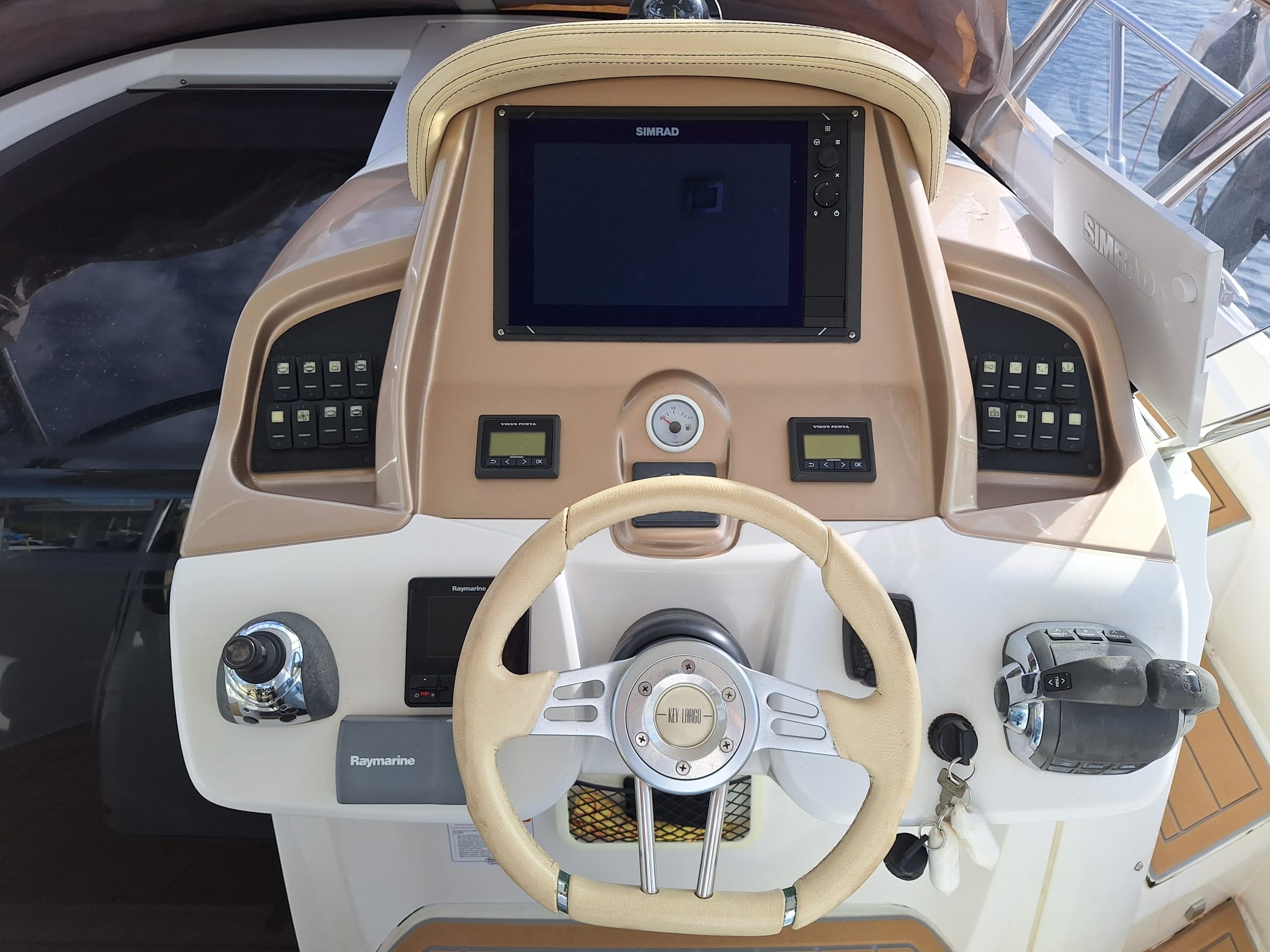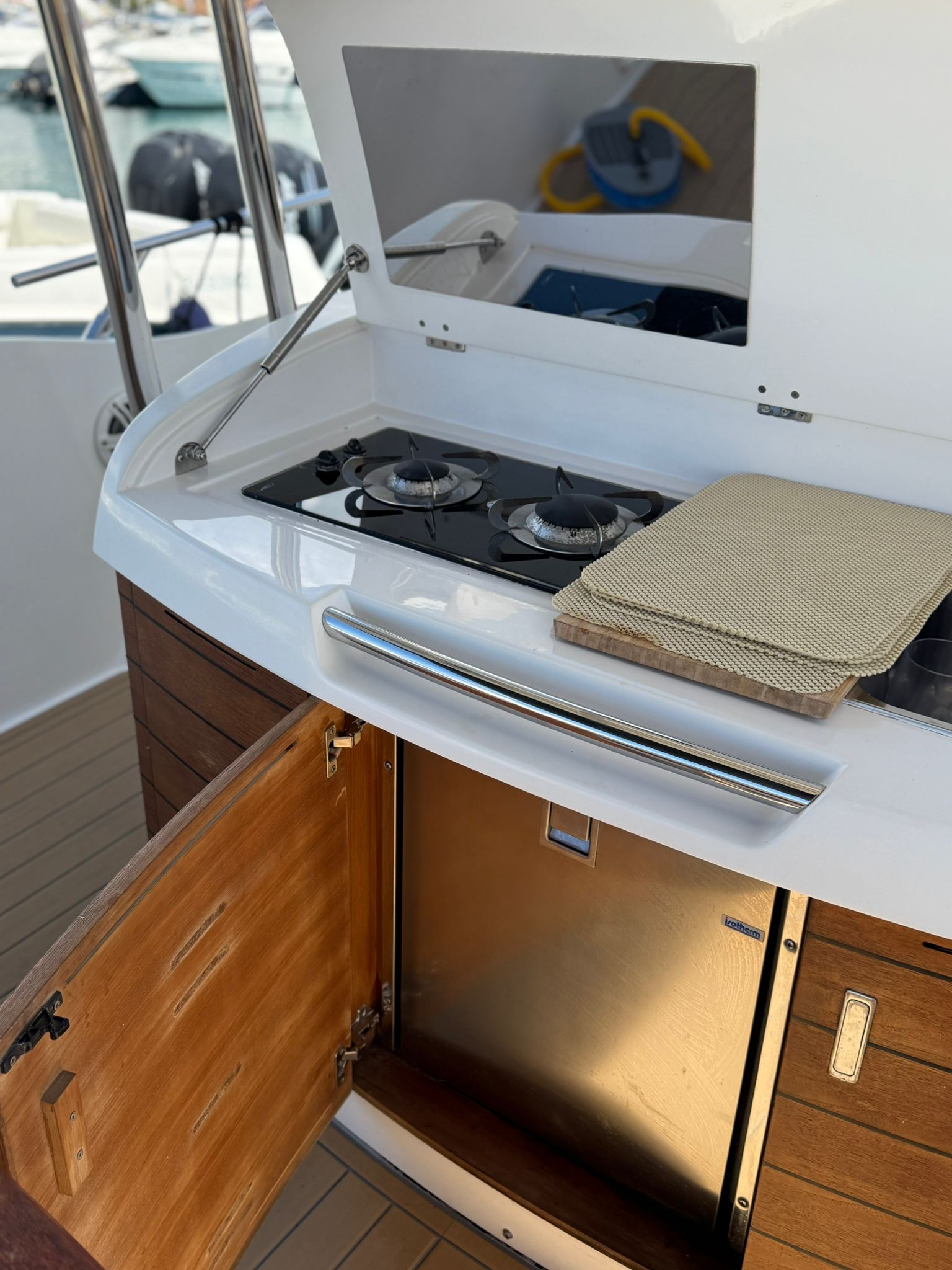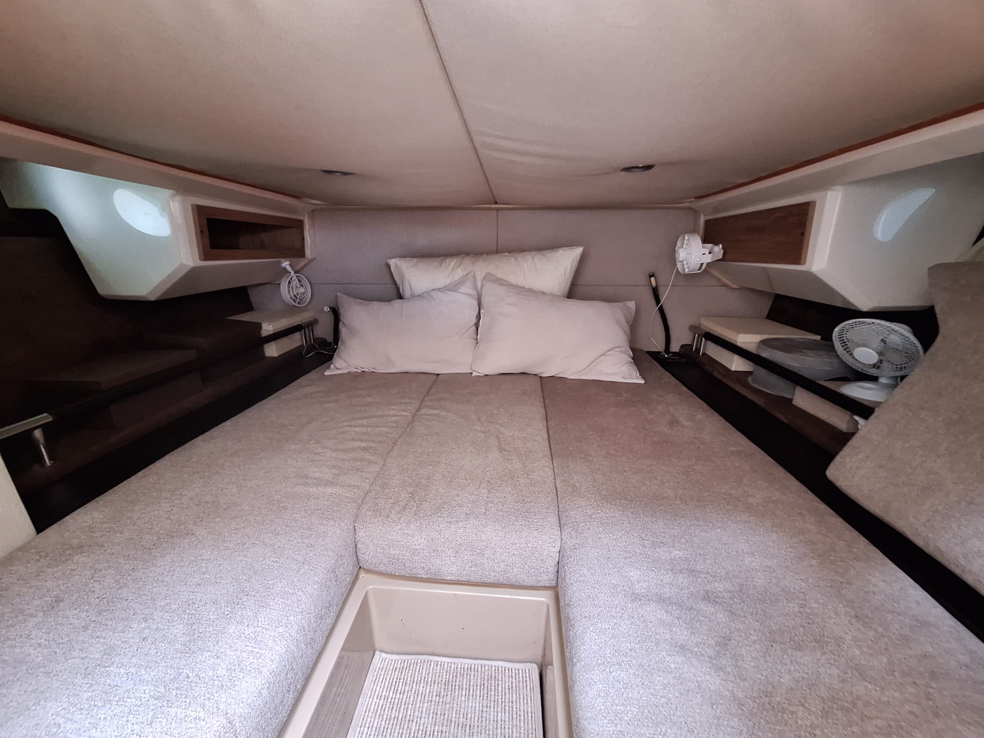 Toldo hayma proa - Molinete de ancla eléctrico - Bomba de agua salada - Joystick - 2 neveras - Ducha exterior - Cocina - Alfombras - Teka sea deck - Tapiceria exterior/interior - Electrónica Simrad 12' - Gps/Plotter/Sonda - Vhf - Piloto automático - Equipo de audio Pionner - Toldo eléctrico popa nuevo 2025 - Cargador de baterías 220 v. con toma de puerto - Placas solares - 4 baterías - Depósito de agua caliente - Antifouling.Descripción embarcación