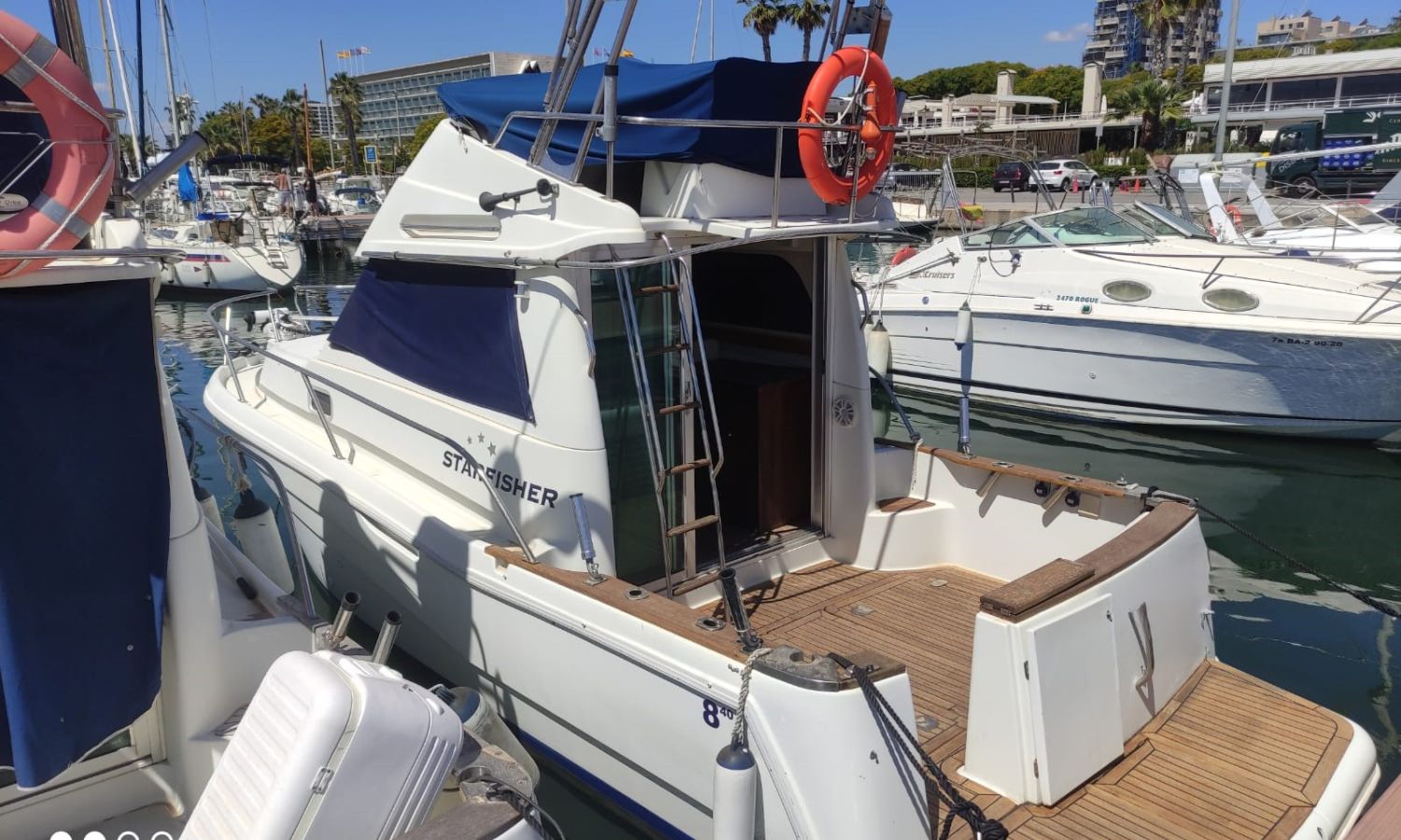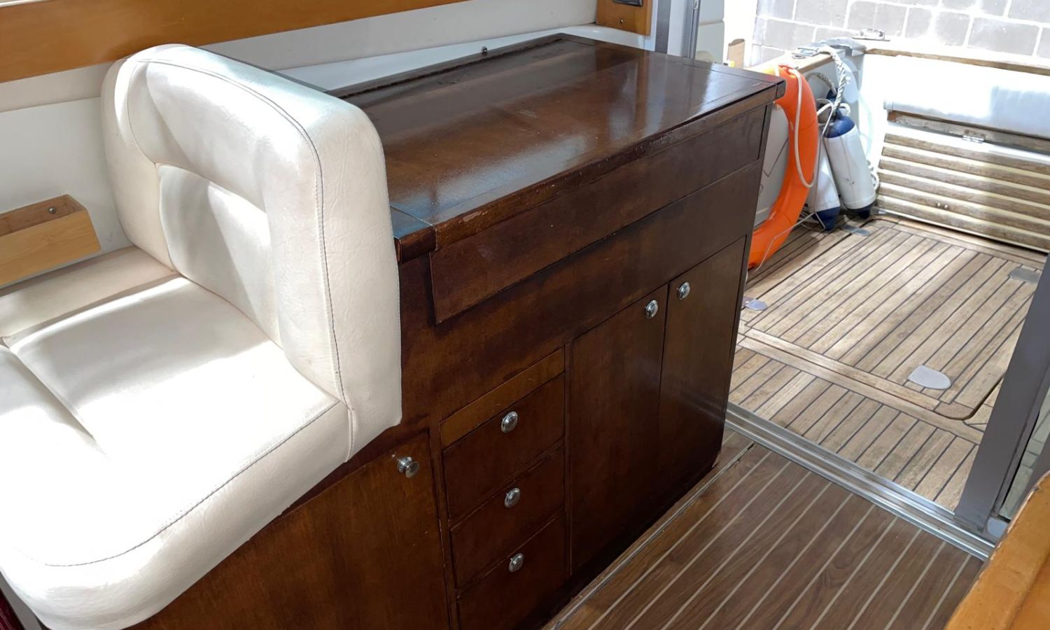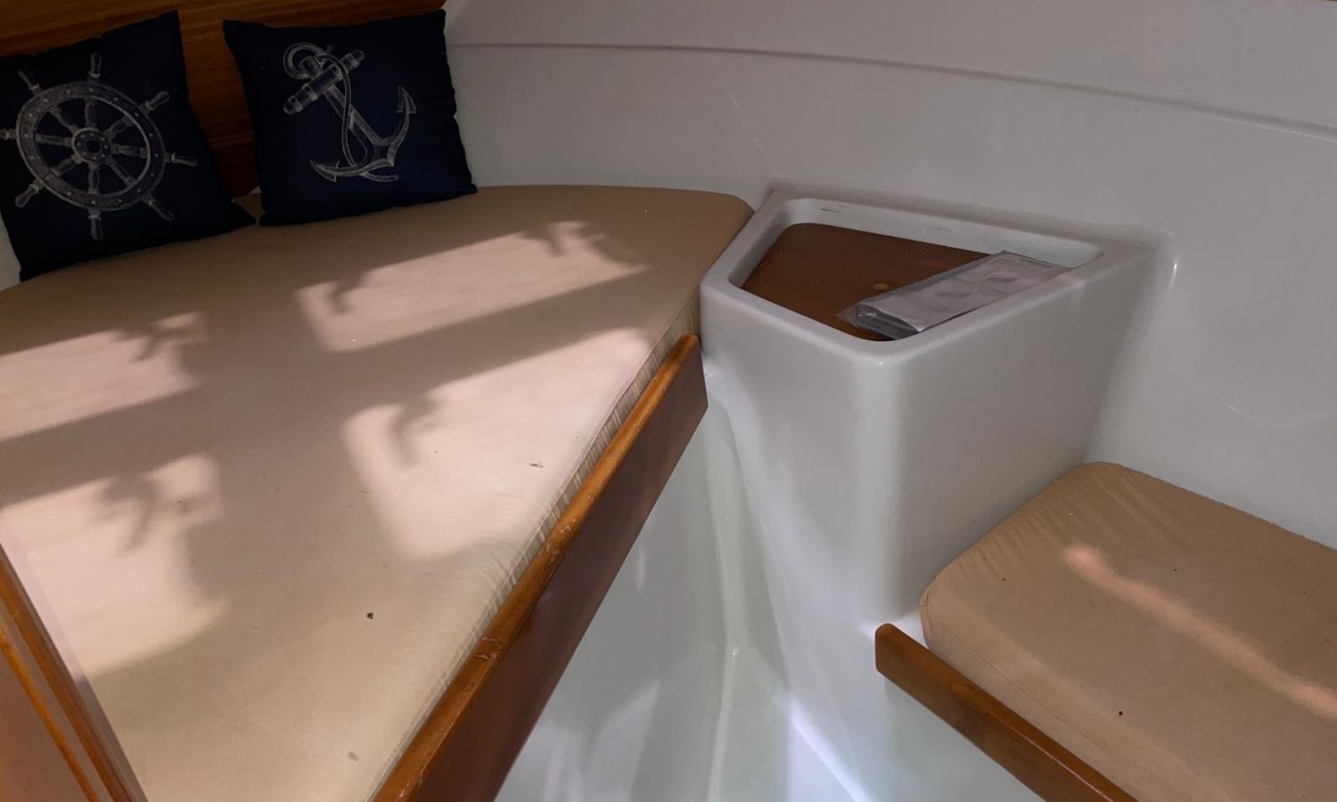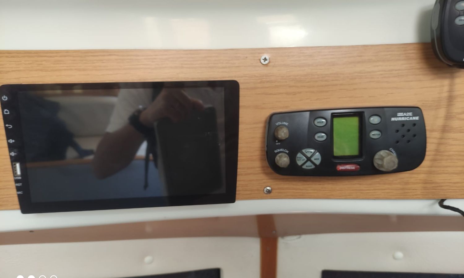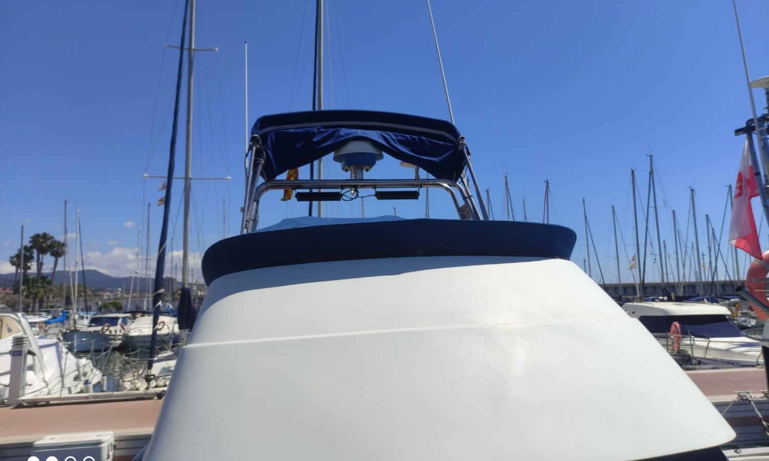 Fly - Plataforma de baño con escalera - Teka - Molinete eléctrico - Compas - Gps/Plotter/Sonda - Piloto automático - VHF - Equipo audio - Toma de puerto 220 V. - Cargador de baterias - TV en el salon - Fregadero - Nevera 12 V. - Wc marino con depósito aguas negras - Antifouling.Descripción embarcación
