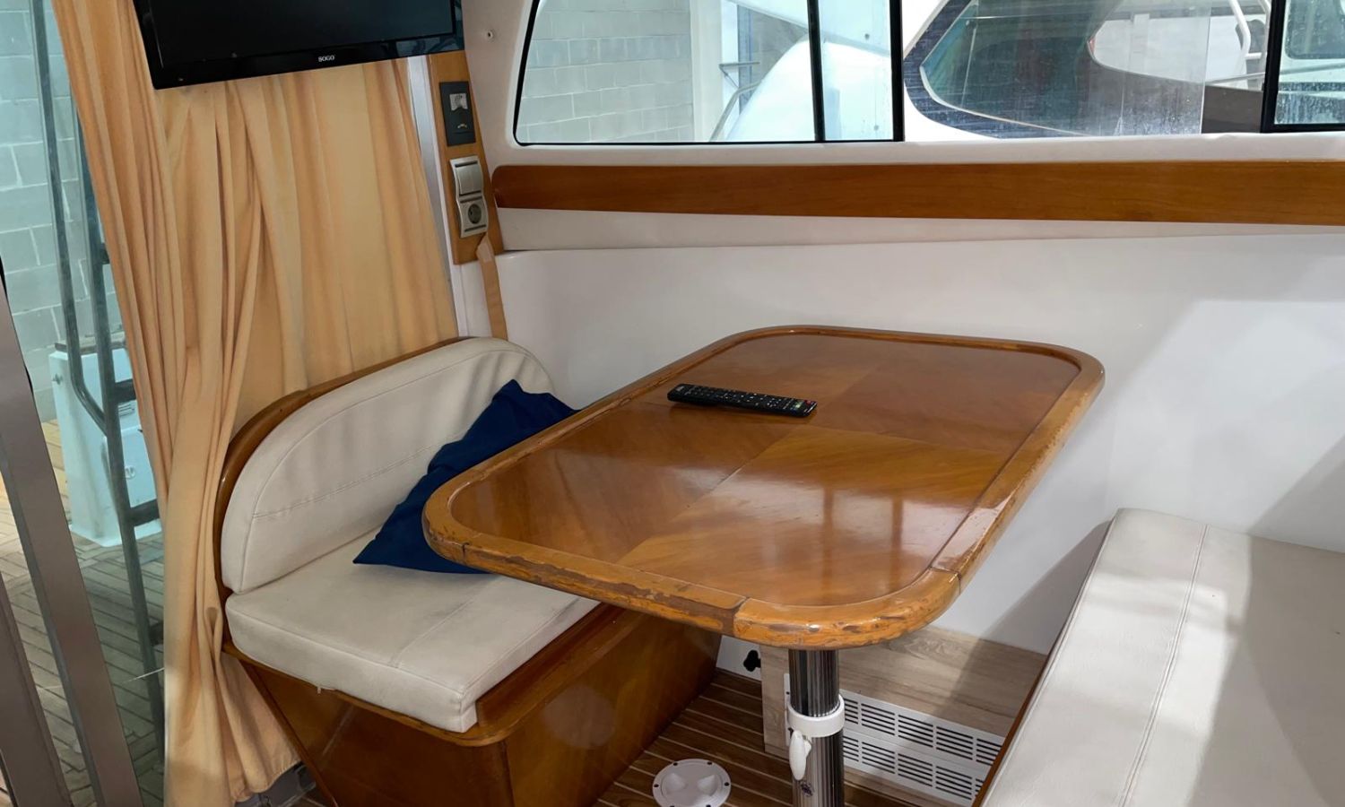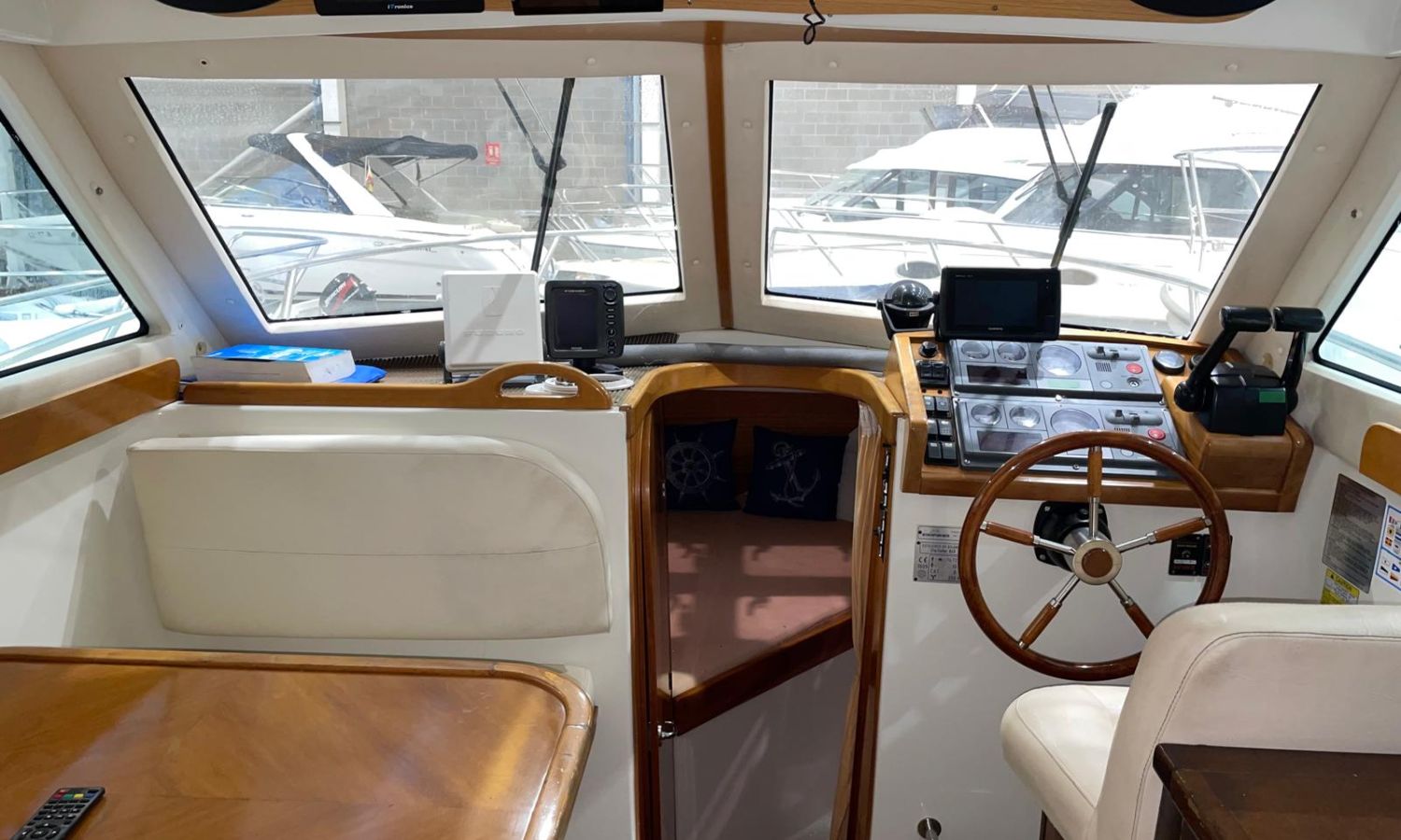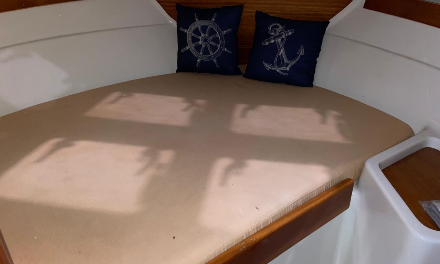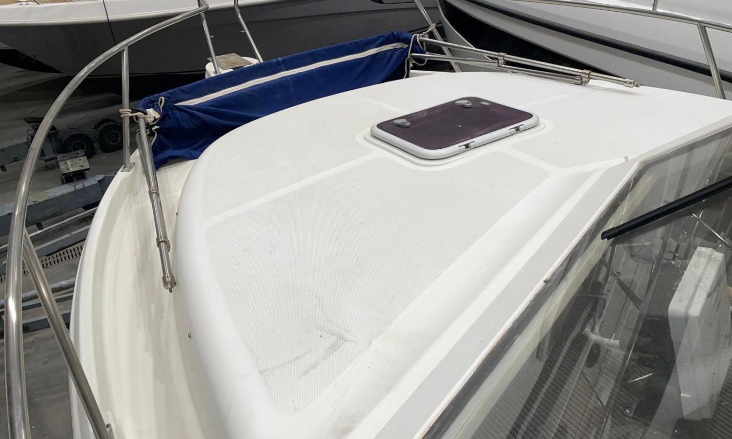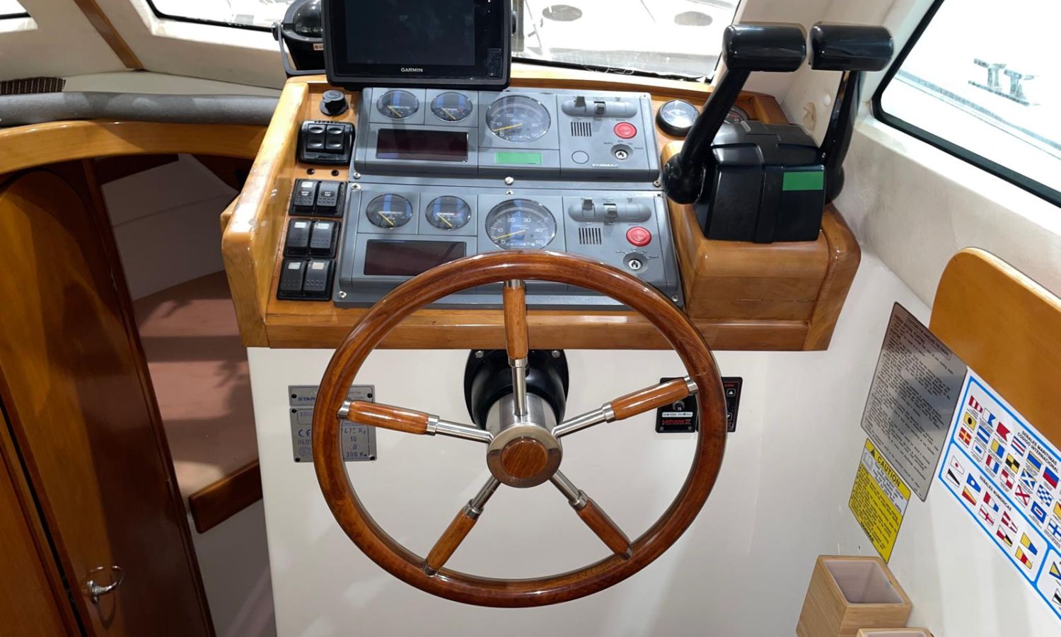 Fly - Plataforma de baño con escalera - Teka - Molinete eléctrico - Compas - Gps/Plotter/Sonda - Piloto automático - VHF - Equipo audio - Toma de puerto 220 V. - Cargador de baterias - TV en el salon - Fregadero - Nevera 12 V. - Wc marino con depósito aguas negras - Antifouling.Descripción embarcación
