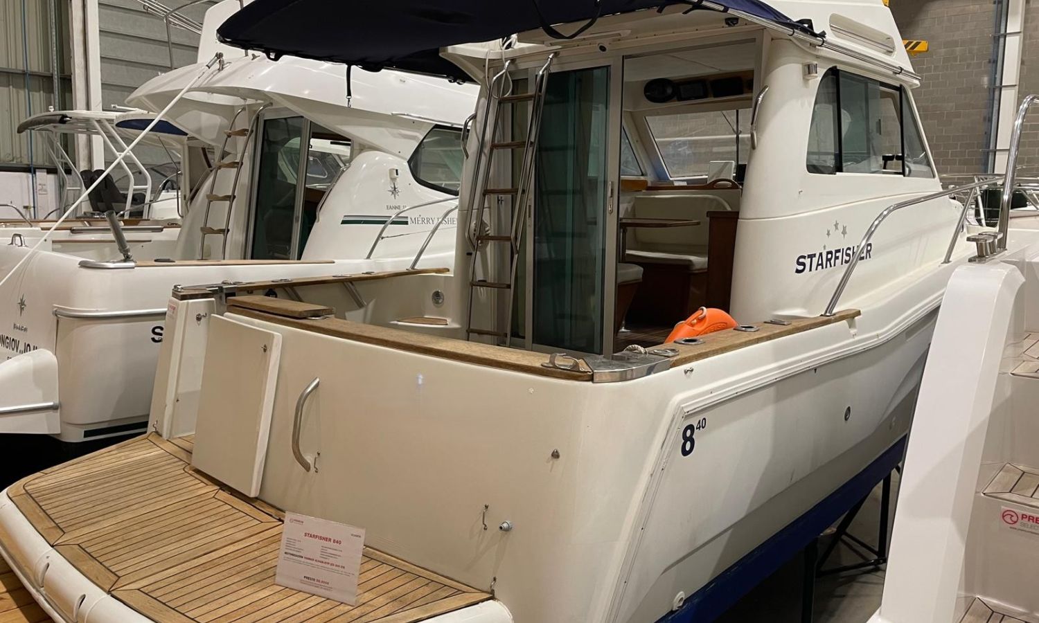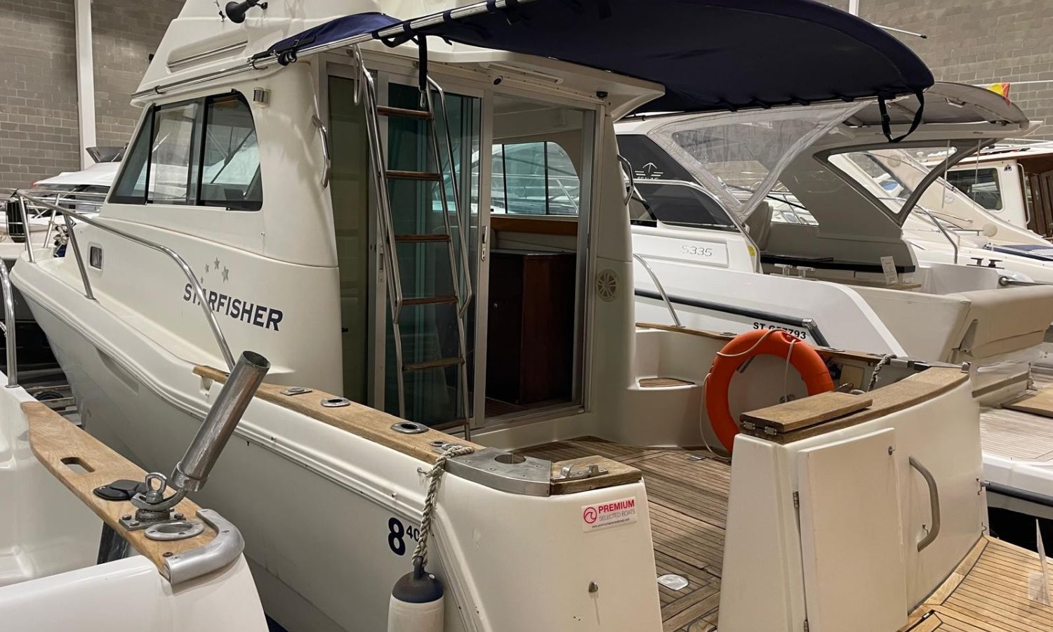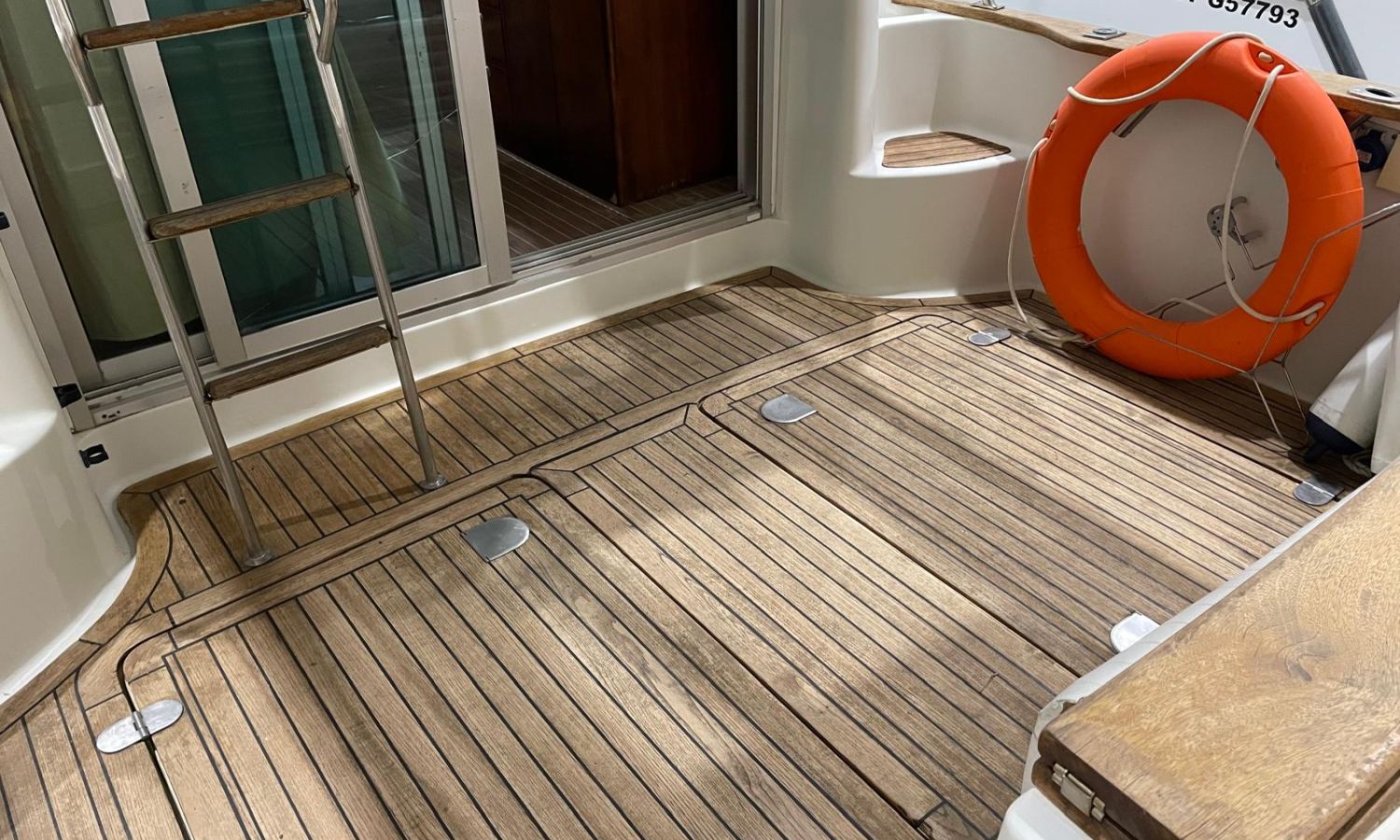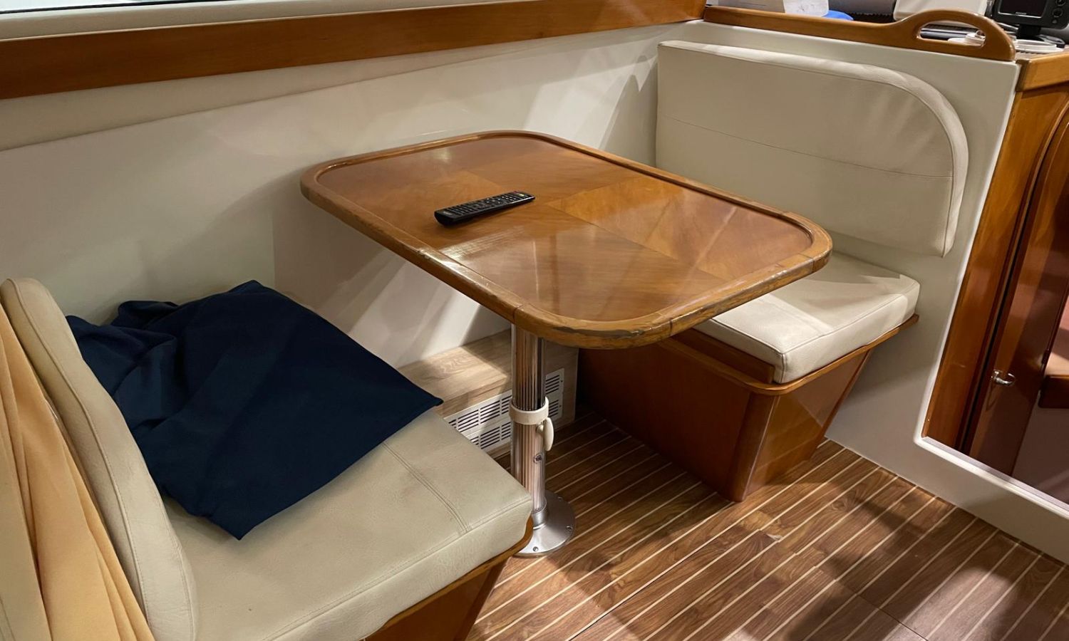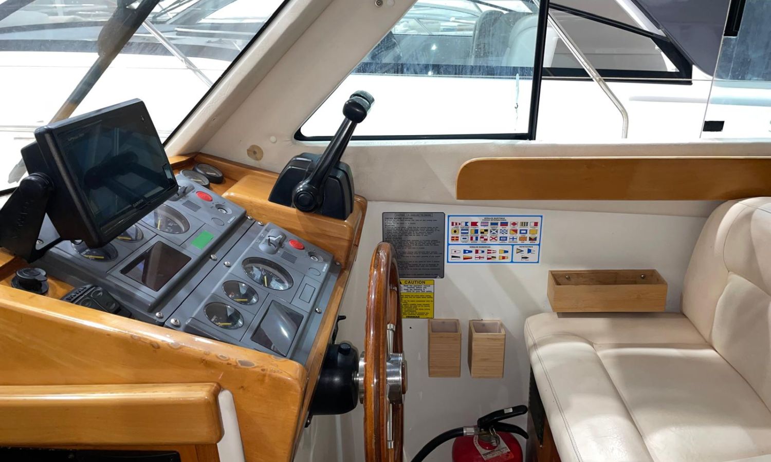 Fly - Plataforma de baño con escalera - Teka - Molinete eléctrico - Compas - Gps/Plotter/Sonda - Piloto automático - VHF - Equipo audio - Toma de puerto 220 V. - Cargador de baterias - TV en el salon - Fregadero - Nevera 12 V. - Wc marino con depósito aguas negras - Antifouling.Descripción embarcación