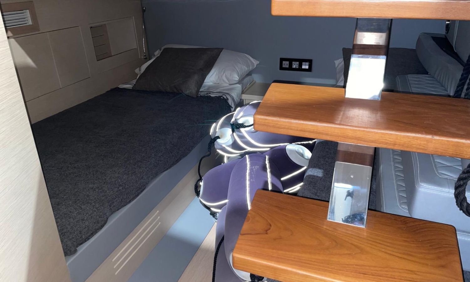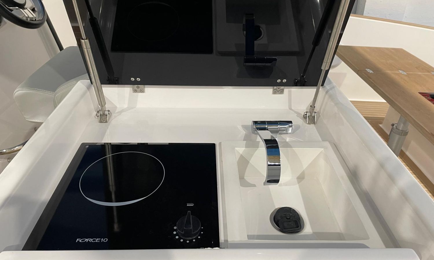 T-Top - Plataforma de baño con escalera - Ducha en popa - Cargador de baterias - Toma de puerto 220 V. - Mesa en la bañera - Solárium de popa - Nevera - Equipo audio - Gps/Plotter/Sonda - VHF - Compás - 2 Cabinas - Fregadero - Ducha - Wc eléctrico - Calentador de agua - Placa de inducción - Teca - Solárium de proa - Antifouling.Descripción embarcación