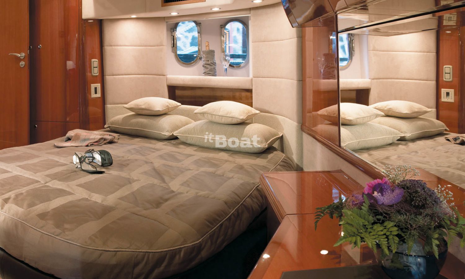 Propulsor de proa - Hélice de proa - Generador - Cargador de baterías - Toma de puerto - Techo solar eléctrico - Plataforma de baño con teca - Ducha agua caliente - Pasarela hidráulica - Parrilla en la cabina - Molinete de ancla eléctrtico - 3 Tv - Equipo audio - Aire acondicionado - Lavadora/secadora - Lavavajillas - Microondas - Refrigerador/congelador - Máquina de hielo - Sistema de agua presurizada - Gps/Plotter/Sonda - VHF - Piloto automático - Solárium de proa - Antifouling.Descripción embarcación